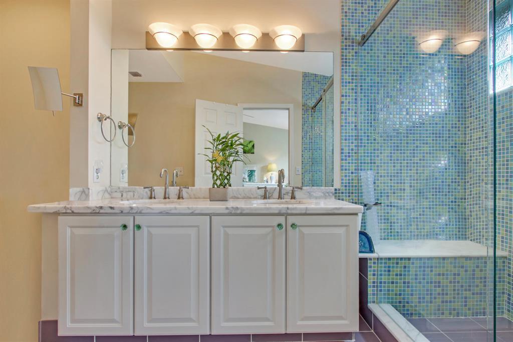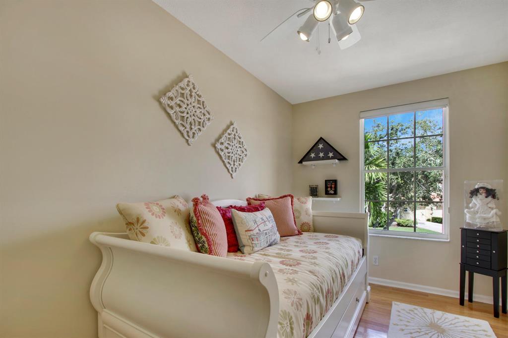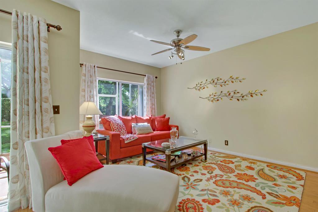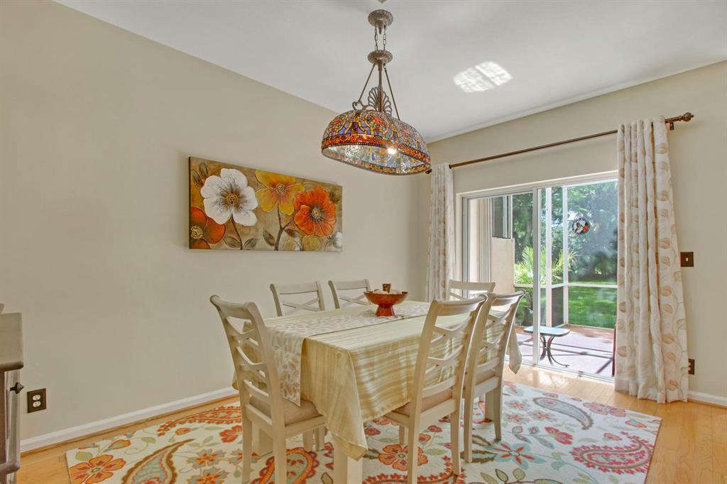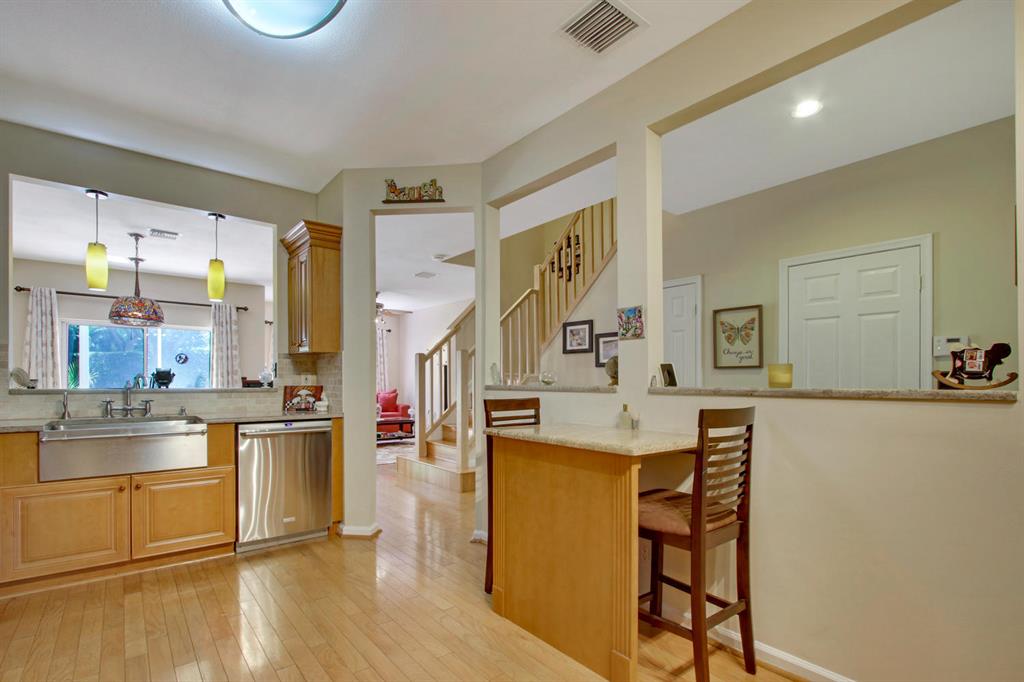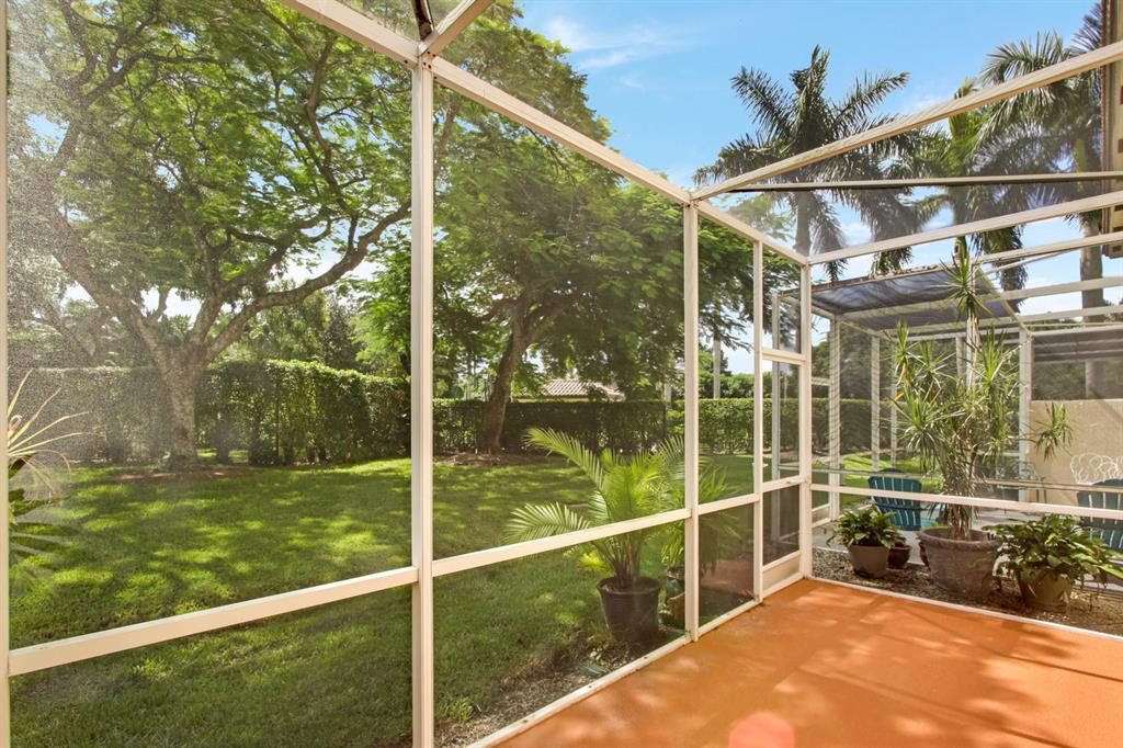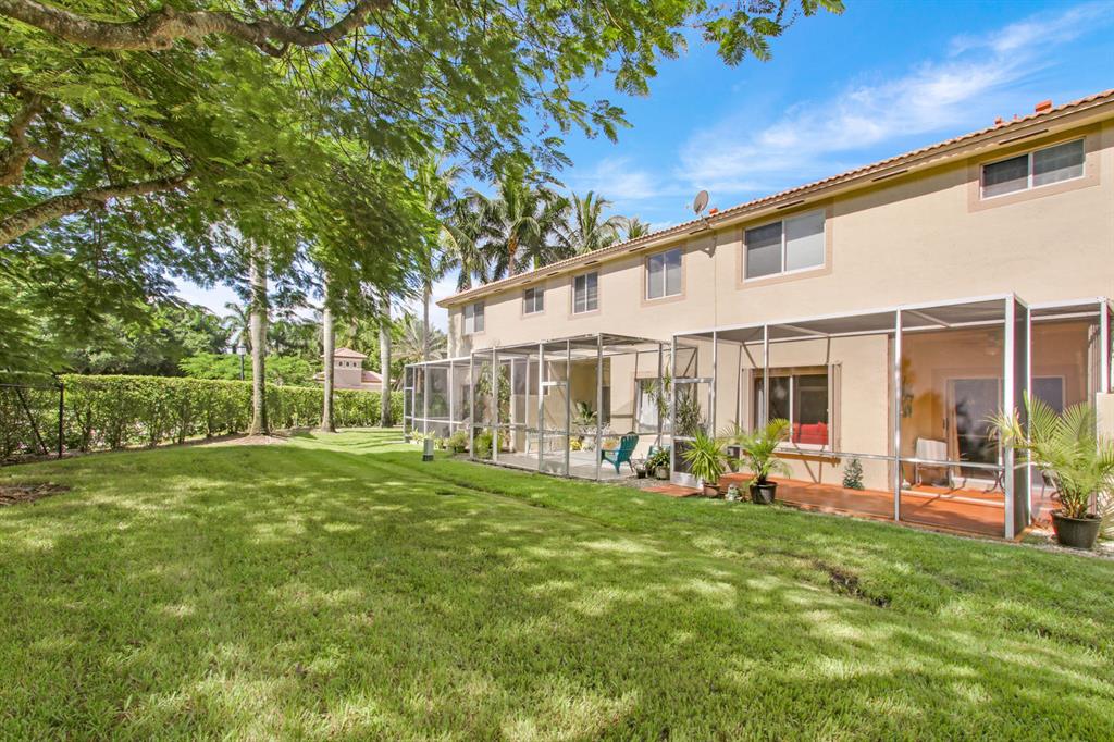 Beautifully updated townhouse located on a private tranquil setting with no back neighbors. Bright open floor plan offers stunning custom totally updated top of the line granite and stainless kitchen with built in breakfast bar. Warm honey hued real wood floors. Spacious great room opens to east facing screened patio perfect for added outdoor living space. Master bedroom offers impact glass, custom walk in closet and beautiful updated bath with dual marble vanity and spacious tile shower. Two guest bedrooms with updated bath. Just steps to the fabulous clubhouse boasting tennis, heated pool and spa, tot lot and fitness room. 1CG plus 2 car paver driveway Close to shopping, restaurants, Turnpike and I95. Full accordian shutters throughout. Great schools. Pet friendly community.