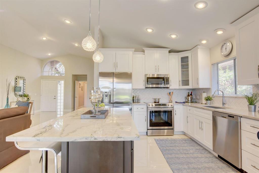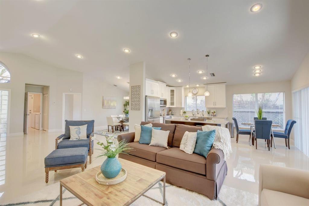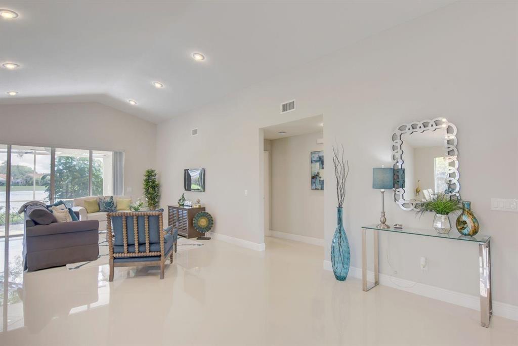 PRICE REDUCED TO SELL! Simply spectacular lakefront Boca Pointe home! Completely remodeled in 2017, This open floorplan WOW home shows like a model! Contemporary updates include quartzite counters, kitchen island, crystal pendant light fixtures, herringbone backsplash, and upgaded stainless steel appliances. All bathrooms upgraded with crystal fixtures, modern vanities, and beautiful tile work. Perfectly sized for easy care and landscaping included in HOA. This luxurious, move-in ready home is in the Esplanada/Palomar subdivision of centrally located Boca Pointe Country Club (membership NOT mandatory and flexible, affordable rates available). Roof approx 8 years new. Split bedrooms, screened patio, pet friendly. The grand entrance of Boca Pointe is sure to impress! Live your dream.
