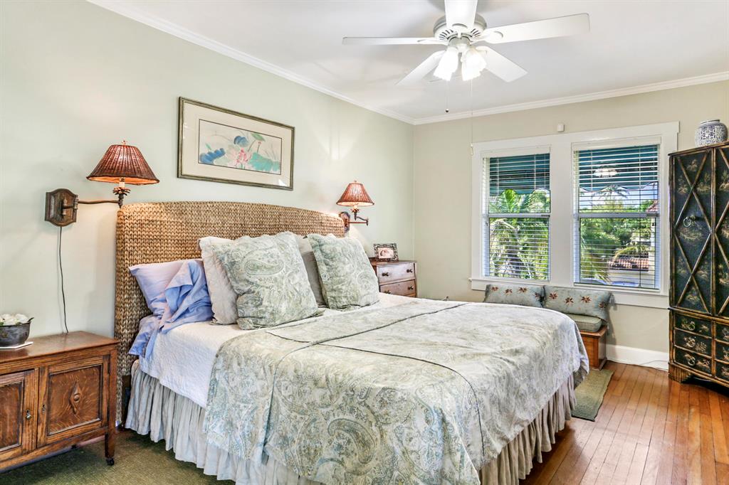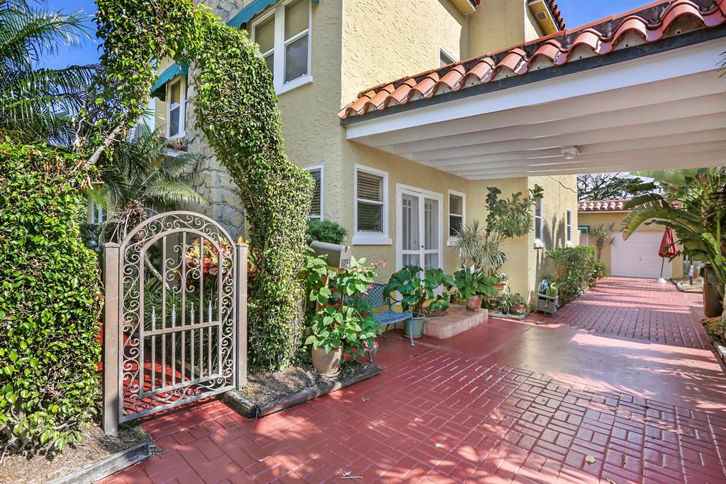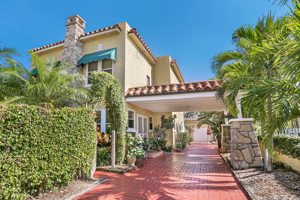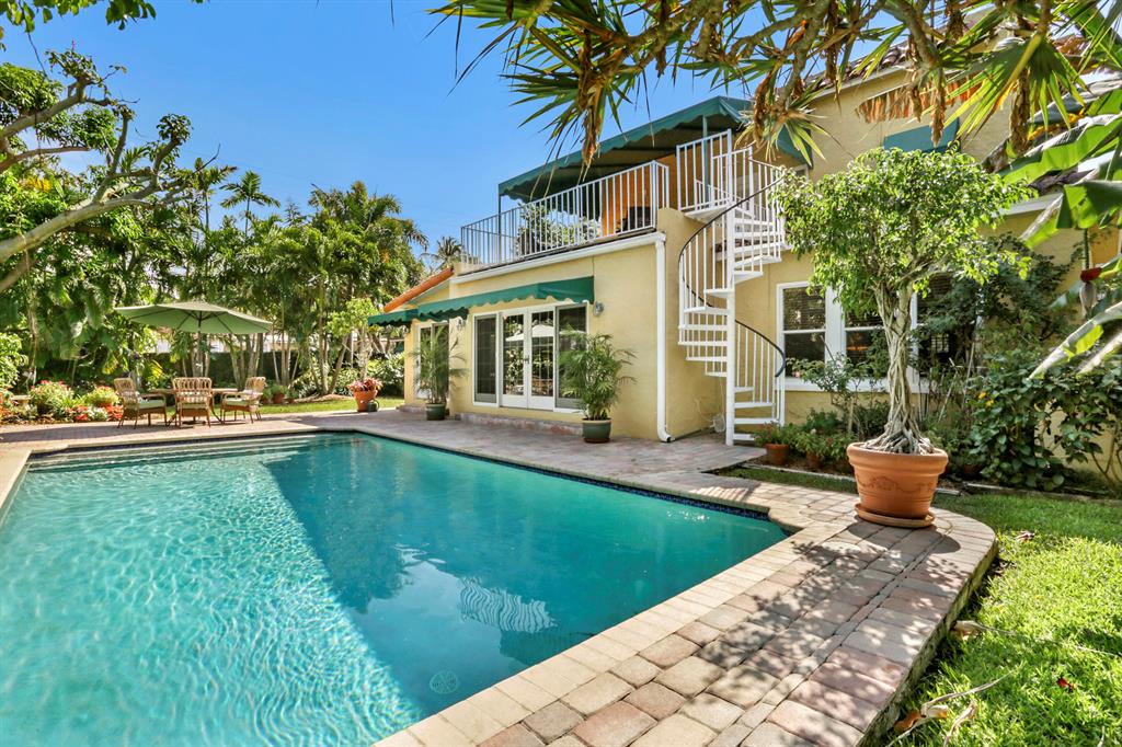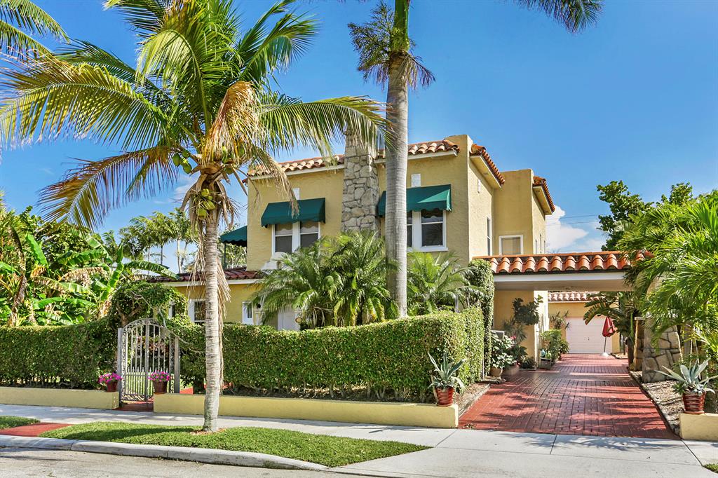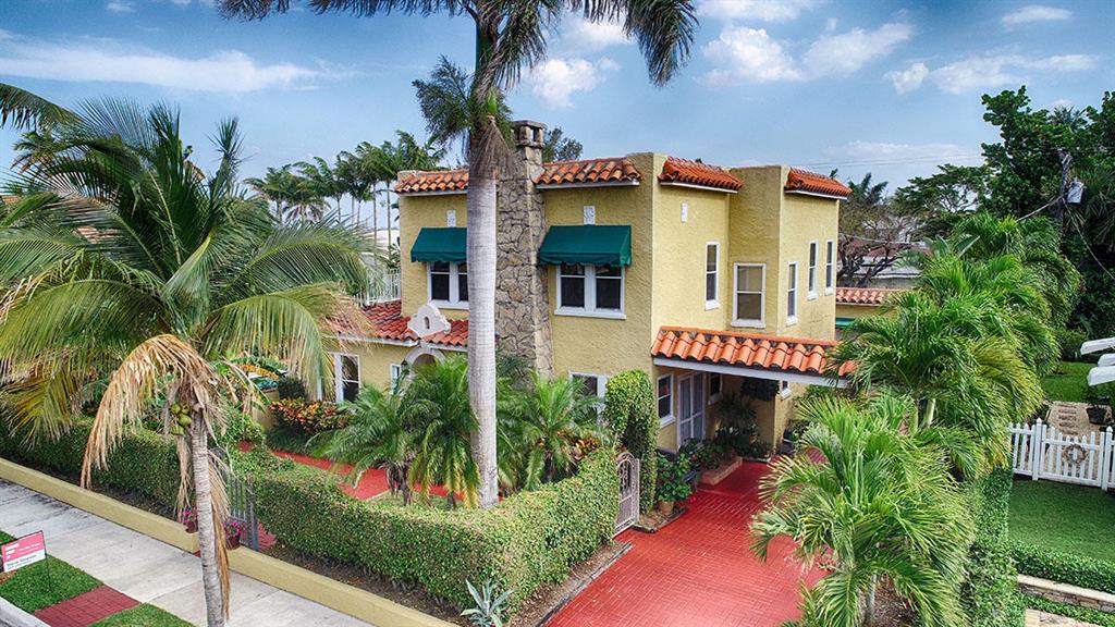 This classic El Cid Masterpiece has been lovingly maintained to pristine condition for nearly 31 years by the current owners and is now ready for you to call it home. Sitting just one property off Flagler Drive, this property is equipped with spectacular water views of the Intracoastal right outside the master suite and adjacent east facing covered balcony which overlooks the lush tropical garden with a spiral staircase leading you to the resort-style pool area. Built in 1928, timeless architecture and charm flows throughout the home with its spacious and inviting living areas, decorative fireplace, a welcoming family room and eat-in kitchen all opening to the garden and pool through multiple French doors. Boasting four bedrooms and two and a half baths plus the fully efficient