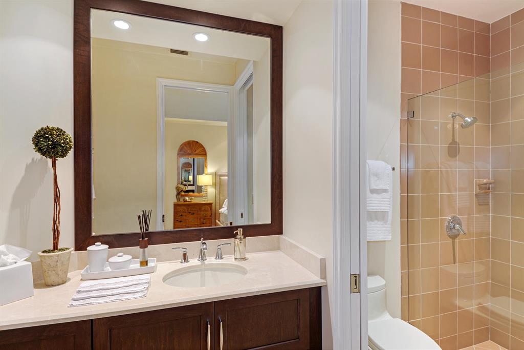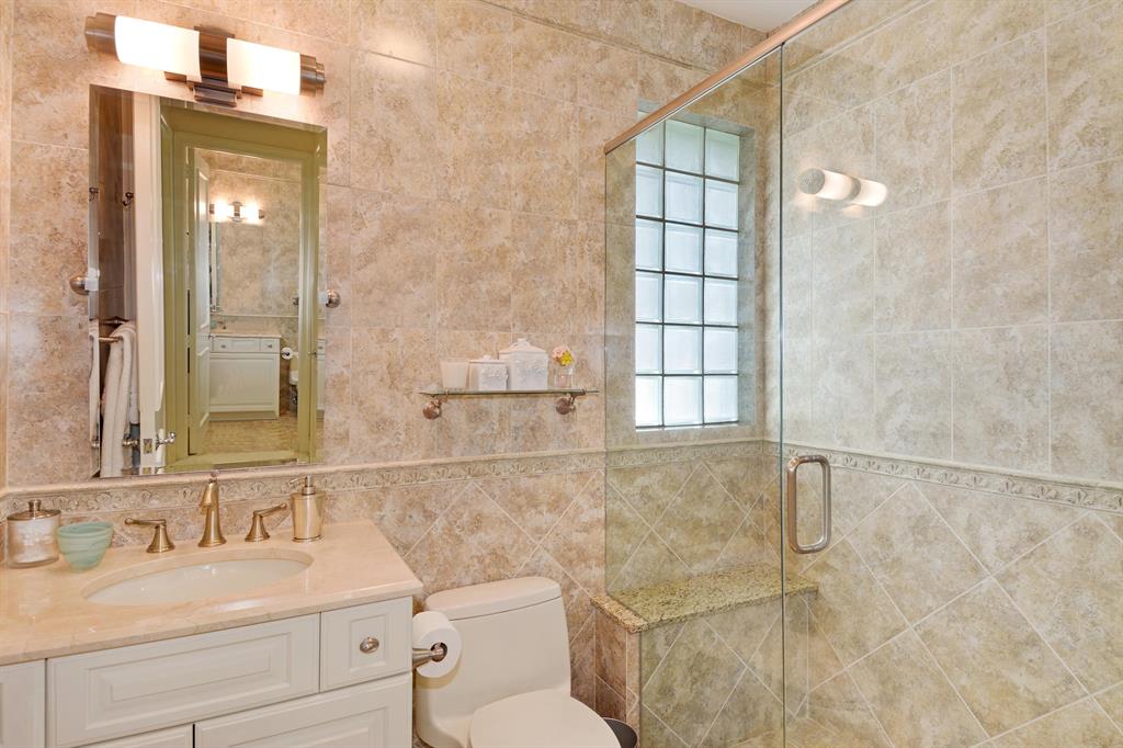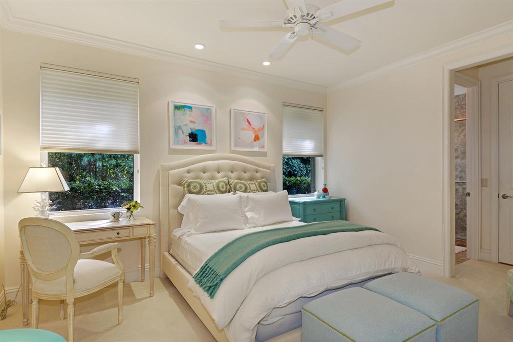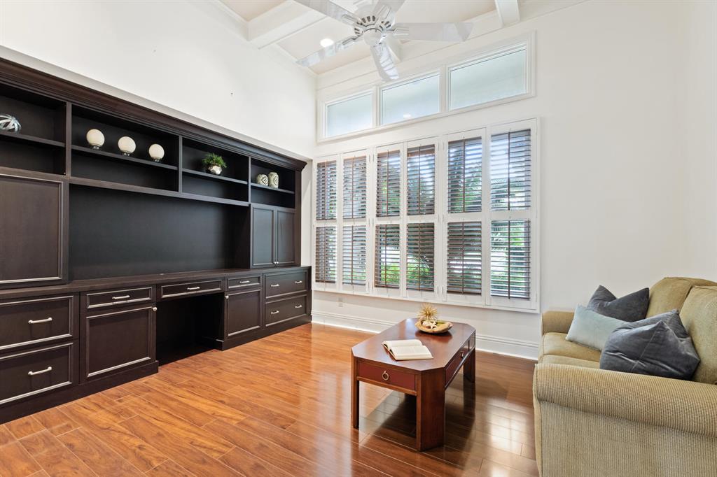 Start enjoying the South Florida life-style in the contemporary 4BR + Office, 4.5 BA custom estate home with over 4,100 AC liv area located in beautiful Breakers West in central West Palm Beach. Spacious, open floor plan with floor-to-ceiling windows/doors for lots of light. Gourmet kitchen with rich wood cabinets, white subway tile backsplash, Thermador & Bosch appliances and walk-in pantry opens to Family Room. Master Suite retreat has patio views, HIS and HER custom fitted closets, and updated Master Bath w/white marble vanities & cabinets, and a lg walk-in marble shower with body sprays. Each Guest Bedroom has private en suite baths plus there is a separate Office w/plantation shutters & built-in bookcases. Enjoy outdoor living w/over 1,100 SF of covered patio and