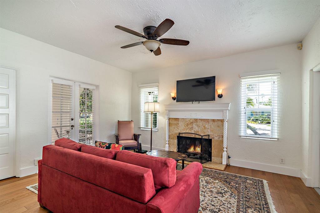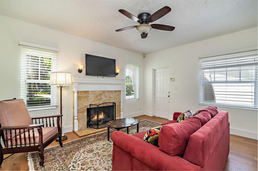 The heart of Flamingo Park is in this quintessential historic 2BR/2BTH residence featuring all the Mediterranean charm the area offers! This striking 1925 Hansel Hall home elevated with covered front portico & access to the most delightful & polished spaces. Newer oak wide plank wood floors, gas fireplace & French doors leading to the covered porch, tiled & situated for privacy & comfort. This fantastic residence was restored & remodeled to its current high value finishes & easy living flow. The kitchen has Quartz countertops, subway tile backsplash, stainless farm sink, newer GE Profile stainless appliance including a gas range, in addition a tankless gas water heater & Whirlpool stacked washer & dryer. The efficient space lives large! Plus garage, room for a pool & sparkling neighborhood