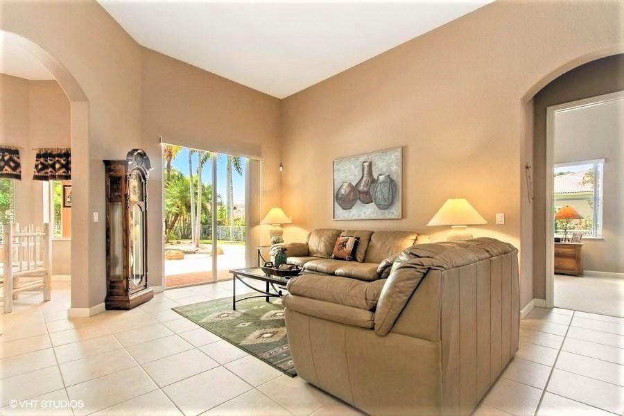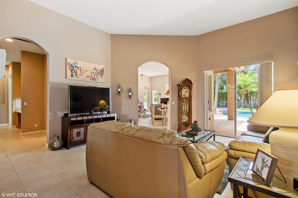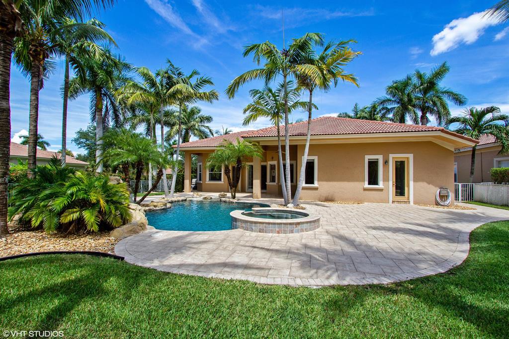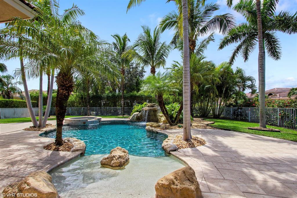 Spectacular single family pool home nestled on an expansive deep corner lot. Sun filled and open, from the moment you enter this home you are greeted by views of the fabulous outdoors, beautiful green space with lush landscaping, a waterfall beach entry heated salt water pool and spa, a true oasis. The ultimate home for indoor/outdoor living. A split 4 zone floorplan features a formal dining room, 4 spacious bedrooms, 3 full bathrooms, a laundry room, open kitchen, and much more. The private master suite is nestled on the opposite wing of the home away from the other bedrooms with private access to the pool and features two walk in closets, a beautiful master bathroom with deep soaking tub, separate shower, vanities and much more.