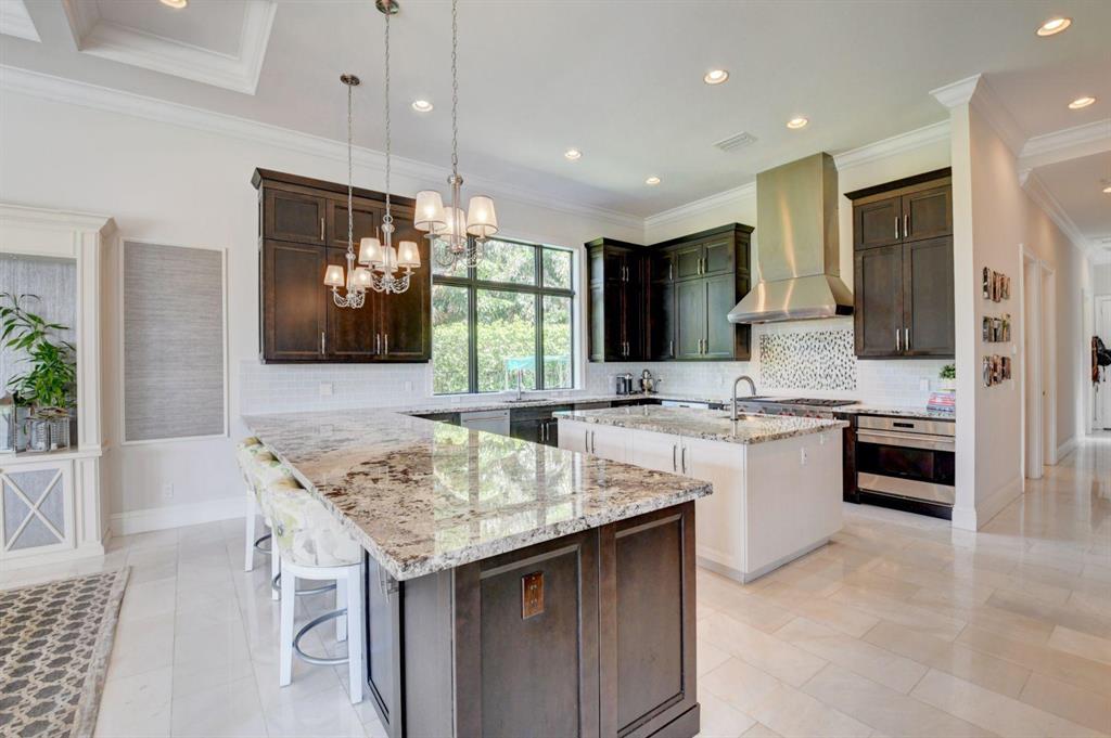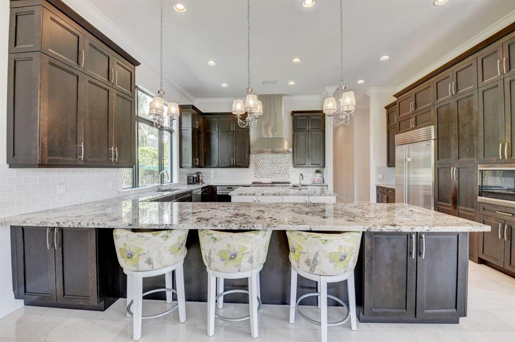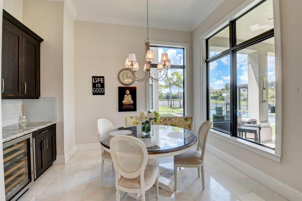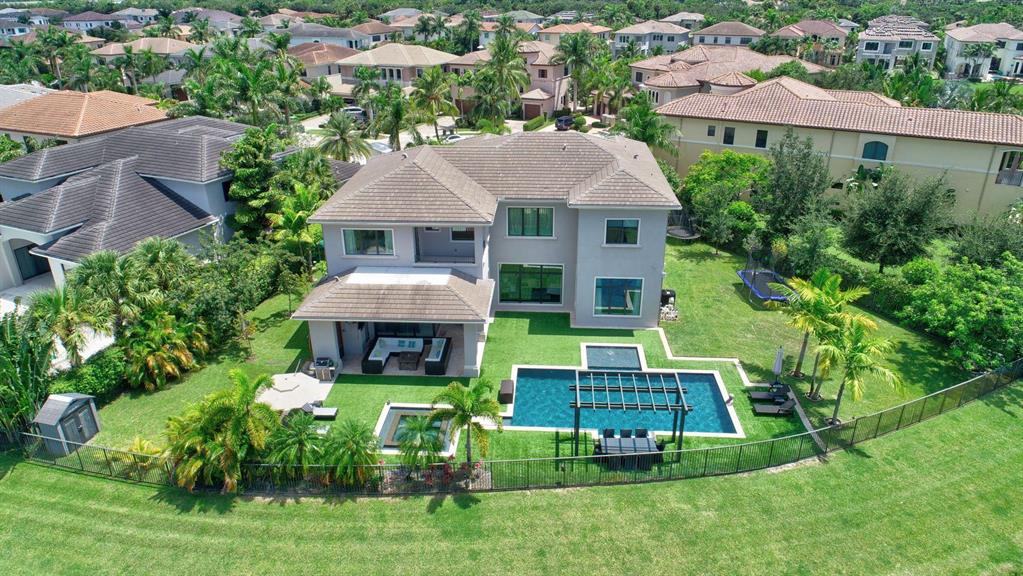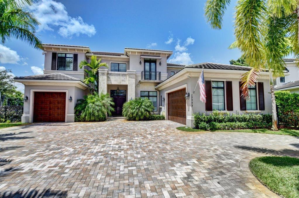 17777 Vecino is your next address . Exquisitely build in 2015 with no expense spared, by one of the most talented designer in Florida ,this home sits on an oversize water lot in the Oaks, paradise brings a fresh light, open modern sense to the classic elegance. Capturing a glorious view of the canal, the soaring great room leads to the alluring resort-style outdoor oasis.Water views from all the rooms . Five bedrooms , LOFT and Movie Theatre room , 6 full & 2 half bath with the most stunning white contemporary appointments throughout . All the details of this home , the cloth wallpapers , lighting and custom ceilings , designer stairs spectacular walking closets an more, make this home special.