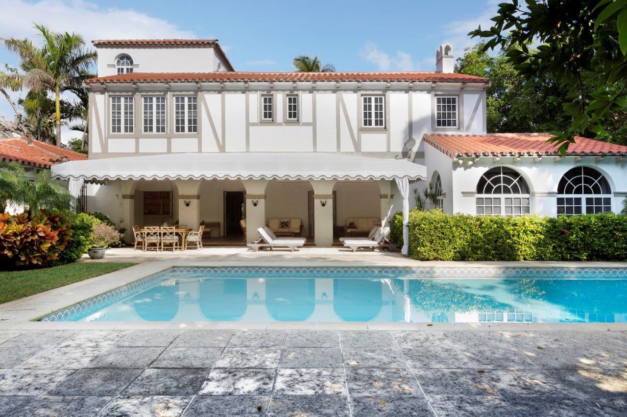 Landmarked Maurice Fatio in the Estate Section of Palm Beach. Built in 1930 in the Mediterranean Revival style and owned by the architect when built. The half-timbered facade is an unusual feature for the style, yet it is a good example of the work of the master architect. The 3rd floor tower is designed as a mirador with casement windows giving views of the Atlantic Ocean and the Intracoastal. The home sits high on a nicely elevated lot of nearly 1/2 acre. Many original details, including the flooring, remain to be restored or renovated. The large, covered loggia has pecky cypress ceiling, seating & dining areas, a wet bar, cabana powder room, all surrounding the large pool. A 2BR/1BA guest apartment over the garage w/efficiency kitchen.