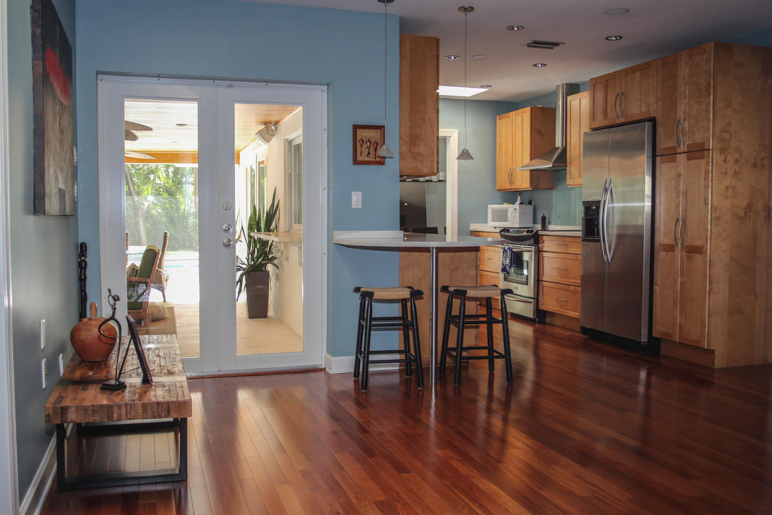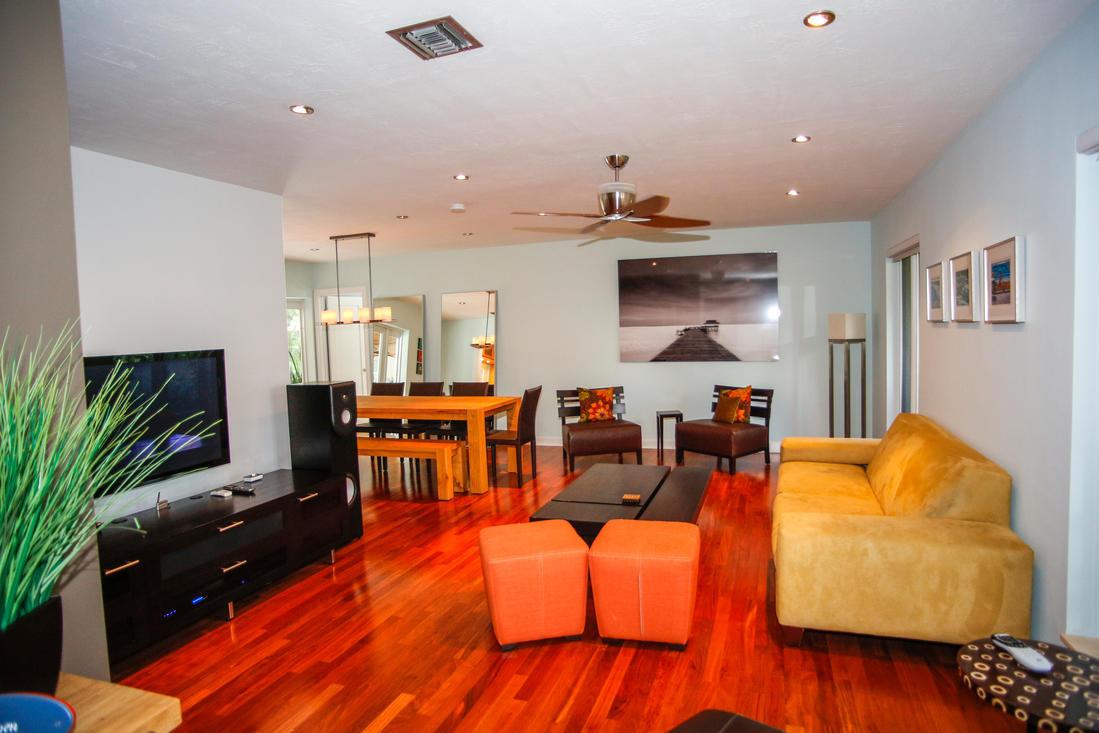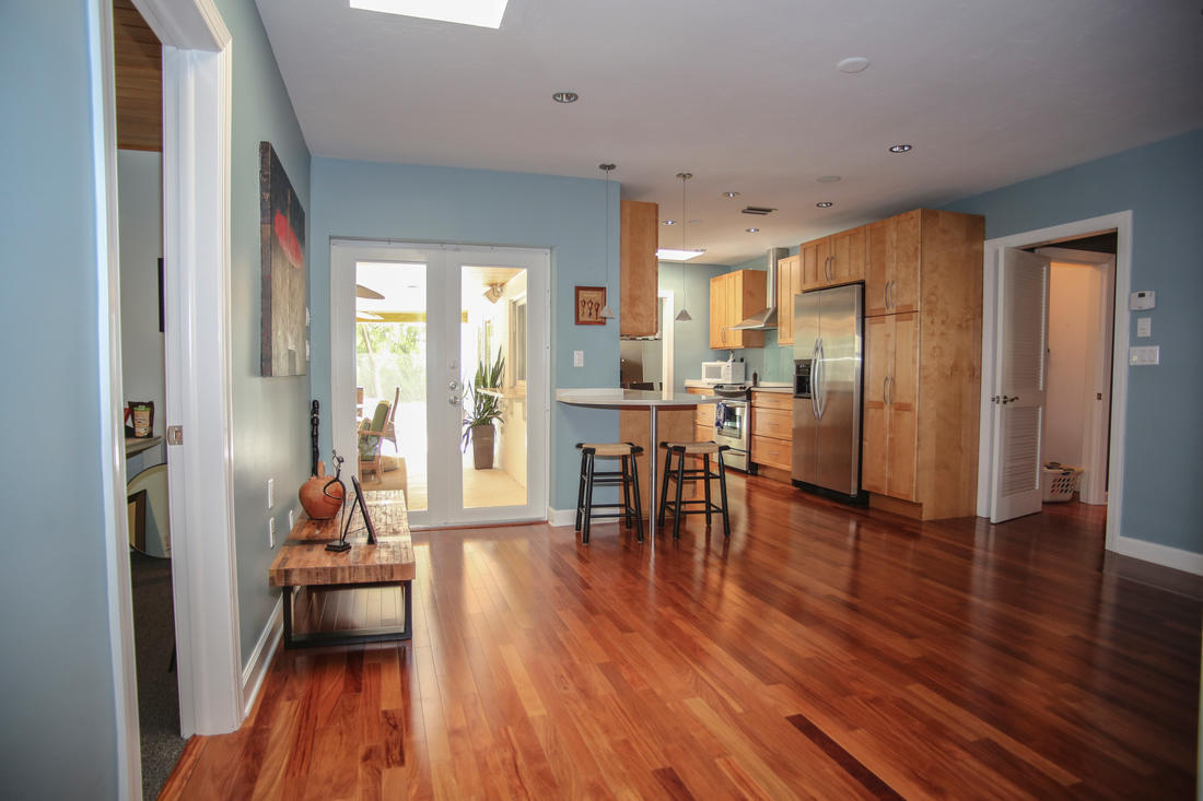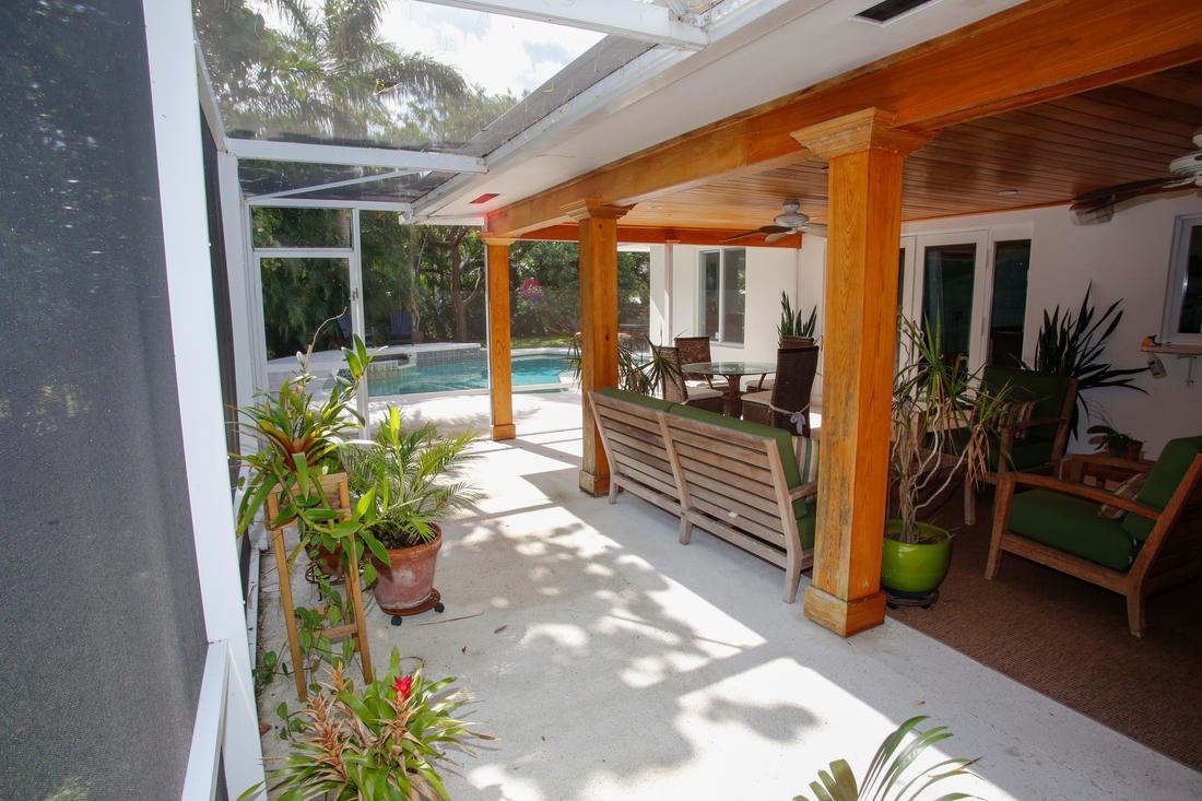 Huge price reduction! East Boca 3/2 home plus bonus room/office, 2-car garage. Amazing property with quiet and very private lot(.33 acre) lushly landscaped with most areas fenced. Ideal quiet, low traffic street with no drive-through traffic. Two walk-able parks in neighborhood. Just minutes to the beach, I-95, Mizner Park, Whole Foods and Fresh Market. Ride your bike to the beach in 10 minutes. Fully renovated w/ Mahogany floors, upgraded kitchen and baths. Hurricane impact windows throughout including patio doors and garage. Newer roof with skylights, newer AC unit, landscape lighting and saltwater pool system. Chicago brick paver driveway & walkways. New recessed lighting with custom dimmers throughout house. Monitored alarm w/motion detect. Ceiling surround and Outdoor Lanai speakers