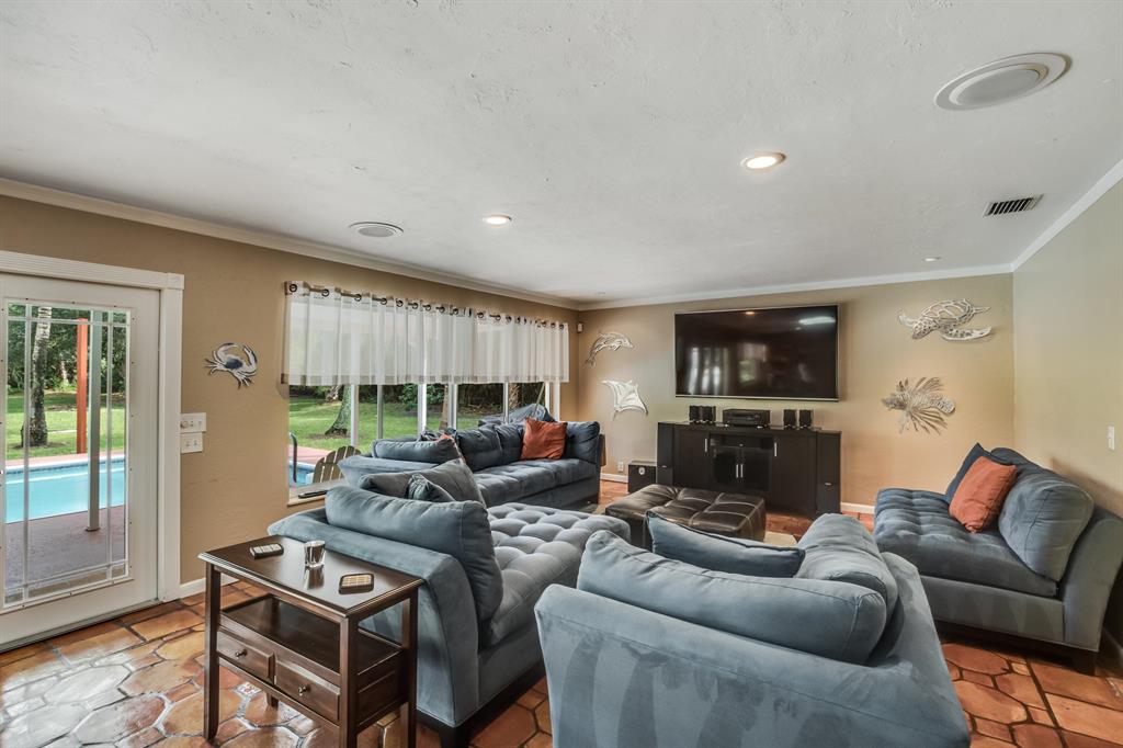 Extraordinary home nestled on 1.39 acres just minutes away from city life and beaches. This beautifully renovated 4 bedroom, 3 bath pool home has lots of character. Welcoming kitchen with island, gas stove, wall oven, SS appliances is a chef's dream! Expansive great room is perfect for entertaining with built-in bar and fireplace. Master suite boasts wood laminate flooring, sitting area, his and her walk-in closets with built-ins, elegant bath with dual sinks and spa shower. Exterior features include covered patio, built-in bar, firepit, shed, carport, RV/boat parking, fenced yard and more. Home warranty included. This gem is a must see!