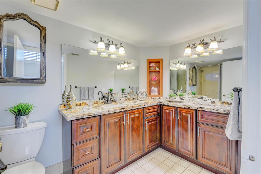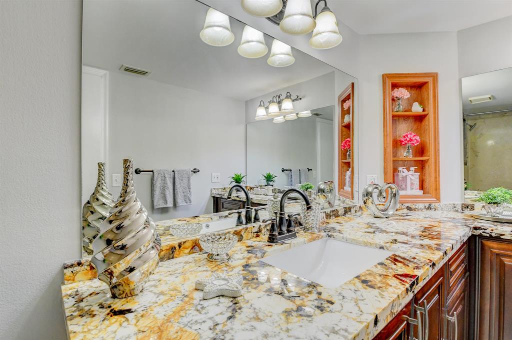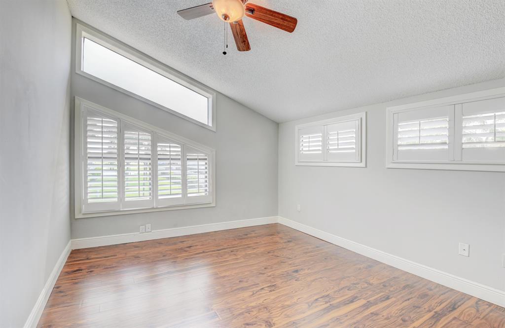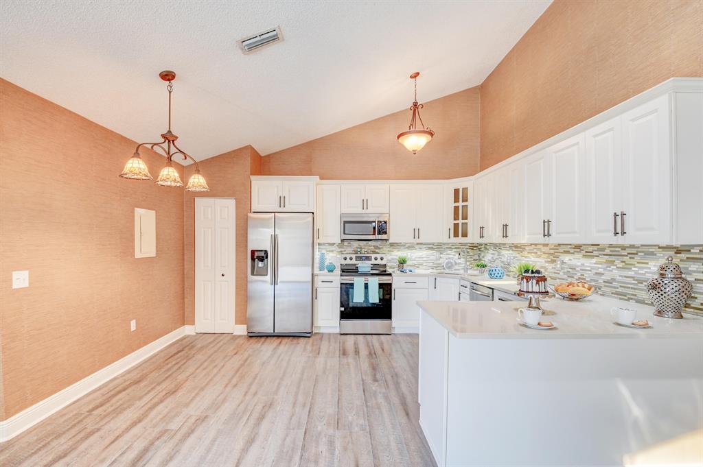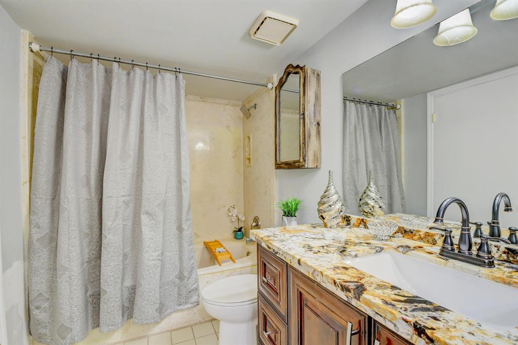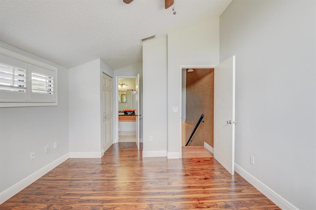 Fabulous & updated 3 Bedrooms, 4 baths (not a typo-really has 4 updated & really nice bathrooms! 3 full baths/1 half bath), PLUS 1 car garage townhouse with huge courtyard entrance. Home featuring brand new(never used) designer eat in kitchen with Quartz counter tops, glass tile backsplash, stainless appliances, solid wood cabinets & a pantry. Vaulted ceilings, laminate flooring, new lighting & plantation shutters are just some of the special touches. Huge private, fenced in courtyard. Fantastic Triple split open floor plan where all bedrooms have ''en-suites'' with full baths (Every bedroom has its own bathroom), plus powder room for guests. There is 3 master bedrooms, 2 downstairs and one upstairs. This property is in meticulous ''move in ready'' condition. Just bring your tooth brush.