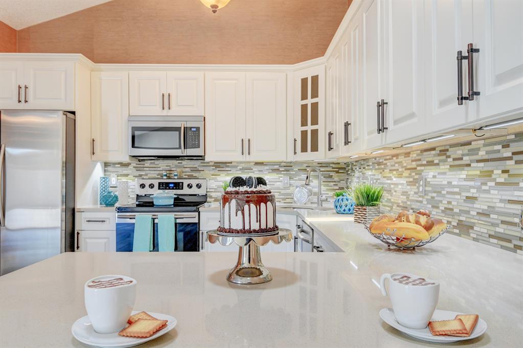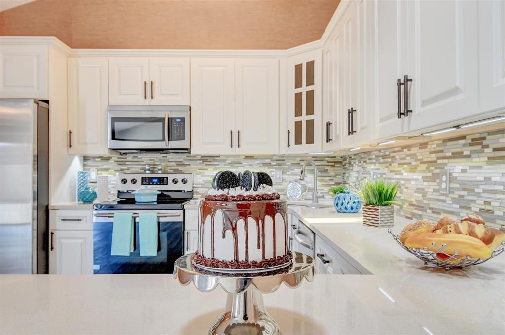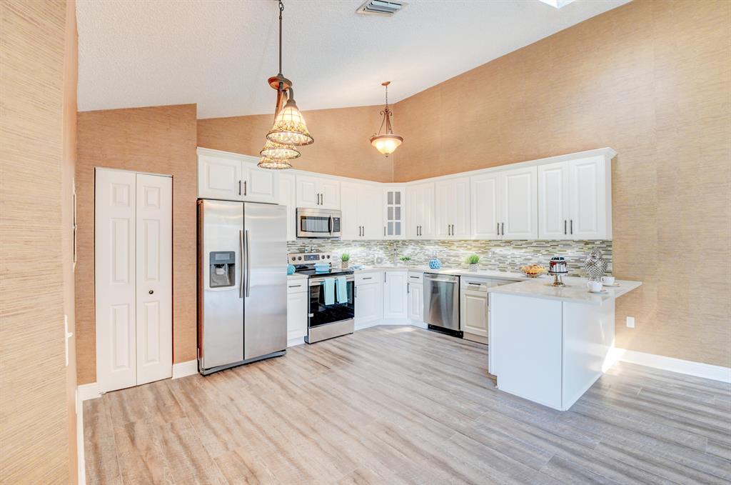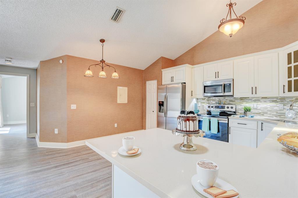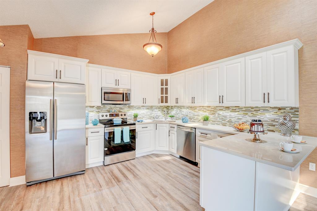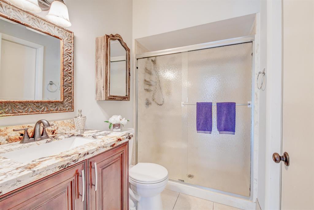 Fabulous & updated 3 Bedrooms, 4 baths (not a typo-really has 4 updated & really nice bathrooms! 3 full baths/1 half bath), PLUS 1 car garage townhouse with huge courtyard entrance. Home featuring brand new(never used) designer eat in kitchen with Quartz counter tops, glass tile backsplash, stainless appliances, solid wood cabinets & a pantry. Vaulted ceilings, laminate flooring, new lighting & plantation shutters are just some of the special touches. Huge private, fenced in courtyard. Fantastic Triple split open floor plan where all bedrooms have ''en-suites'' with full baths (Every bedroom has its own bathroom), plus powder room for guests. There is 3 master bedrooms, 2 downstairs and one upstairs. This property is in meticulous ''move in ready'' condition. Just bring your tooth brush.
