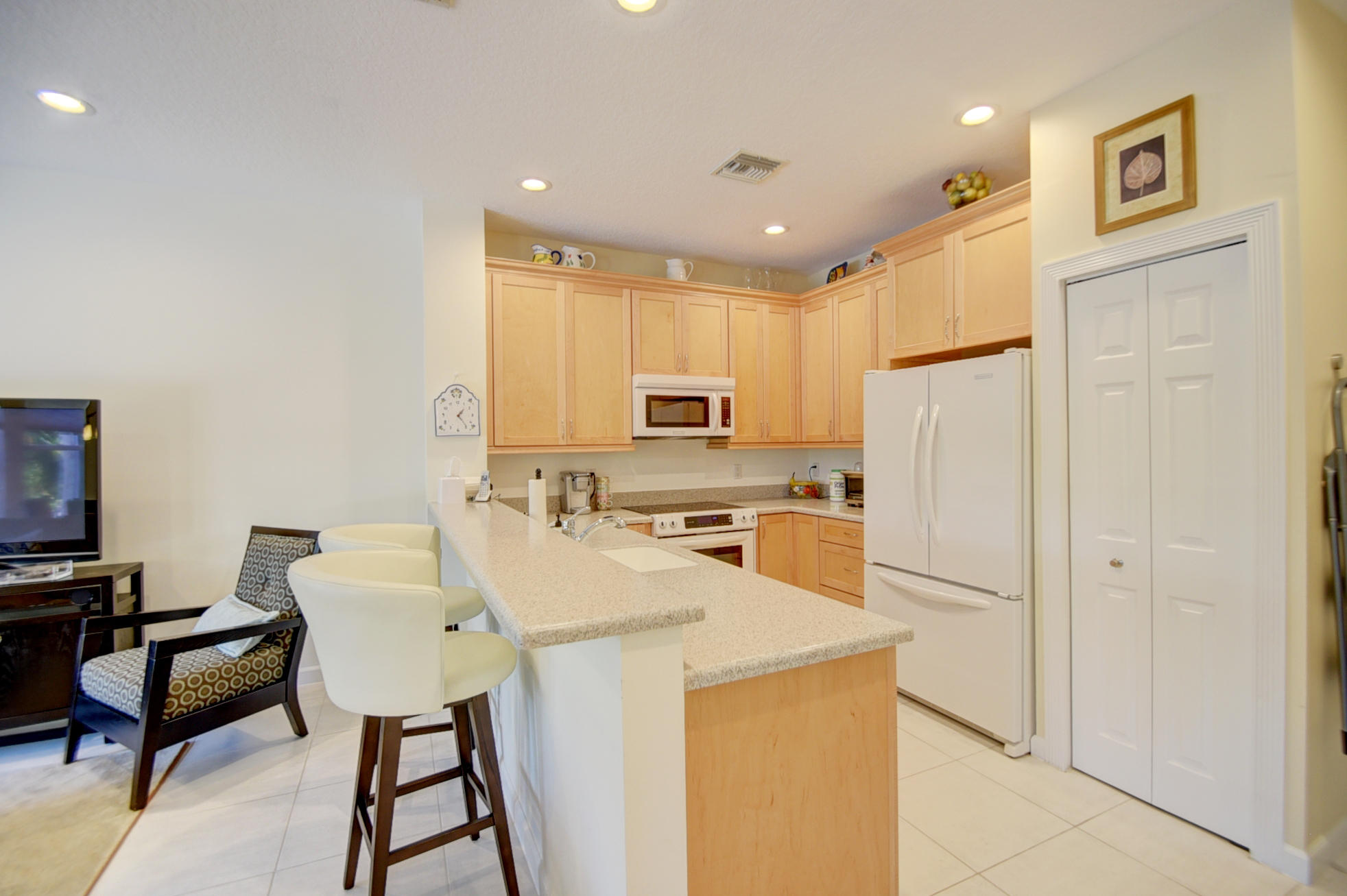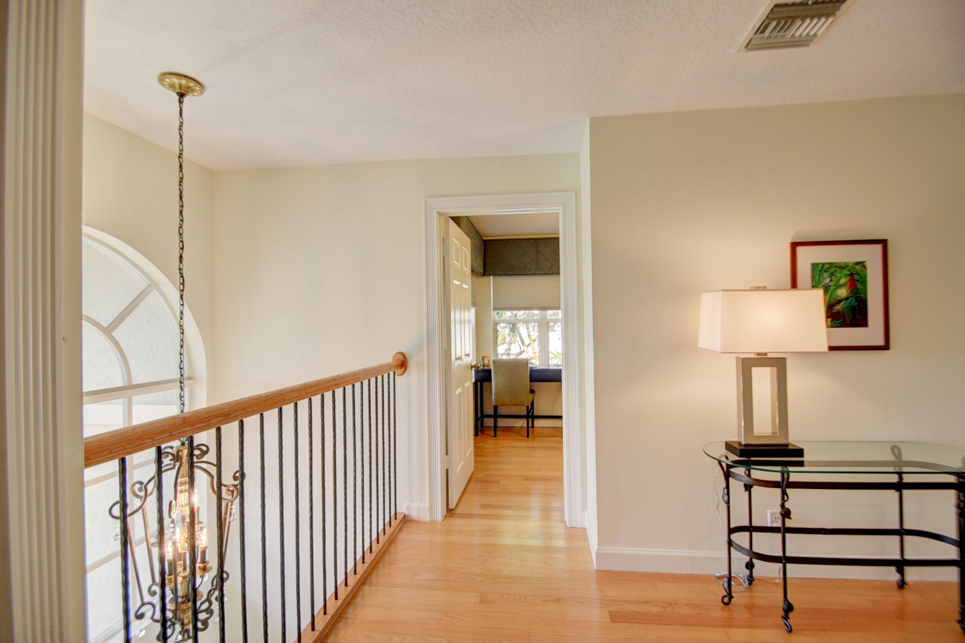 Located on private interior corner lot, lovely front double doors open into this tastefully remodeled home of 3 bedrooms plus a loft -- light & bright offering neutral tile & wood flooring; updated kitchen with light oak shaker-style cabinetry, corian countertops & a charming breakfast nook; updated bathrooms; custom window treatments; LED lighting; custom closet design; newer washer & dryer;new air conditioning system; & hurricane-rated insulated garage door. The staircase features a new banister & the landing features new railings. The second floor offers a Master Bedroom, closed loft with built-in desk & 2 bedrooms that share a bath.French doors of impact glass lead to a charming open pavered patio with tranquil landscape design.