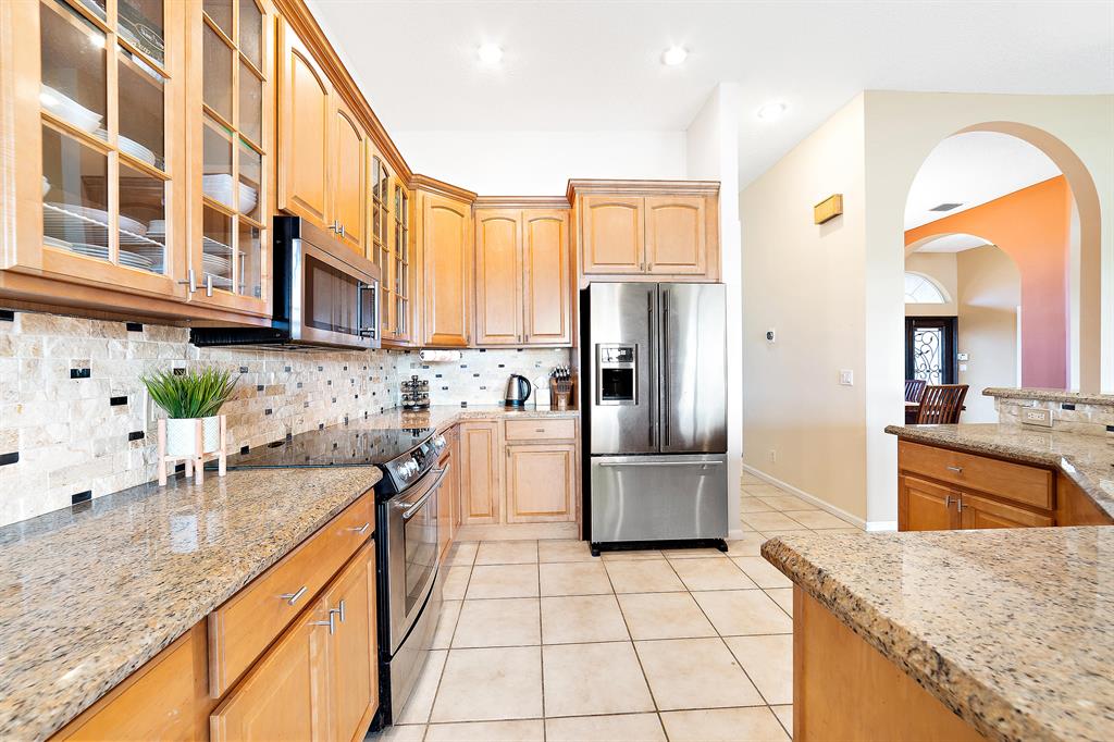 This beautiful 5 bed, 3 bath home with breathtaking lake views is on an oversized lot in the sought after community of Boca Falls. This well-cared for home has a split floor plan, playroom, updated kitchen with SS appliances, remodeled master and guest baths, tile & wood flooring, & plenty of natural light. On the exterior this perfectly positioned home has: a New Roof, a fully fenced backyard, with ample space for a pool, 3 car garage, covered patio, hurricane shutters & lush tropical landscaping. Great home for entertaining & relaxing. Conveniently located close to restaurants, A-Rated schools, shopping, parks & roadways. Boca Falls is a guard gated community with resort style amenities-clubhouse; fitness center; pool; tennis; b-ball; playground. HOA inclds cable & high speed internet.