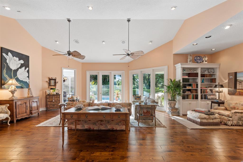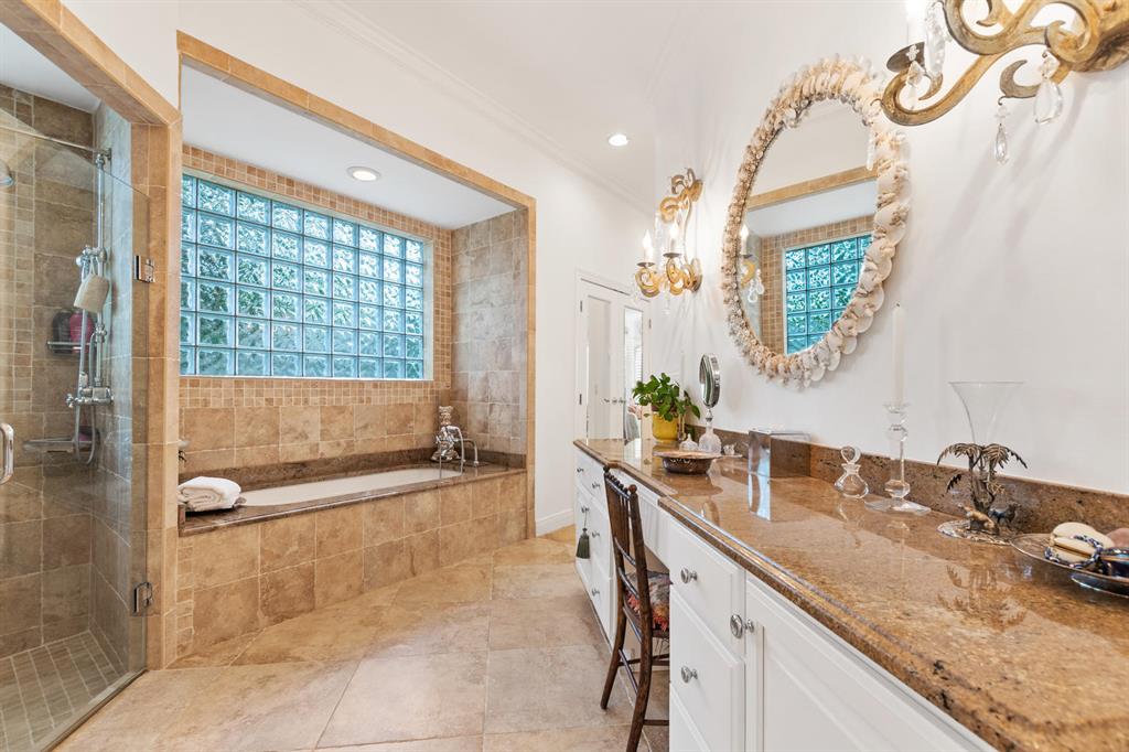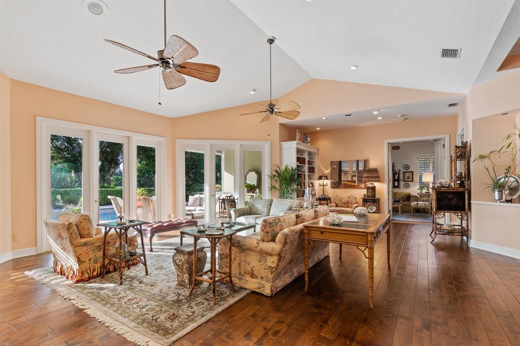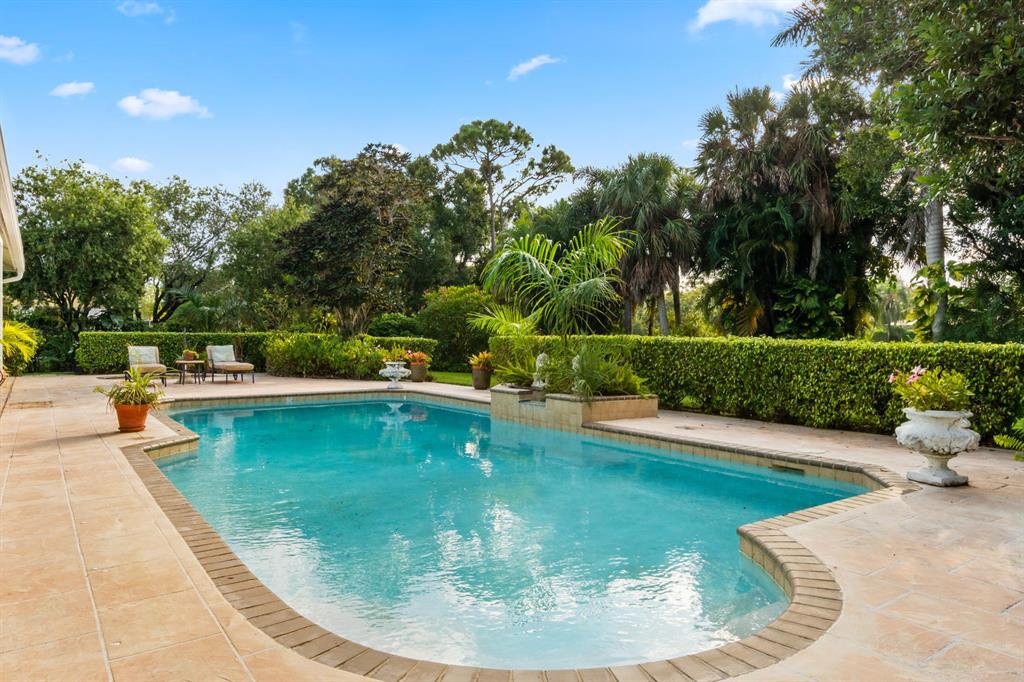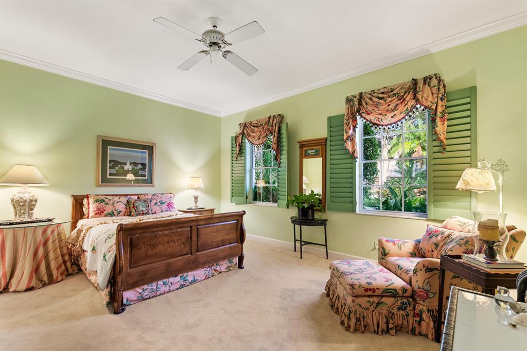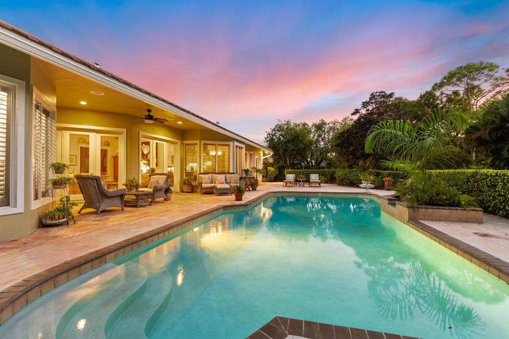 Inspired by the charm of Palm Beach, this lovely 3 BR, 3.5 BA custom home is located on .47 acre golf course view lot in beautiful Breakers West Golf and Country Club. Hardwood floors, French doors, plantation shutters and crown molding are a few of the timeless features this home has to offer. Spacious Great Room features vaulted ceilings and opens to the gorgeous pool & separate spa all surrounded by lush landscaping and the golf course beyond. White Kitchen has chopping block island, granite counters and stainless steel appliances. Master suite has French doors opening to the pool along with an updated Master Bath with 2 vanities, separate tub, lg frameless glass shower and HUGE walk-in closet. Popular split floor plan gives 2 guest bedrooms lots of privacy. Bedroom 3 has 3
