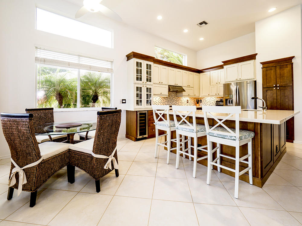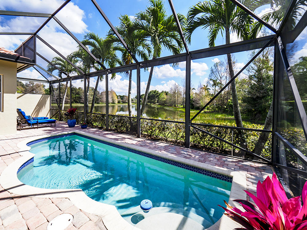 Located on a premium, pie-shaped lot with wide water views, this move in perfect home features a renovated kitchen, screened heated pool and numerous upgrades! Two story single family home with over 2,600 square feet (2200 on the first floor) master bedroom and den on the first floor and 2 bedrooms upstairs. Totally renovated kitchen...ONE OF A KIND! Designer kitchen cabinets, Quartz counter tops, stainless steel appliances, 5 burner stove, and wine cooler! A/C replaced in 2012. NEW Pool heater in 2013. The den has hand painted tile floors. Beautiful South Eastern exposure. Fully screened patio with heated pool overlooking peaceful water views. Move-in perfect and located on a premium lot!