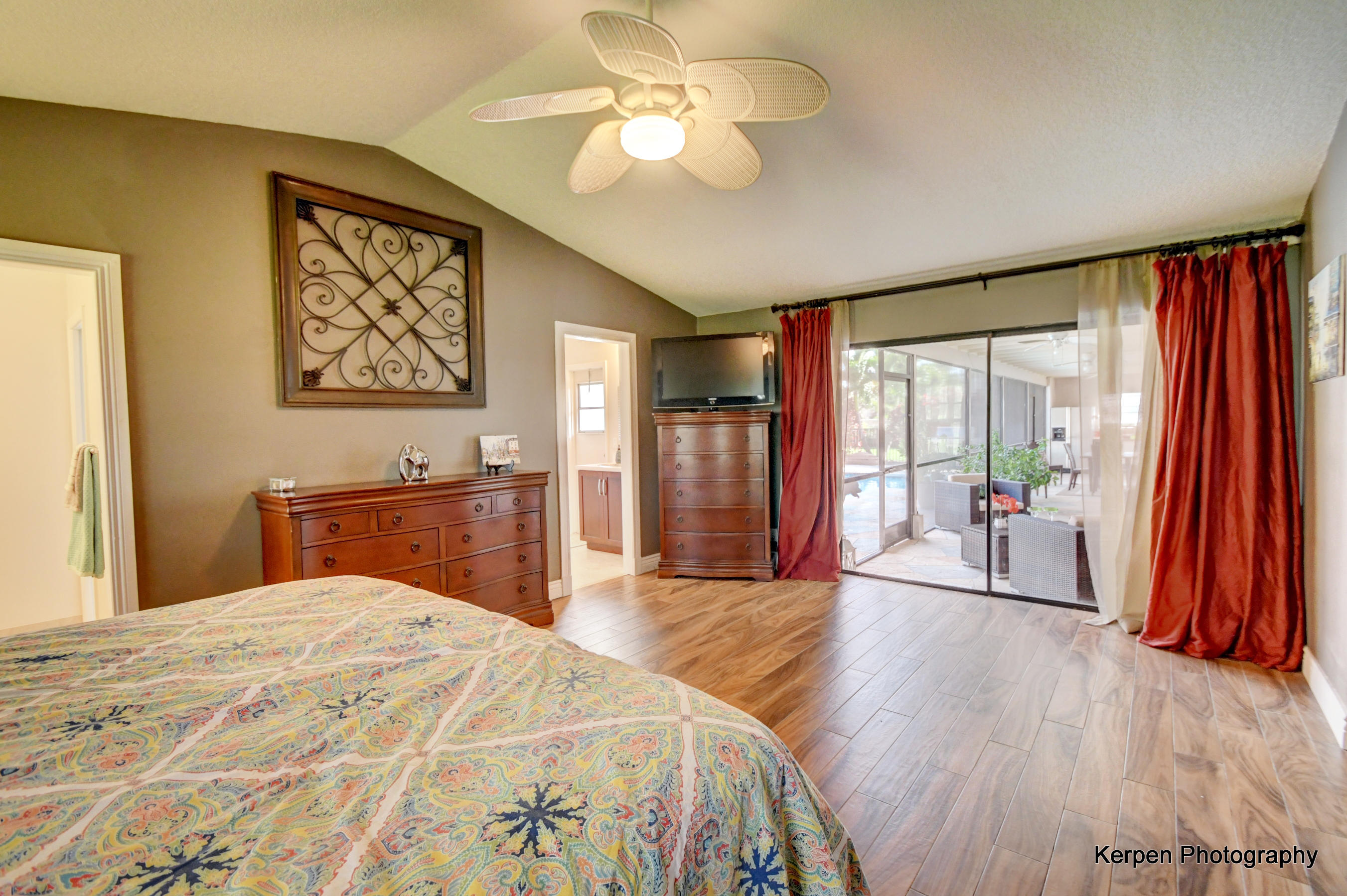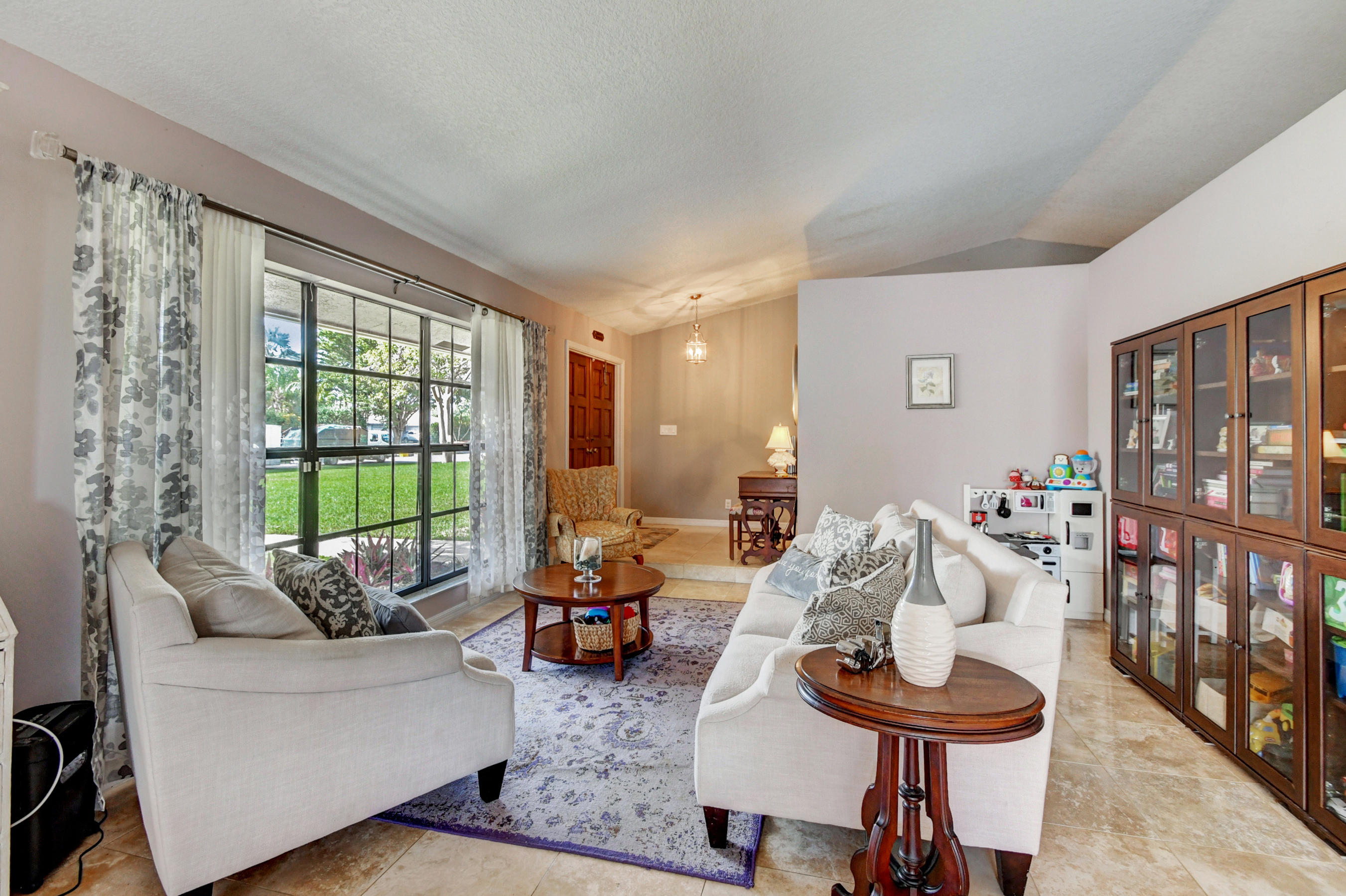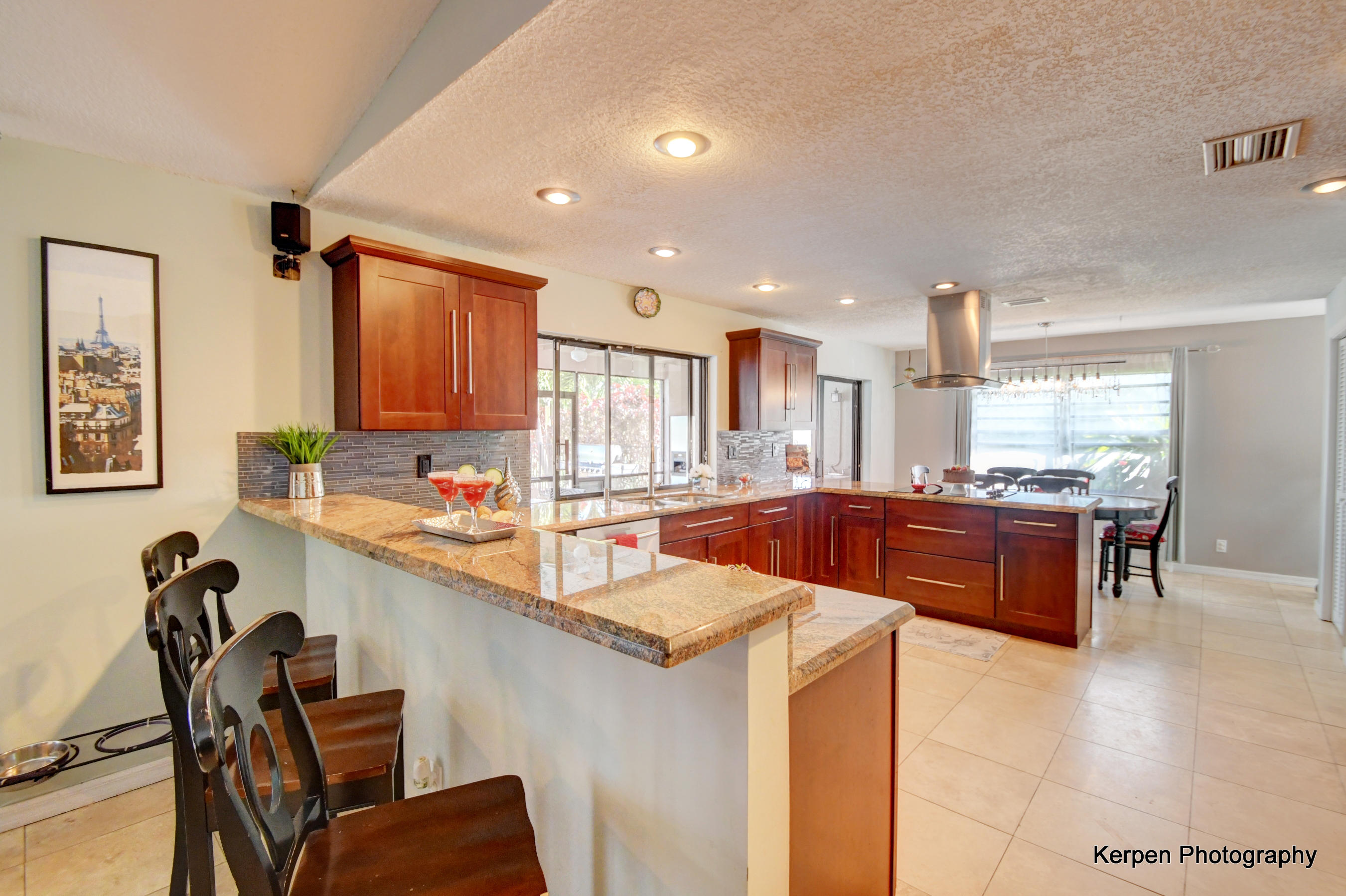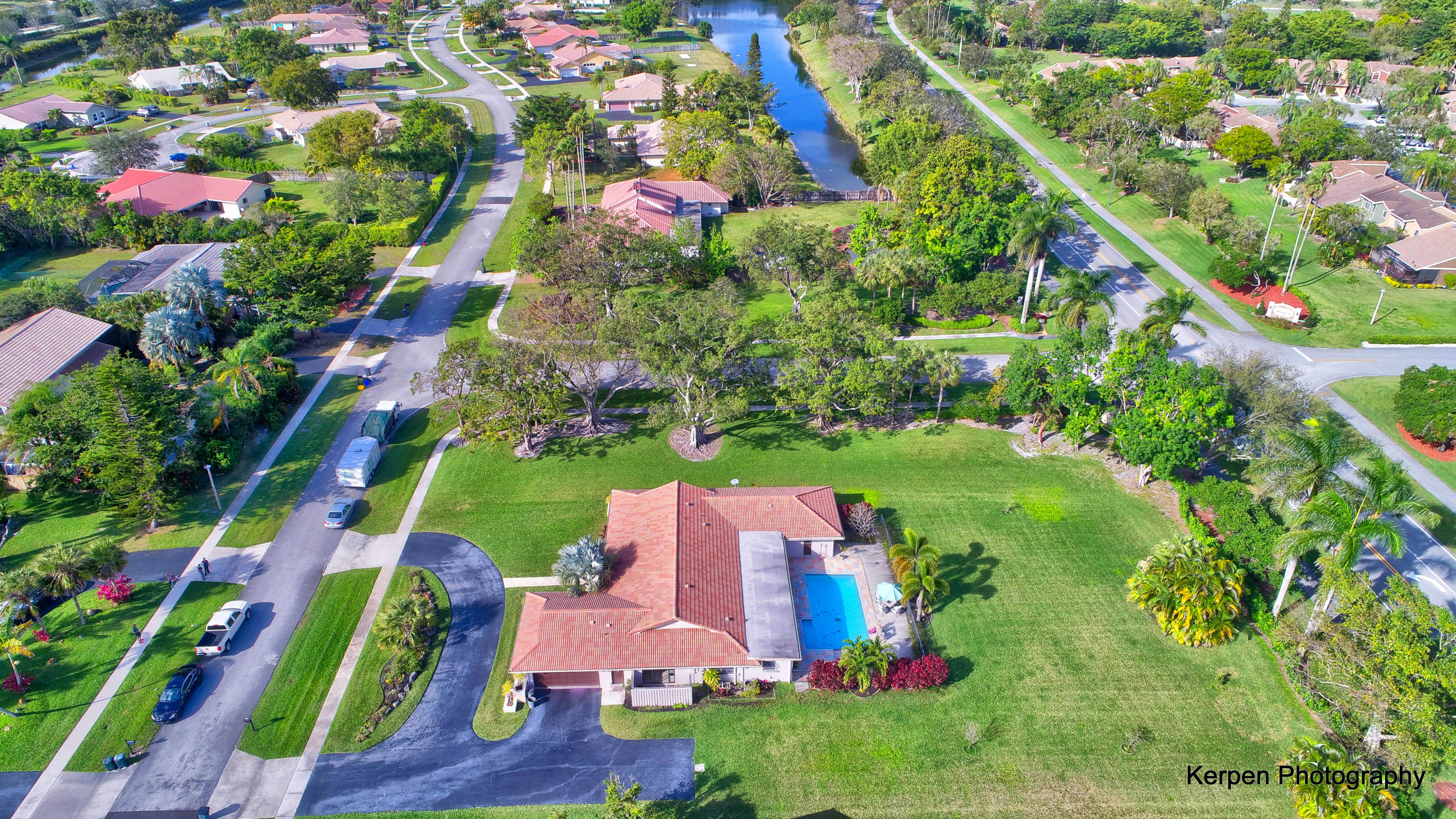 Fabulous corner lot home has 4 bedrooms, 2.5 baths, 2 car garage, Pool, Huge Backyard of more than half an acre. & nearly 50 feet between homes! No Zero lot line! This open, bright floor plan features vaulted ceilings, gourmet kitchen with stainless appliances including a stainless hood, double oven, touchless water faucet, granite counters, wood cabinetry, & so much more! Travertine floors throughout living areas, and laminate wood flooring in the bedrooms (no carpet). Tons of windows, many looking onto the patio and pool. Huge Master Suite, with his and her separate bathrooms with separate sinks and his & her separate walk in closets that you can meet in the middle/huge shower & separate bath tub.