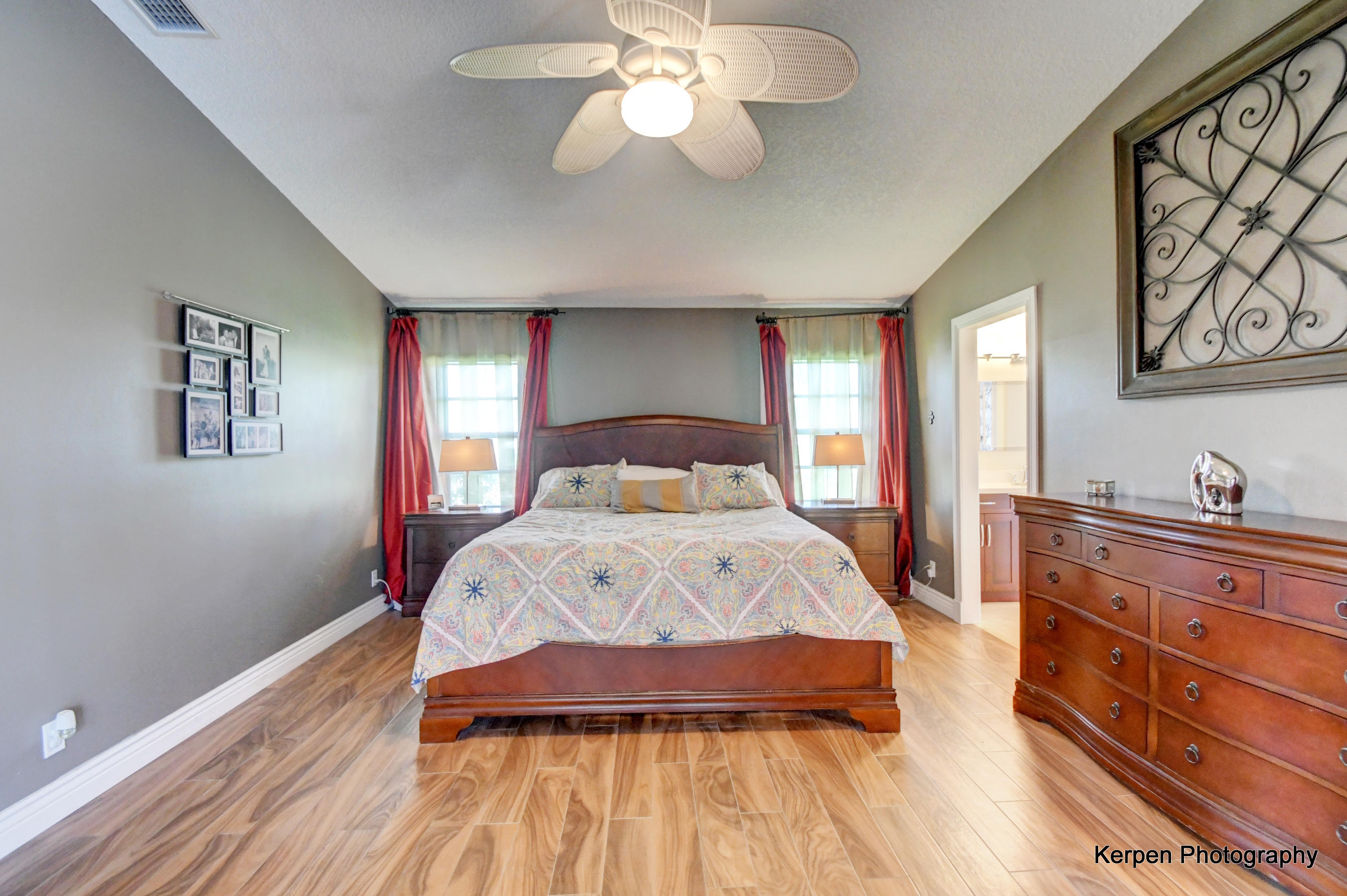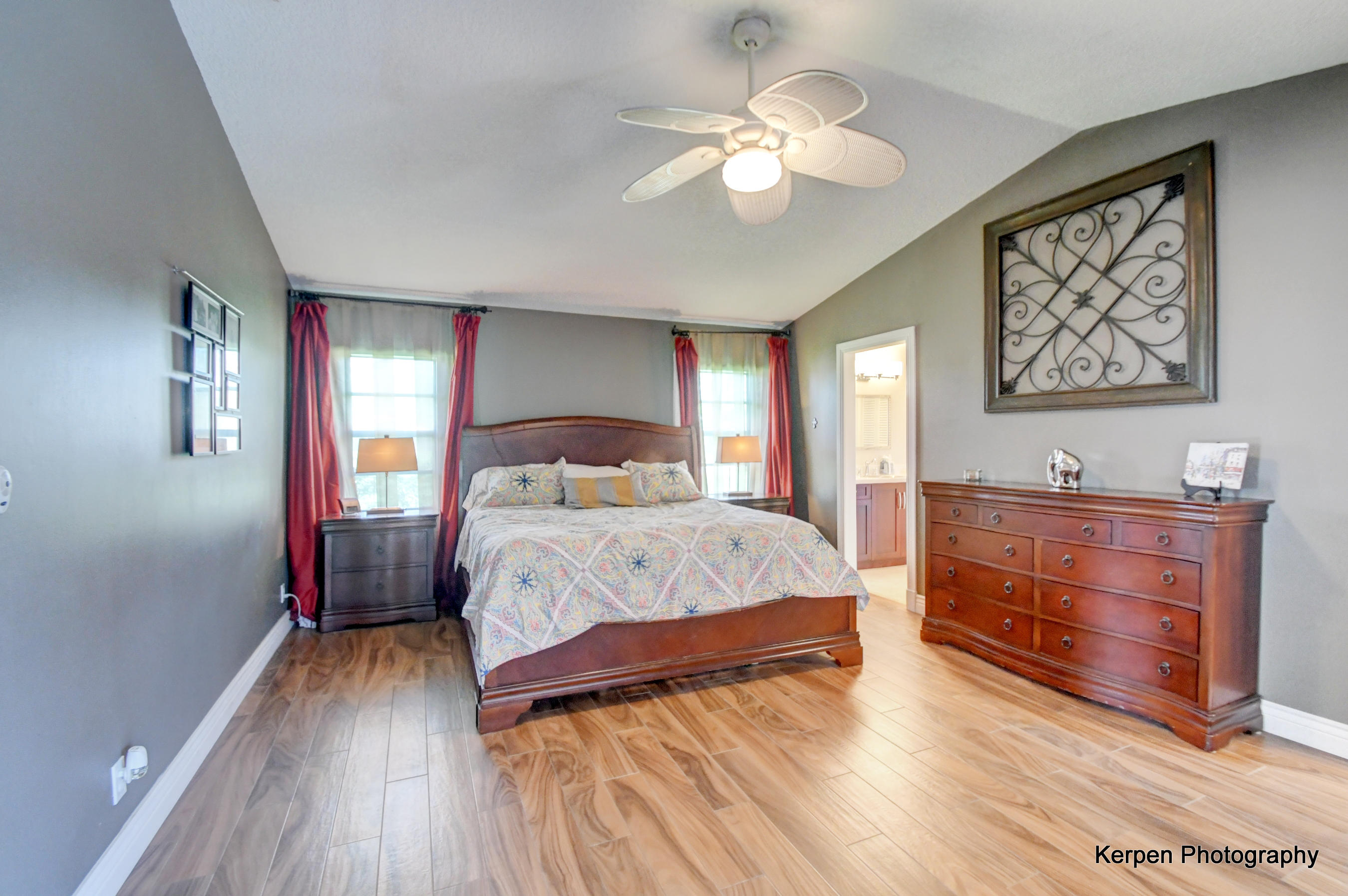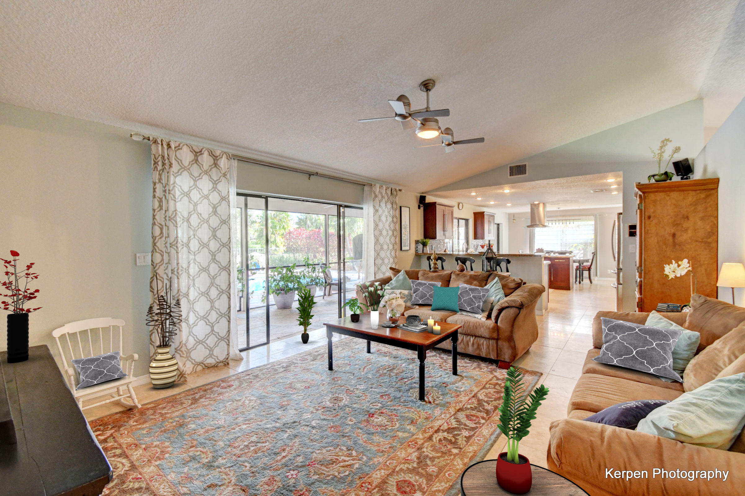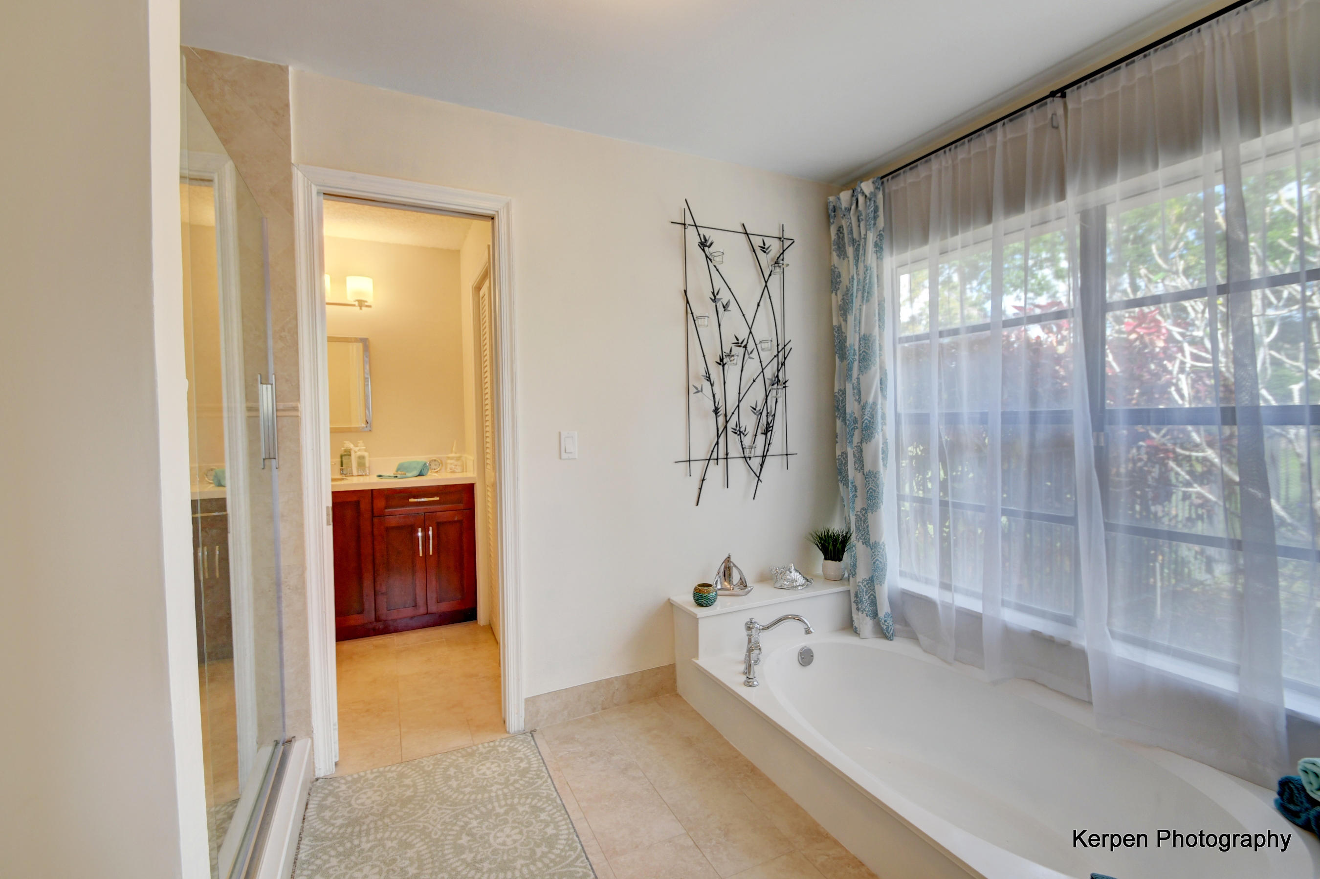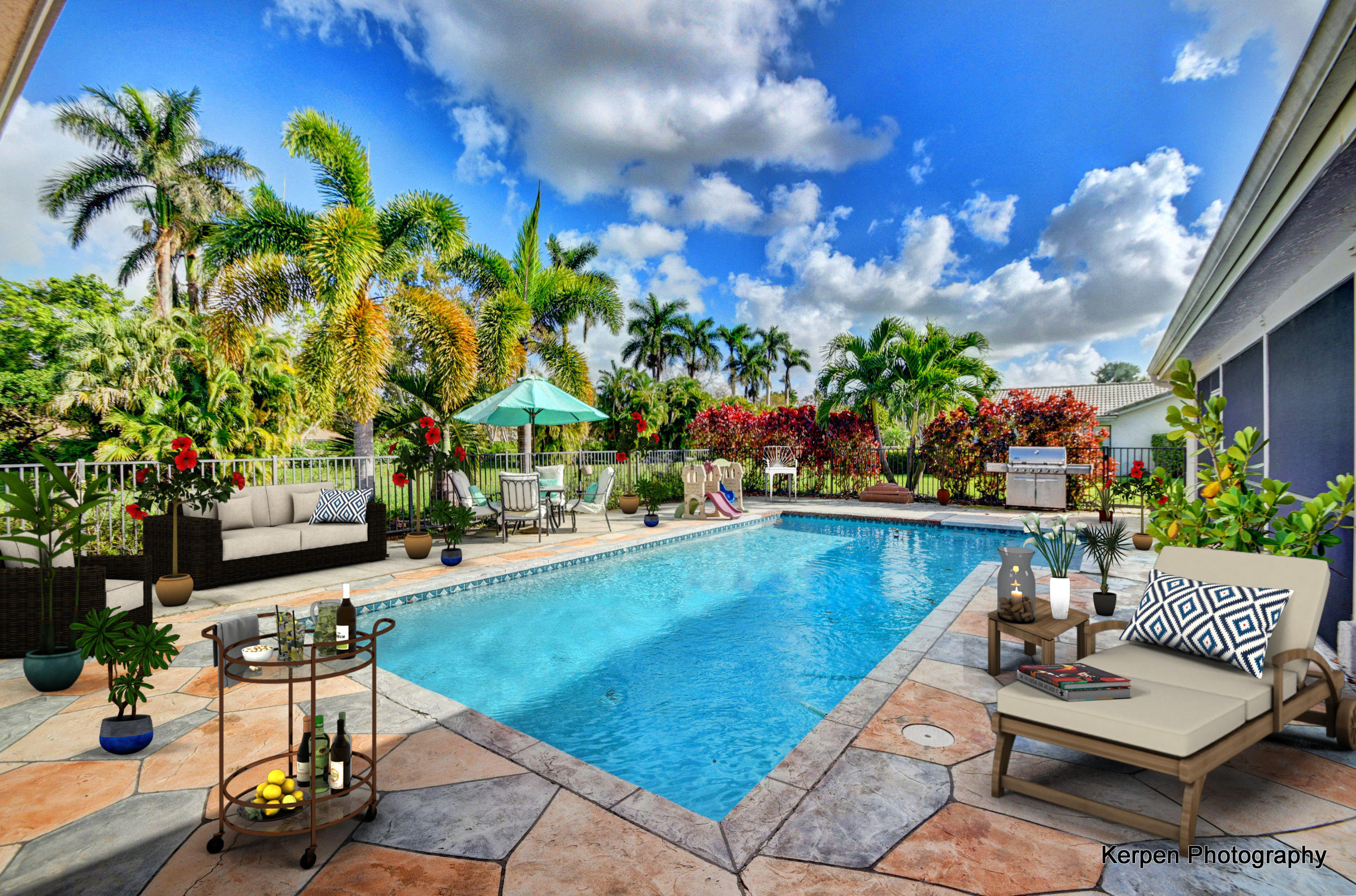 Fabulous corner lot home has 4 bedrooms, 2.5 baths, 2 car garage, Pool, Huge Backyard of more than half an acre. & nearly 50 feet between homes! No Zero lot line! This open, bright floor plan features vaulted ceilings, gourmet kitchen with stainless appliances including a stainless hood, double oven, touchless water faucet, granite counters, wood cabinetry, & so much more! Travertine floors throughout living areas, and laminate wood flooring in the bedrooms (no carpet). Tons of windows, many looking onto the patio and pool. Huge Master Suite, with his and her separate bathrooms with separate sinks and his & her separate walk in closets that you can meet in the middle/huge shower & separate bath tub.