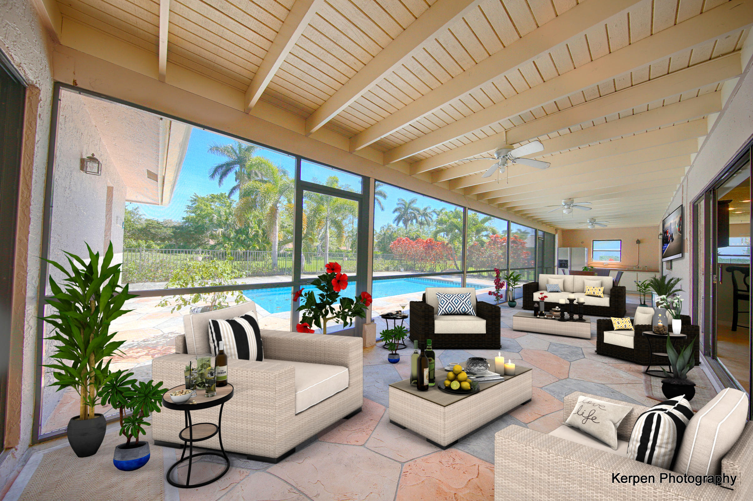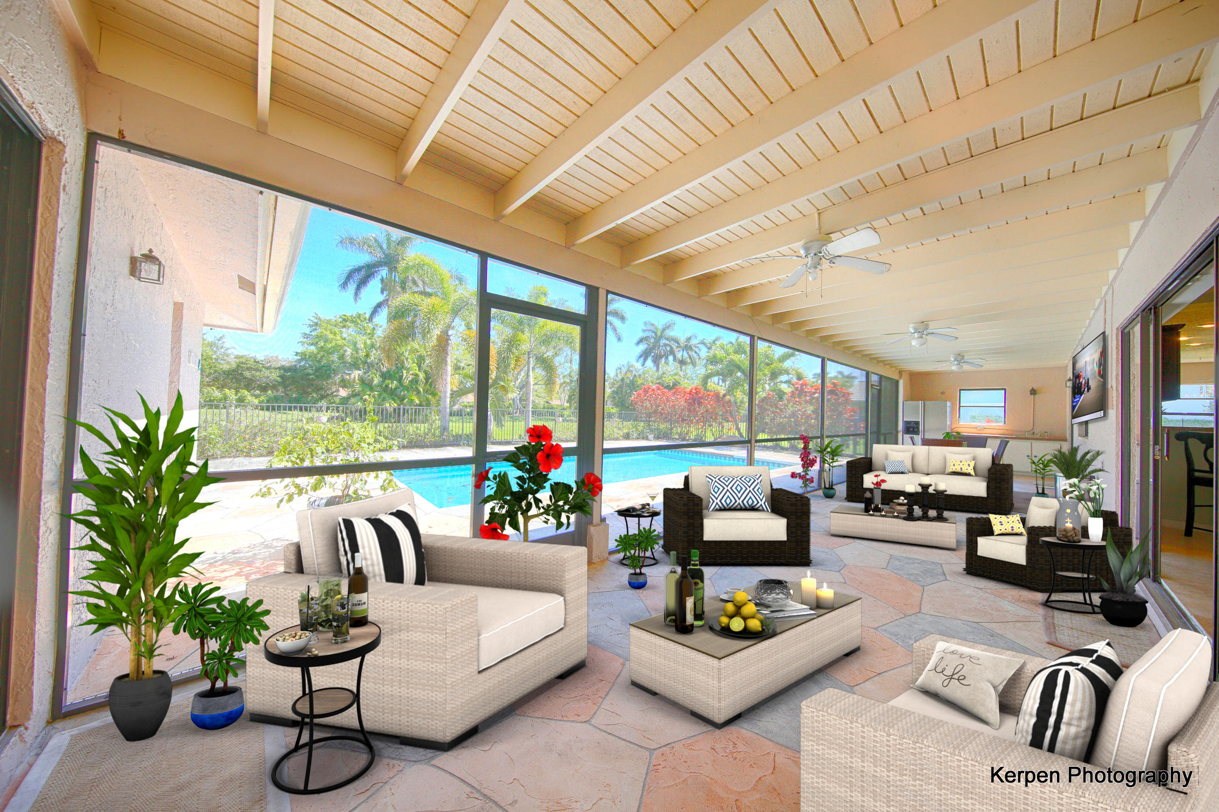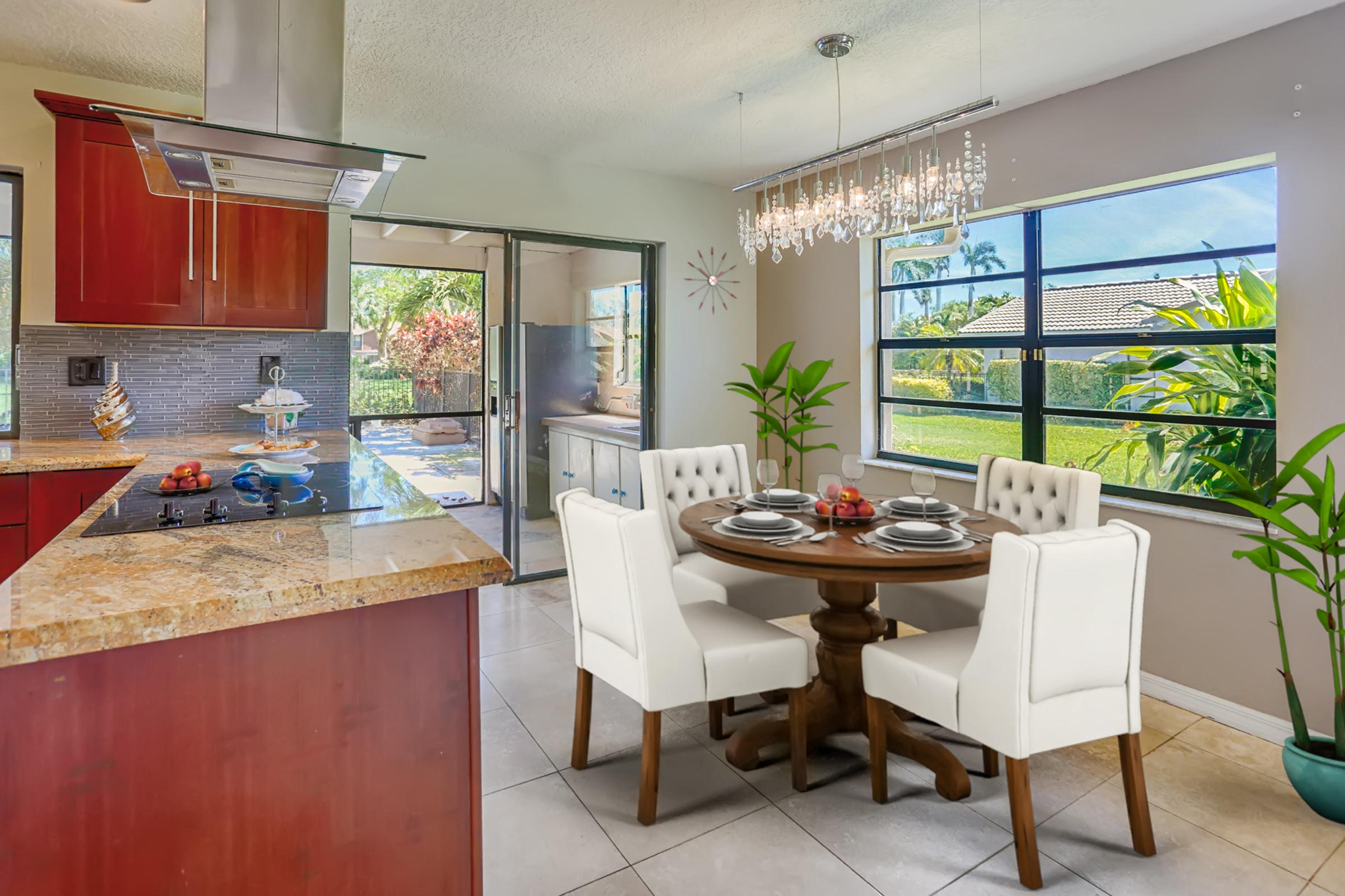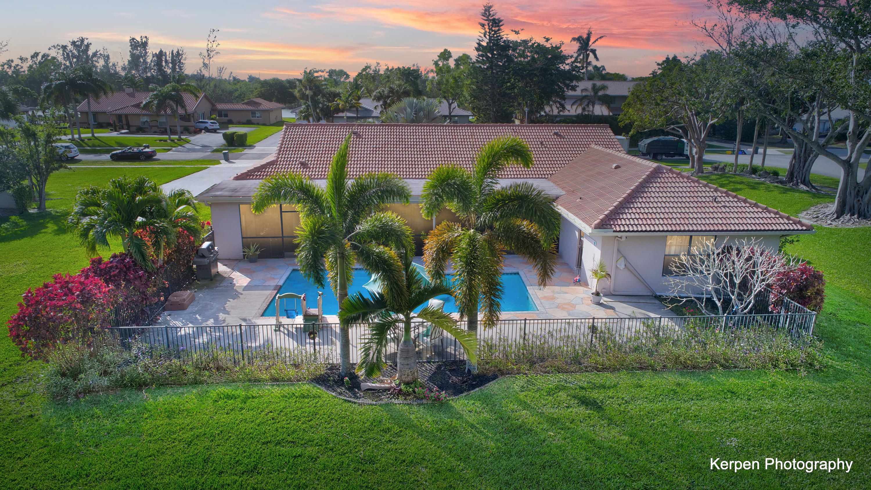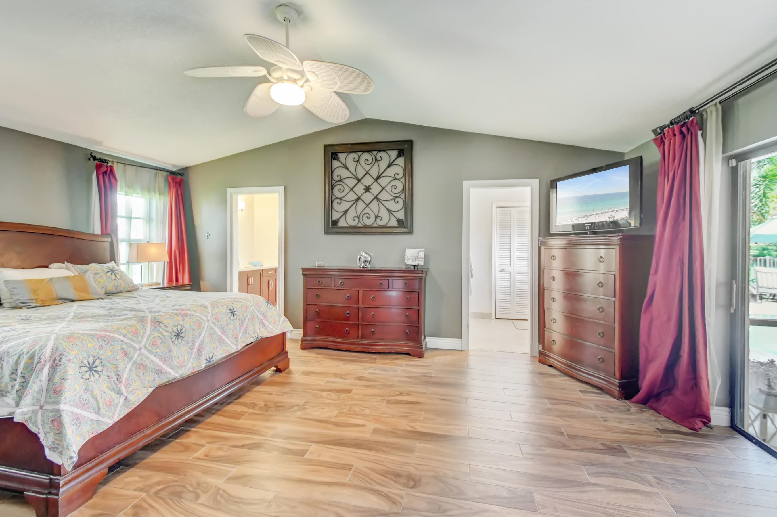 Fabulous corner lot home has 4 bedrooms, 2.5 baths, 2 car garage, Pool, Huge Backyard of more than half an acre. & nearly 50 feet between homes! No Zero lot line! This open, bright floor plan features vaulted ceilings, gourmet kitchen with stainless appliances including a stainless hood, double oven, touchless water faucet, granite counters, wood cabinetry, & so much more! Travertine floors throughout living areas, and laminate wood flooring in the bedrooms (no carpet). Tons of windows, many looking onto the patio and pool. Huge Master Suite, with his and her separate bathrooms with separate sinks and his & her separate walk in closets that you can meet in the middle/huge shower & separate bath tub.
