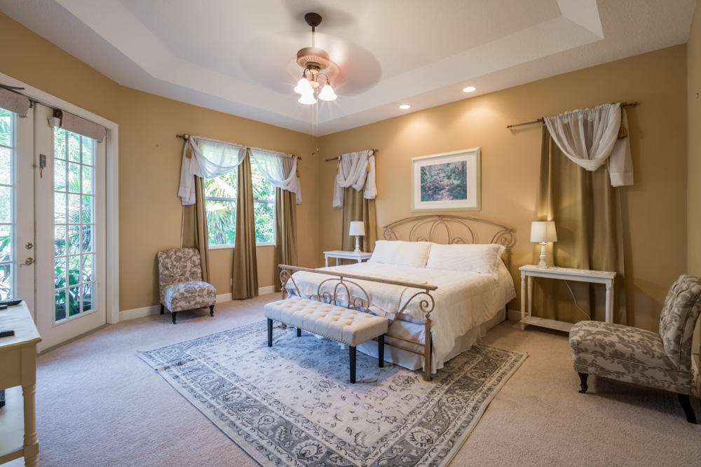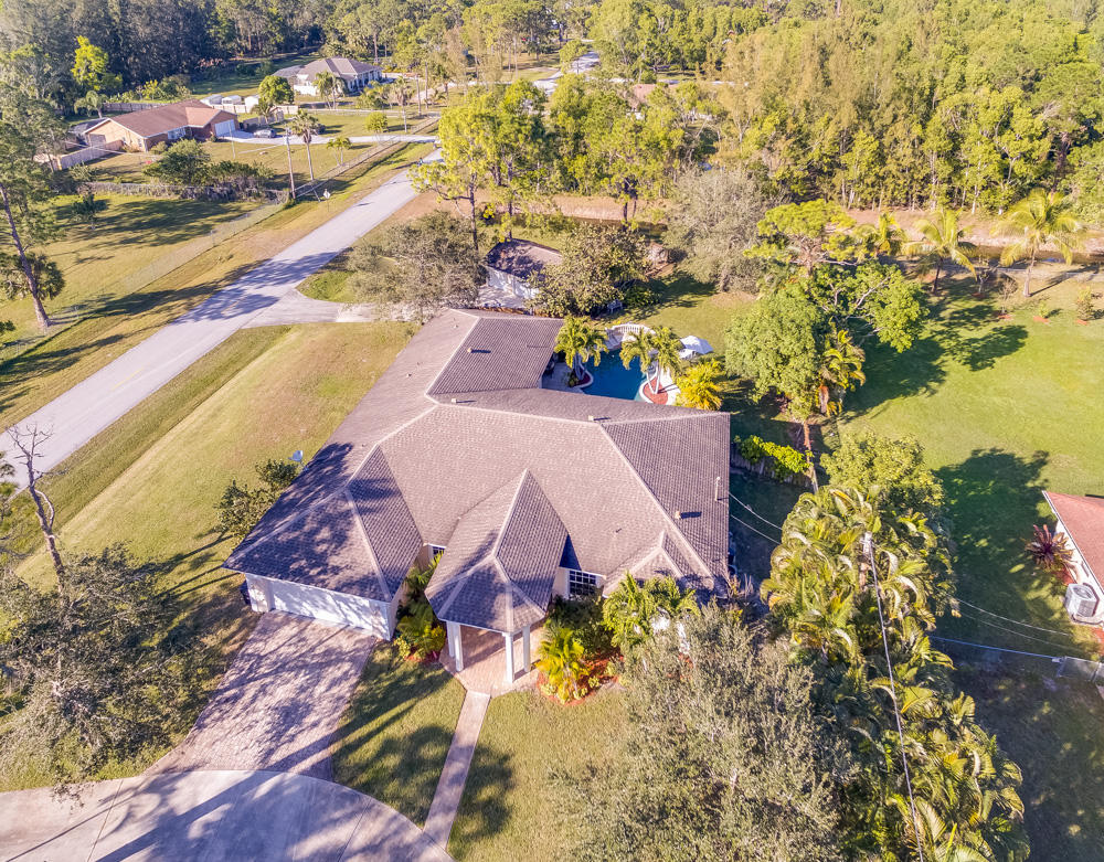 Acreage paradise, an escape from the city, bring your pets, horses allowed. Centrally located for easy accessibility. 2 Attached and 3 Detached Garage in rear of home, perfect for workshop/home business/mother-in-law. Split 4 bedroom plus office/den/bed. Bedrooms have new carpet, master suite his/hers closets, closet doors are mirrored, master bath separate shower, separate WC, jacuzzi tub, pantry,laundry room, granite kitchen counter-top, vault ceilings, hurricane shutters, formal living, dining room, den, family room and alarm systems. Short drive to the beach, City Place, Worth Avenue boutiques,restaurants,art galleries, Wellington Mall, all of what Palm Beach has to offer. Custom design Resort Pool, Spa, and Waterfall - pride of ownership.