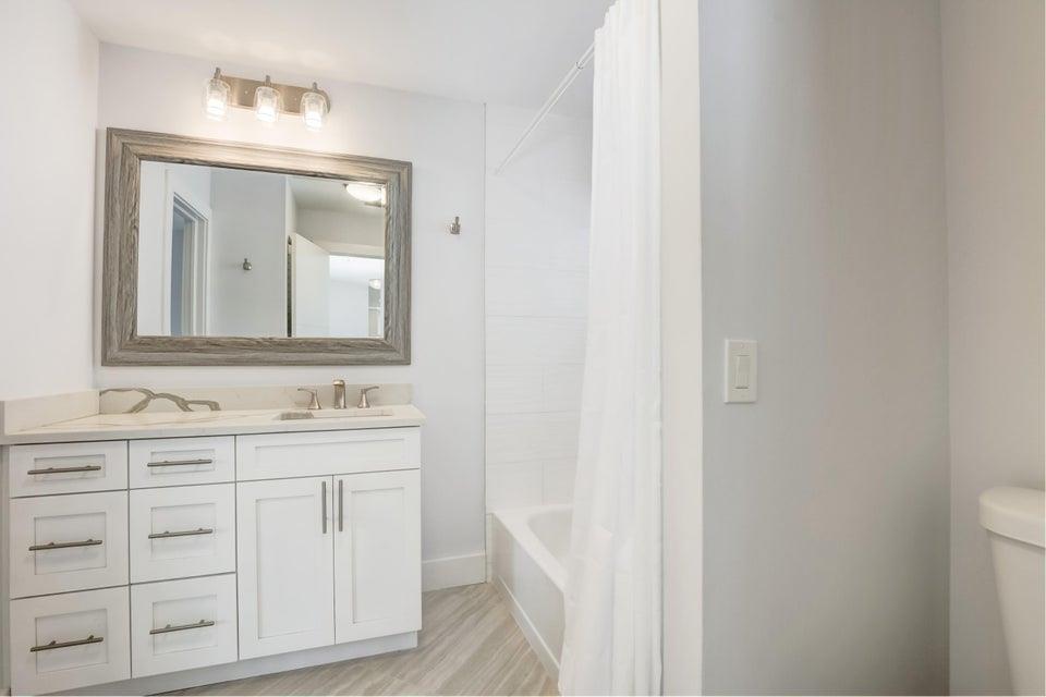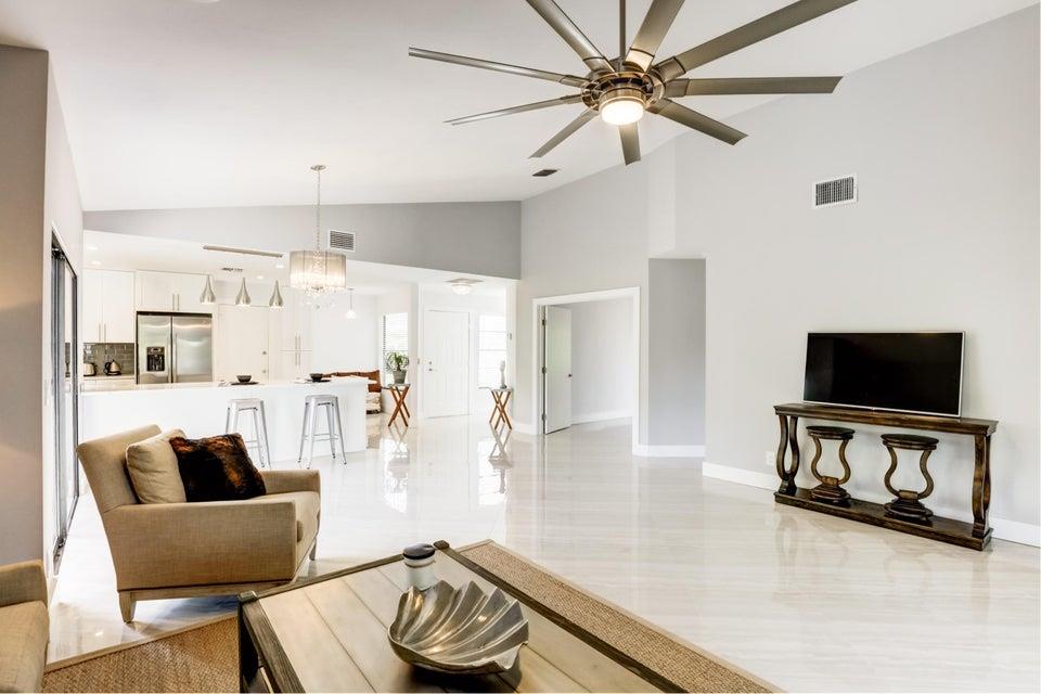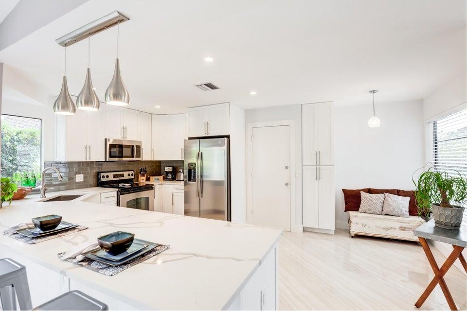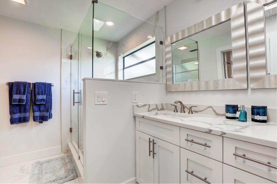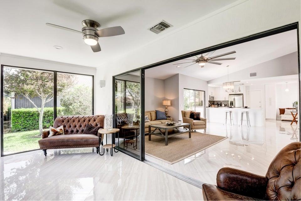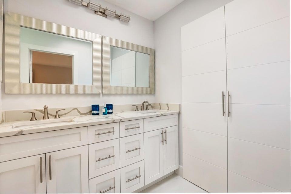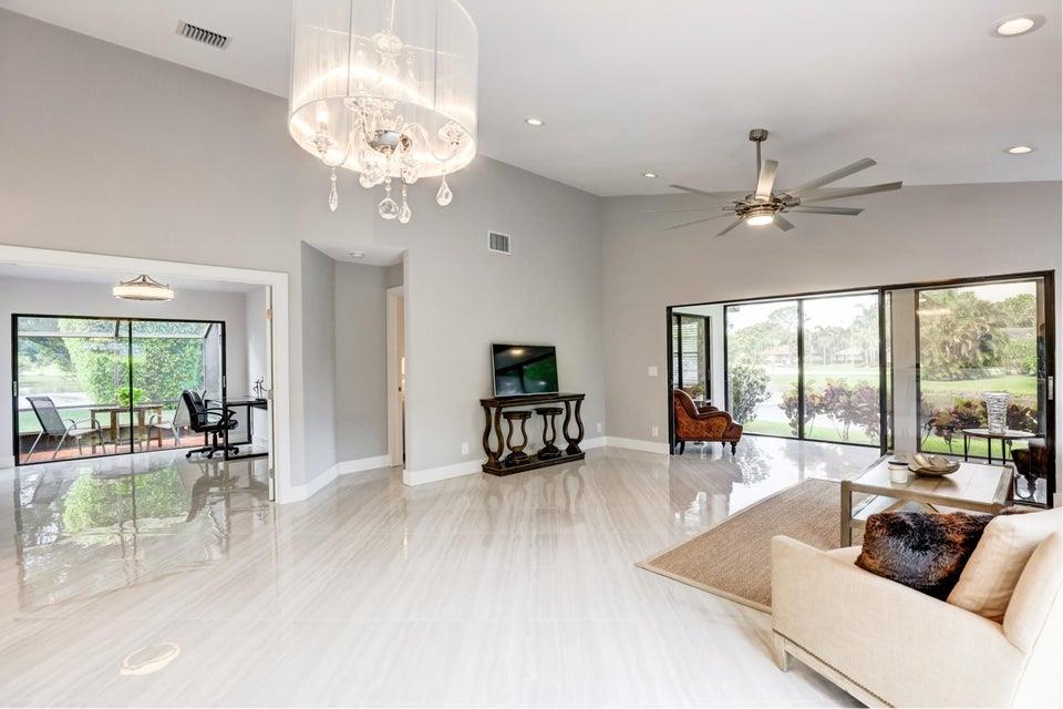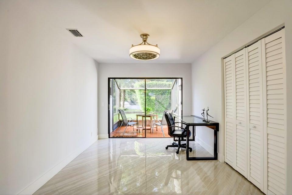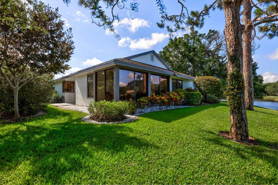 Beautifully renovated in 2017 Italian-style porcelain tile floors, Carrera Quartz countertops, solid wood Shaker cabinetry, and Moen fixtures. Light and bright open floor plan with two outdoor patios and peaceful water/fountain views from three sides. A/C and water heater two years old. Private location at end of cul-de-sac.
