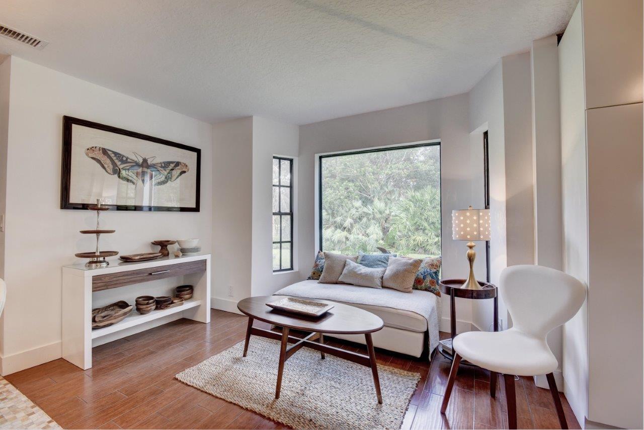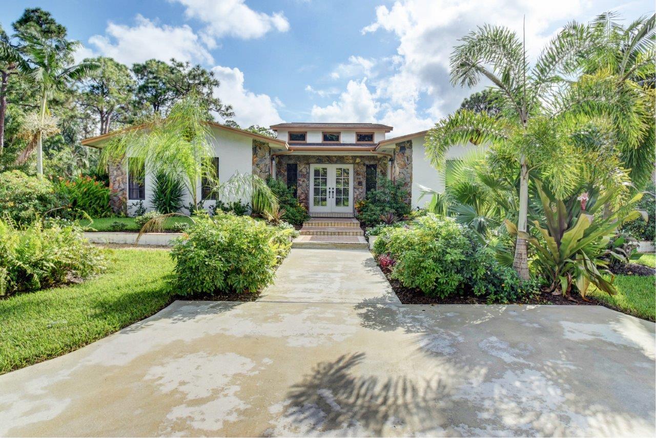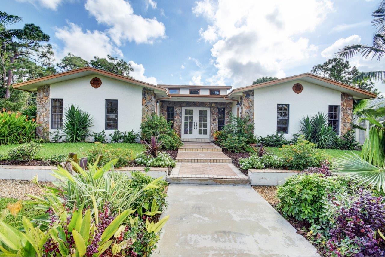 Gorgeous, immaculate 3 bed / 3 bath mid-century modern home located on 1.25 acres in the Acreage. It's country-living at its finest with all the benefits of the city nearby. There's even horse stalls and a large, fenced field areajust bring your horses! A large (25 x 34) detached garage is perfect for equipment or boat/RV storage. This recently updated one story home features wood-look ceramic tile flowing throughout (except living room which is carpeted), a large sunken living room with a vaulted French-styled tongue and groove ceiling, separate dining room, split bedrooms for privacy, a cozy patio offering a lovely view of the luscious landscaping and outdoor area. Some of the many updates include A/C (2017), water heater (2015), updated kitchen and appliances (2015),
