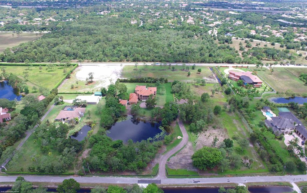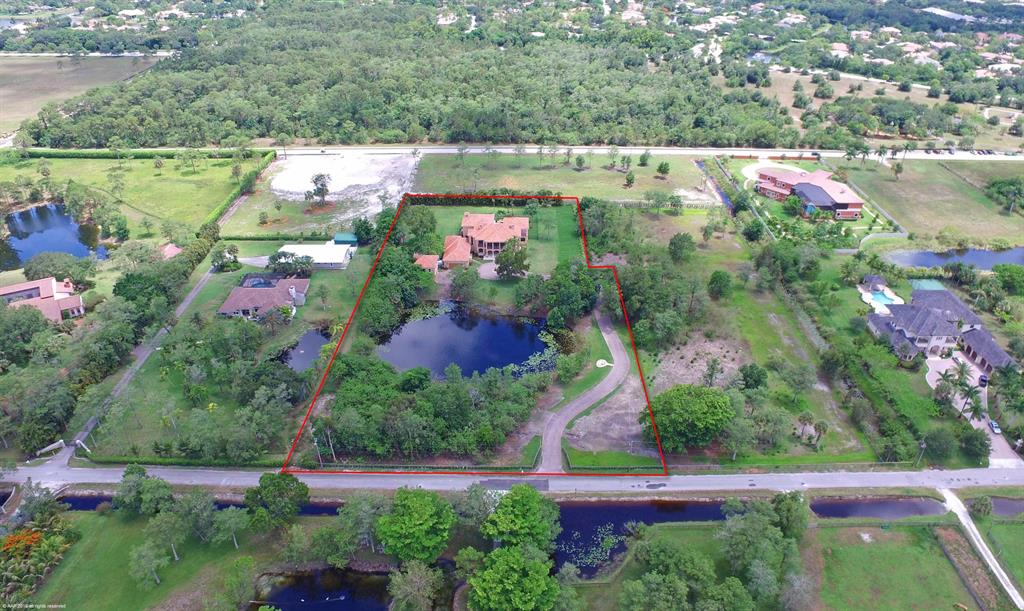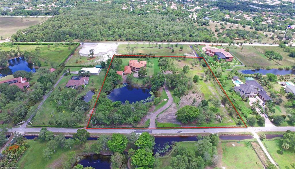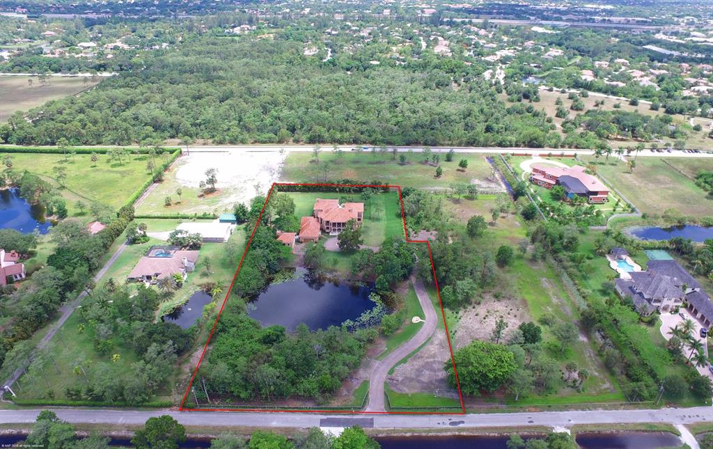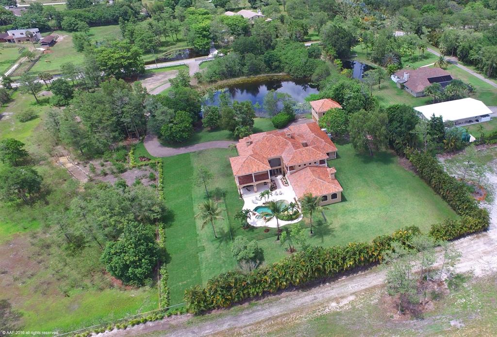 Amazing compound with Mediterranean style 2-story main house plus 4 car garage and guest house on 3.566 acres and private pond. Can bepurchased with additional, adjacent 2.933 acres and approved agricultural exemption. First time offering, builders own home, with high end finishes throughout.Spacious, warm and inviting living areas, with Grand Foyer entry, huge eat-in kitchen, 2 dishwashers, gas cooking, Family room with Gas fireplace, all bedrooms ensuite, 10 ft ceilings, 2 laundry rooms, 2 staircases. 2763 sq ft of covered patios and balconies, Hardwood floors thru-out. Gas heated 35x20 resort style pool and spawith 2 waterfalls, all hurricane impact glass windows and doors, and so much more.