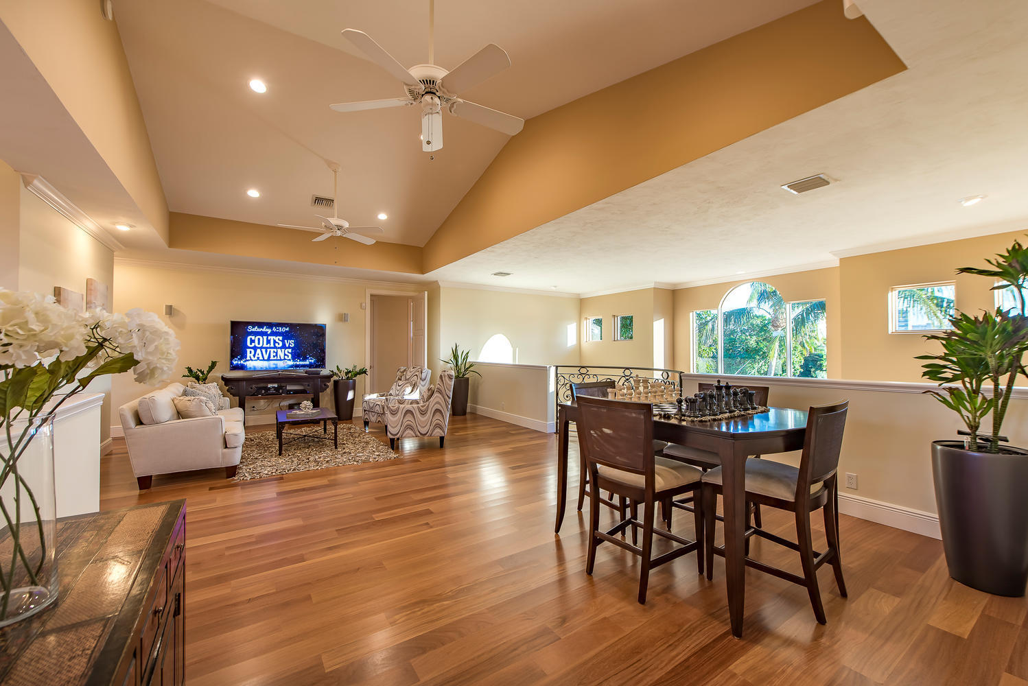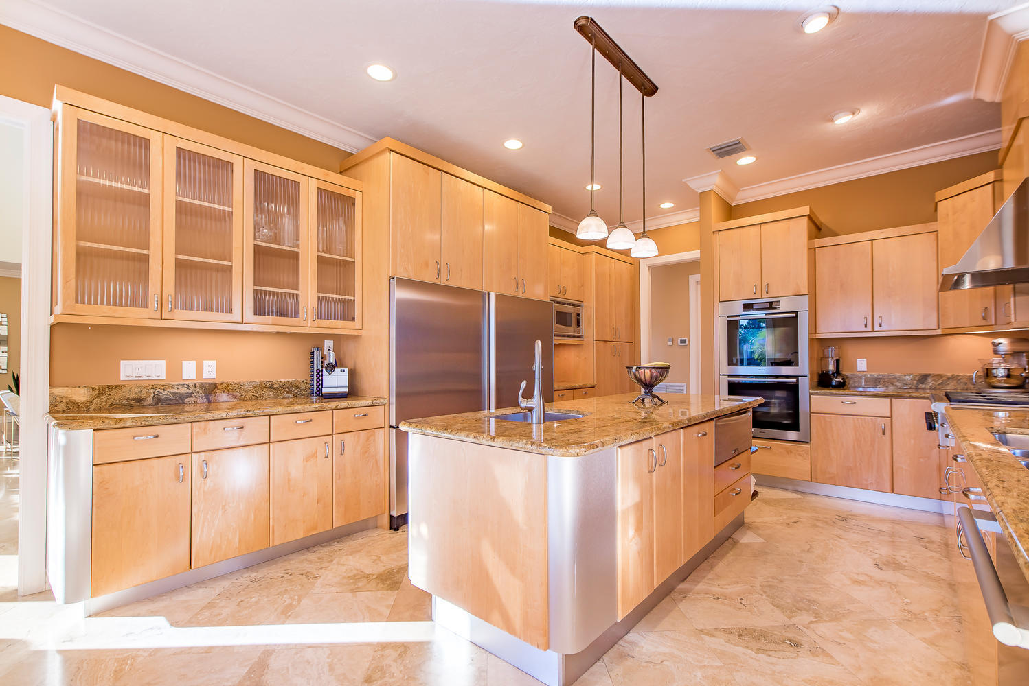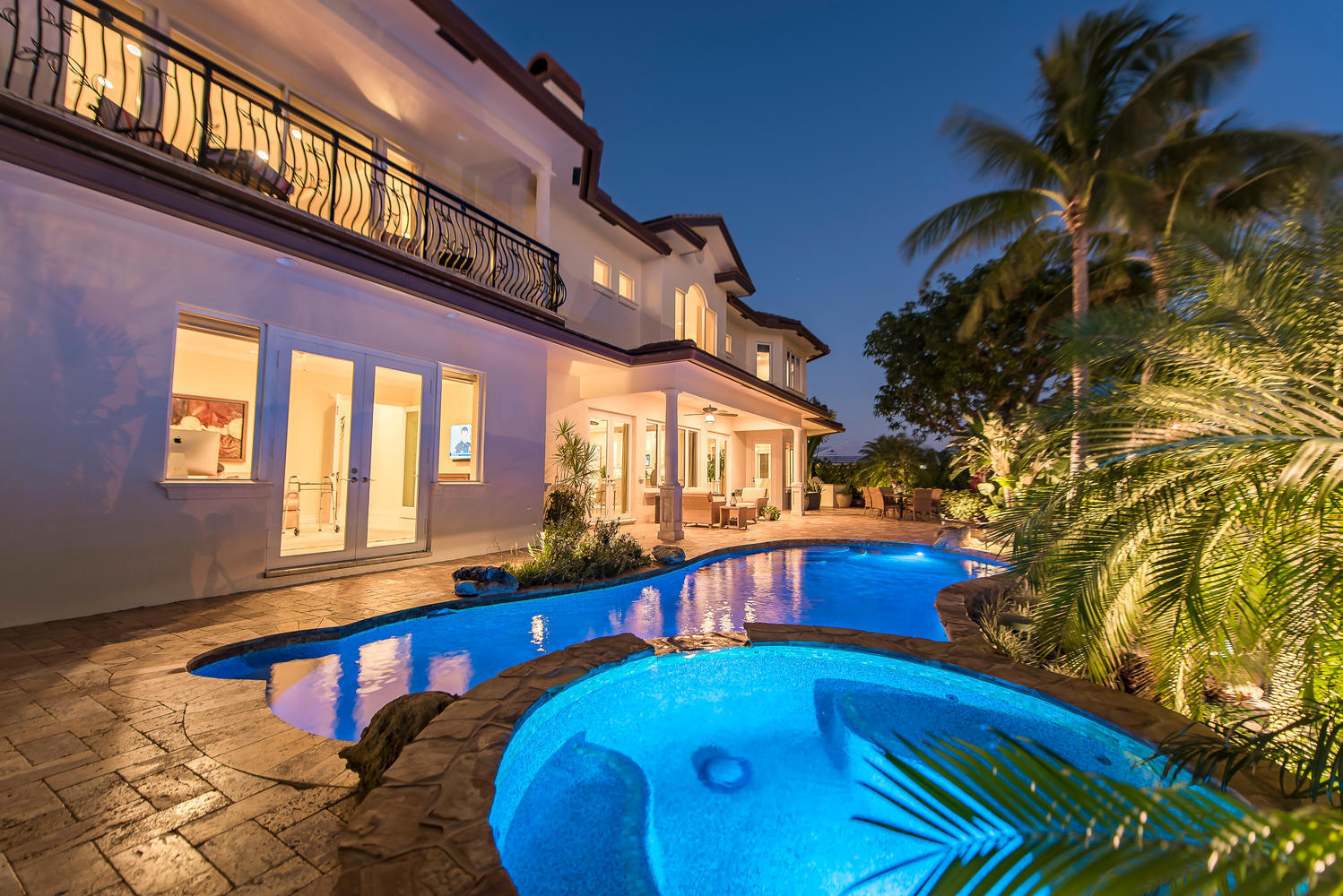 Elegant, light and bright 5 bed 5 bath home with 2 bonus rooms and a 4 car garage!! Spectacular endless southern water views are seen from almost every area of the home. Grand entry way with massive impact doors, wrought iron staircase & marble floors. Chef's kitchen, double ovens & frig,gas cooktop and island with many features.Setup to entertain.Impressive master suite.Impact windows and doors T/O & alarm system.Cabana bath & heated saltwater pool. Open floor plan with custom full service wet bar.