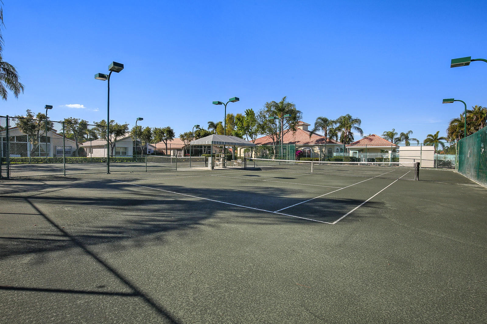 Spacious, light & open. Freshly painted interior. New carpet in the bedrooms. Eat-in kitchen. Formal Living and Dining rooms PLUS a Family Room. 3 true bedrooms w/split plan for extra privacy. Master Suite has 2 large walk-in closets,double vanities,soaking tub & separate shower. Large, tiled, screened & covered patio. Accordion shutters.Backyard is hedged for privacy with colorful landscaping. Trellised archway leads to the pool, clubhouse & tennis courts. Crescent Lakes is one of Boca's best kept secrets. Gated community w/pool, clubhouse, fitness & 2 lighted, clay tennis courts. All ages are welcome. Neighborhood is pet friendly. AC 2009. ''S'' tile roof as built. New (2018) garage door and door opener. HOA fee includes lawn/landscaping + irrigation,security gate & recreation facilitie