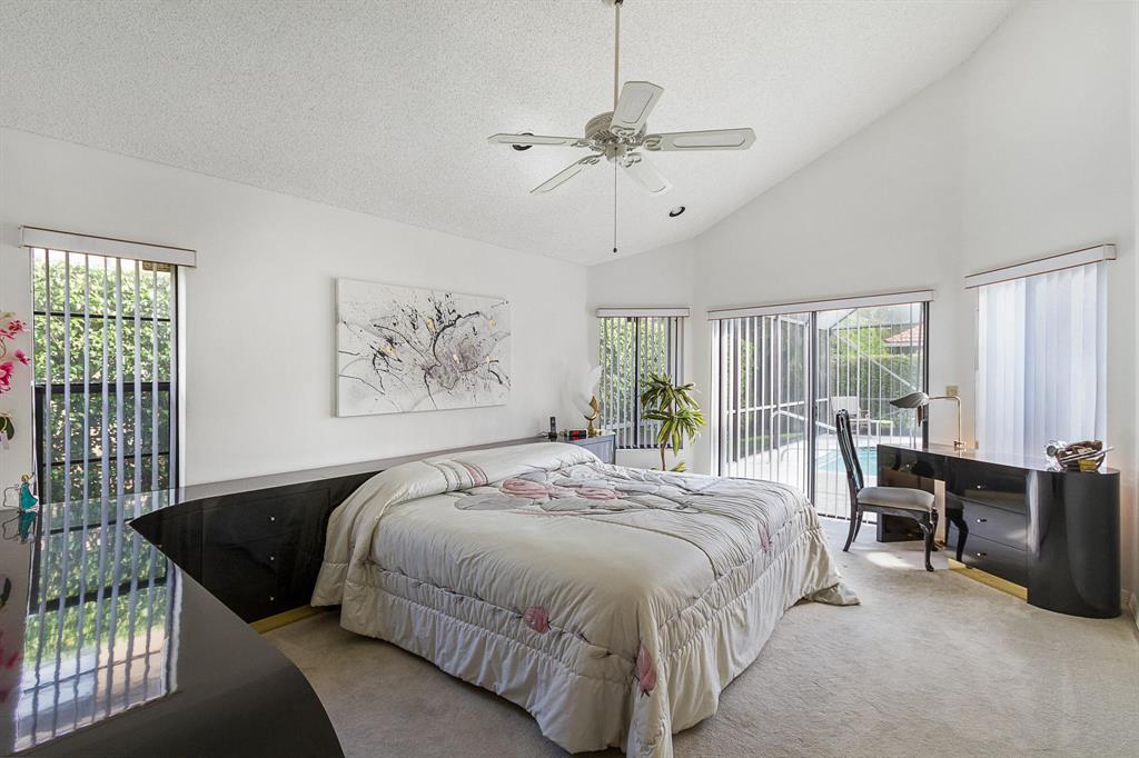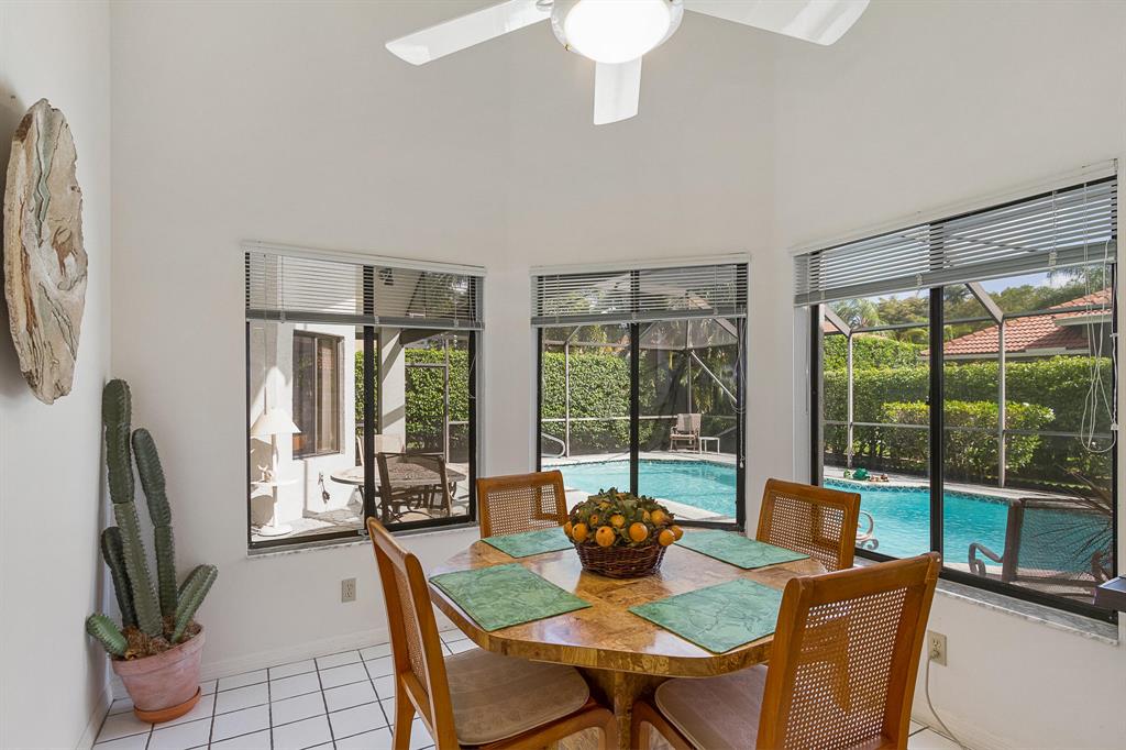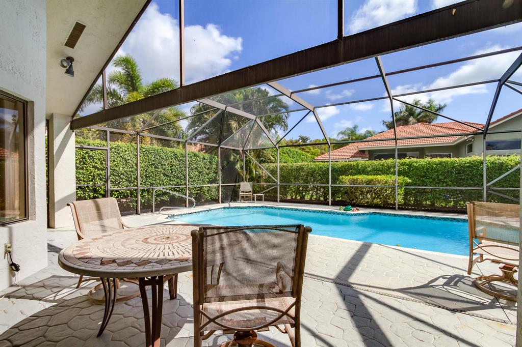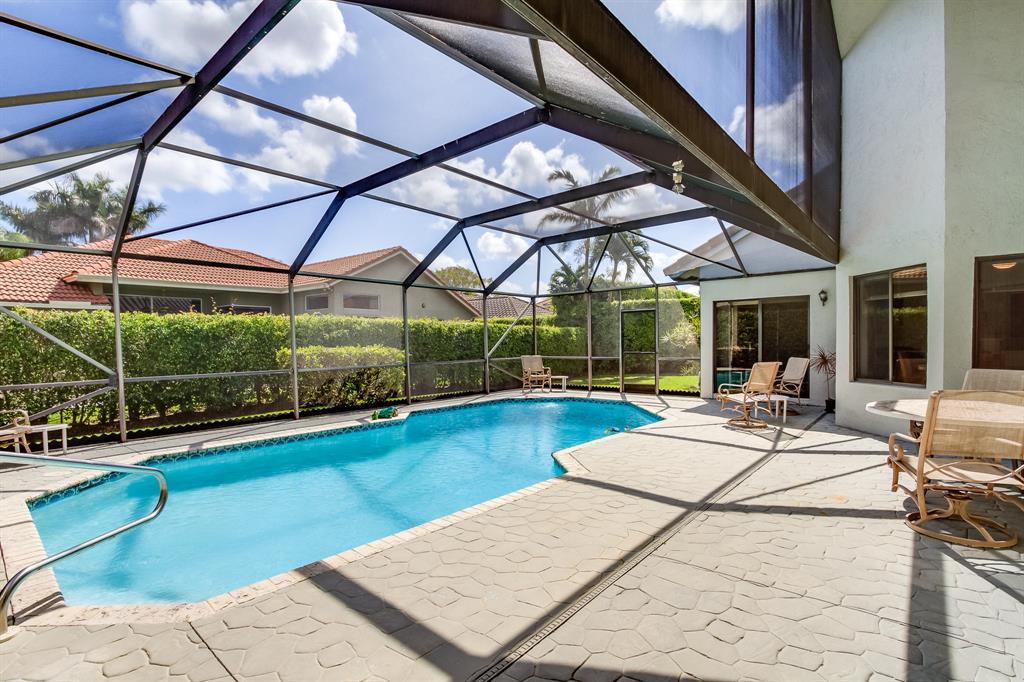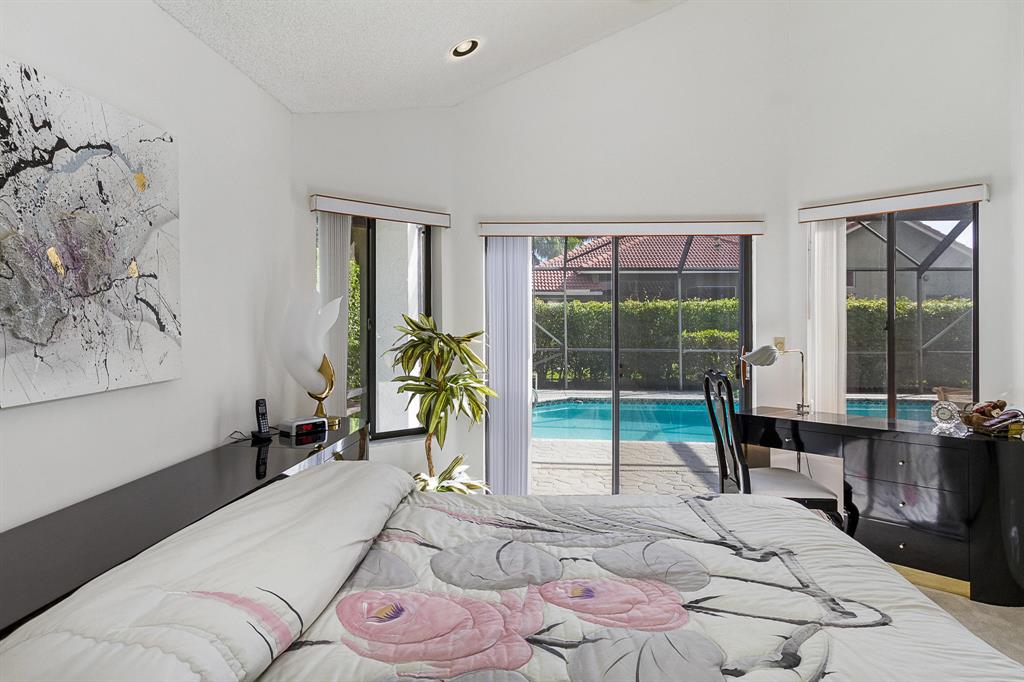 This immaculately kept 4 bedroom, 3 bathroom pool home is a dream right in the heart of Boca! Walk up the pavered driveway and past the beautiful landscaping to enter via the double door entrance. You will immediately notice the tall, vaulted ceilings, natural light throughout and spacious open living spaces in this serene home. The master bedroom is spacious and opens to the back patio. The master bath features dual sinks and separate shower and soaking tub. The formal dining room features a built in bar and the open kitchen has a large breakfast bar as well as a generous breakfast nook that overlooks the bright blue East facing pool in the private back yard. you can also enjoy al fresco dining in the covered, screened lanai.