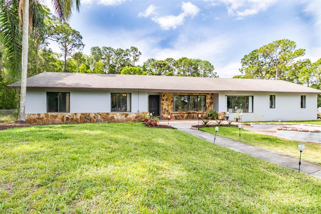 Beautiful ranch style home with large open living area ideal for entertaining! This home has a modern touch with a light rustic feel, featuring vaulted tongue & groove ceilings and slate colored tiles throughout the living areas. Spacious bedrooms have neutral carpets. Open kitchen has upgraded cabinets and stainless steel appliances. Two master suites with walk in closets make this home a great fit for any family. Fantastic outdoor area with screened pool and large covered patio overlooking the private back yard. This 1.25 acre fenced lot is located on a paved road in Loxahatchee area.