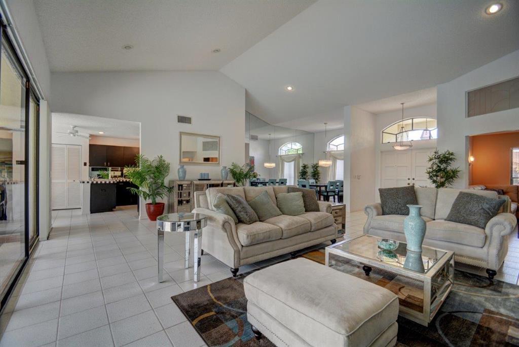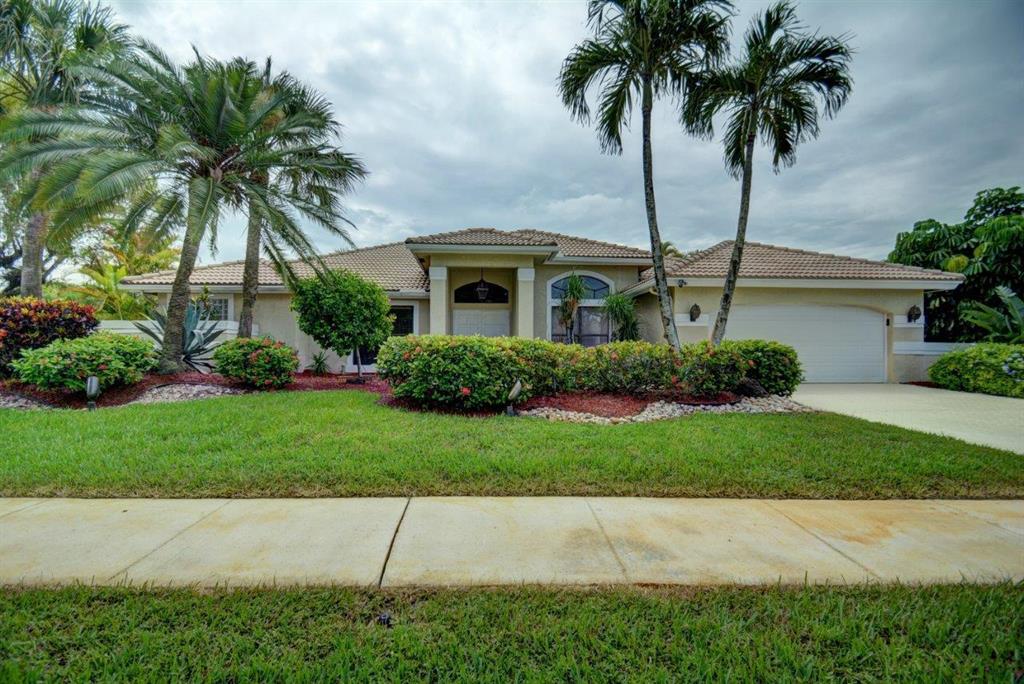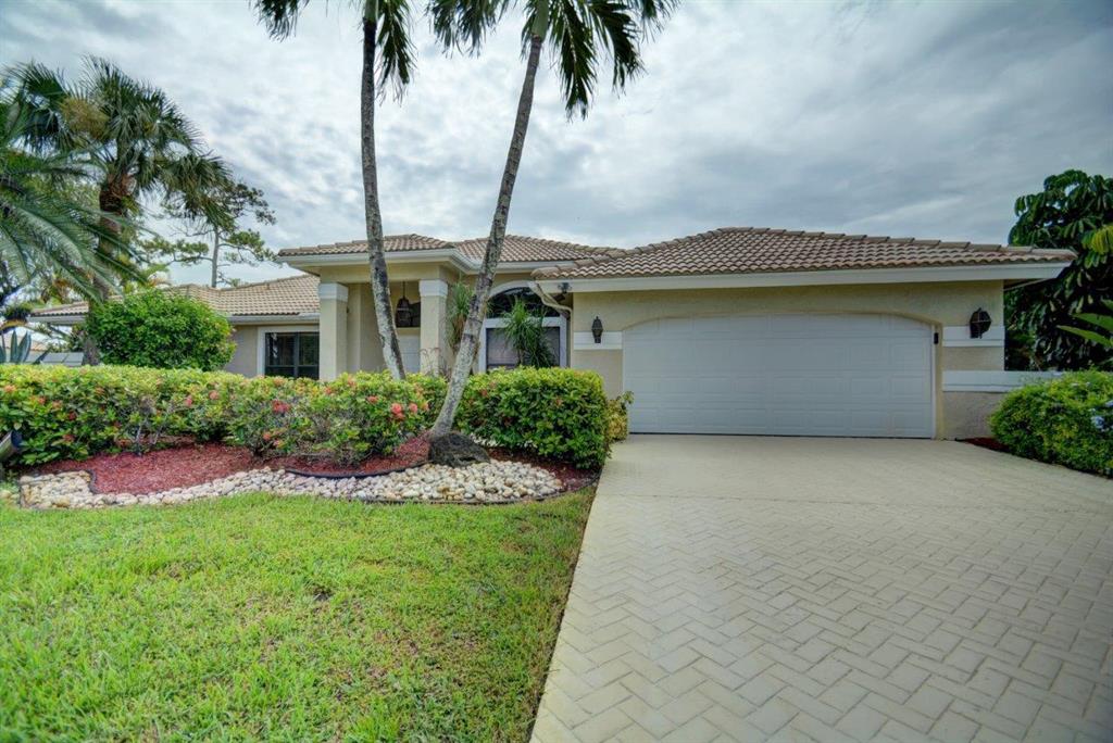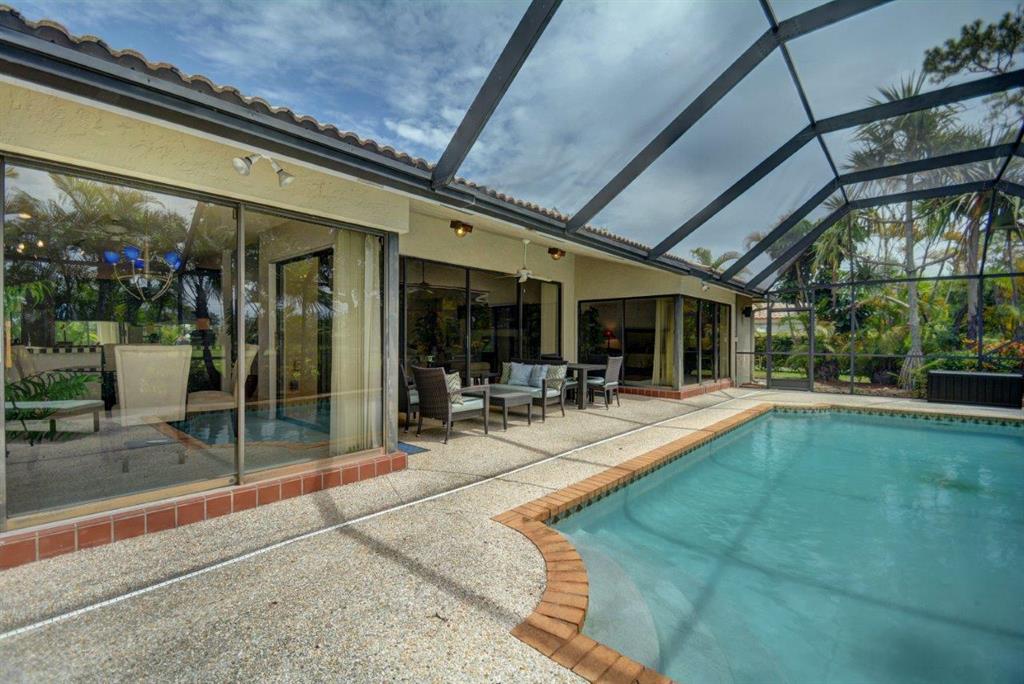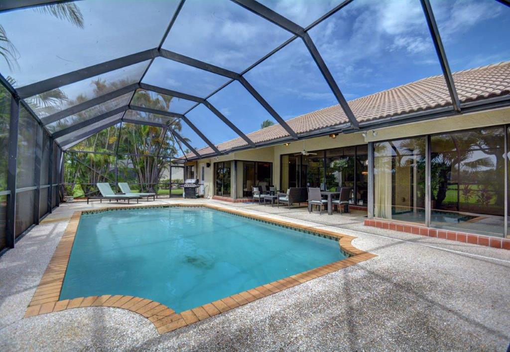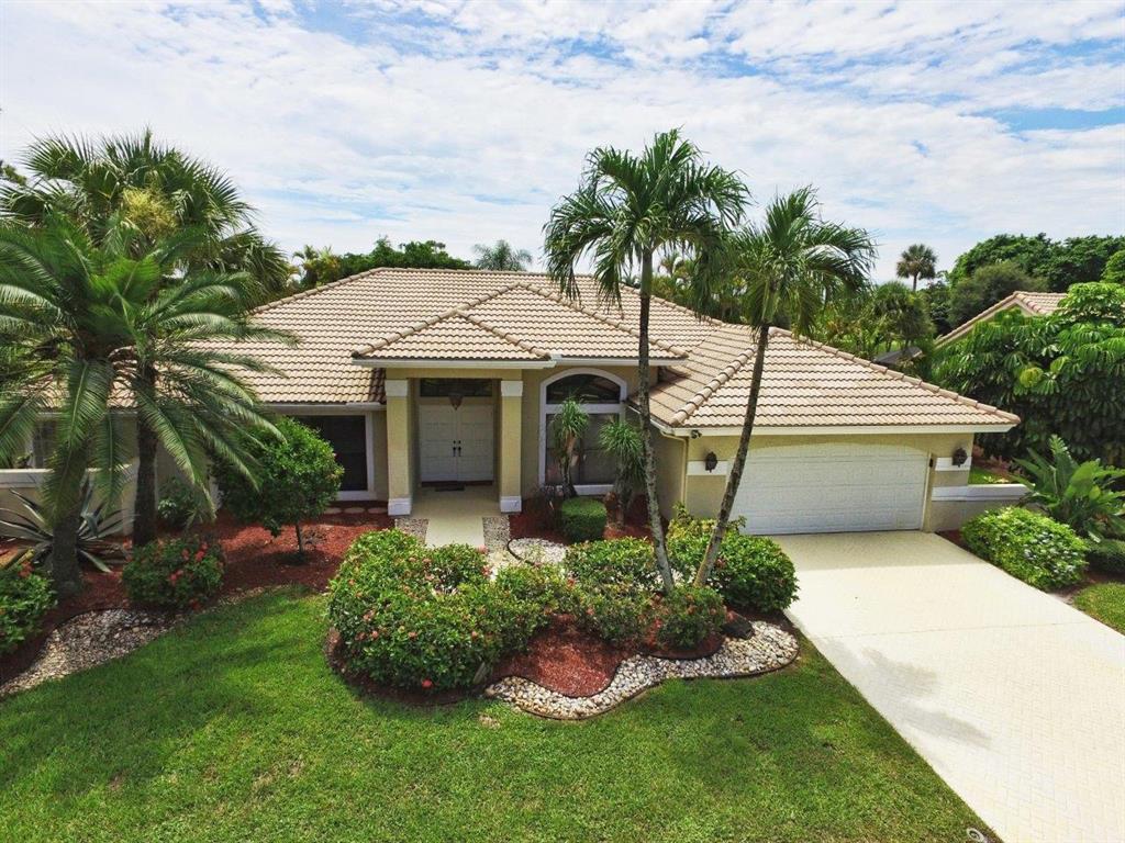 Treat yourself to this sunny single family pool house in Boca Woods Country Club. Two bedrooms, two and half baths, convertible 3rd bedroom/den, eat-in kitchen and formal dining room. Split bedroom floor plan, 2 car garage. Enjoy soaring ceilings, sliding doors that open to a covered patio that invites casual dining, entertaining and easy living. Screened in-ground pool with lake and fairway views. Boca Woods Country Club is a dog-friendly all-age community. Elementary school, middle school, high school are all A rated. 24 hour manned gated and security patrol. Mandatory Club Membership total $65,000 must be purchased in advance - $30K equity fully refundable when you sell, $35K Initiation Fee is non-refundable. Additional annual dues are $15,309 + tax. Clubhouse renovation approved.
