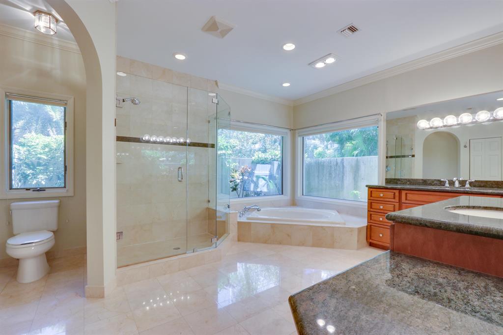 LOCATION LOCATION LOCATION! Beautiful pool home situated on .86 of an acres IN THE PRESTIGIOUS ''ESTATES'' section of Boca Bath. Surrounded by stunning 5000+ sq ft homes built after 2000. Very private beautiful yard, this spacious 3 car garage home is ready to move in, renovate or build to your desire. 5 large en-suite bedrooms. Spacious eat-in kitchen features wood cabinets and granite counters. Light and open floor plan has volume ceilings. Split bedrooms. Terrific study/den perfect for home office. The guest/children's wing with bonus computer/study area. Features include; marble floors, coral fireplace, sky lights, built-in/walk in closets. Hurricane ready with electric hurricane shutters. Superior location on one of the most sought after streets in BB&T very near world class shopping.