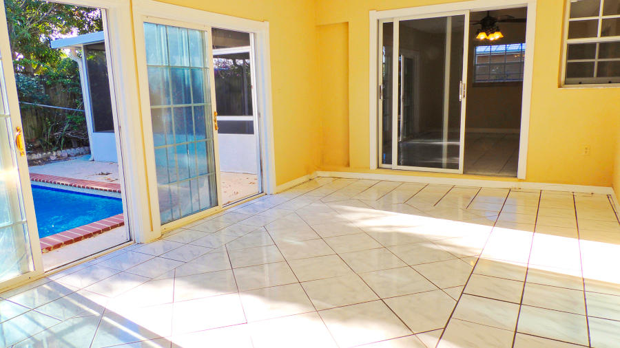 LOCATION! LOCATION! This is a must see 3 bedroom 2 bath 1 car garage single family home that is move-in ready. Located in desirable neighborhood within minutes of I-95, Palm Beach Outlets and lots of great restaurants. This gorgeous home features double entry doors, a spacious living room, master bedroom suite with a jacuzzi tub, tile floor throughout, hurricane shutters, remodeled kitchen cabinets, huge closed in patio perfect for entertaining, beautiful French doors, a large entertainment room and your very own private pool in a secluded backyard. This is a steal - make an offer today!