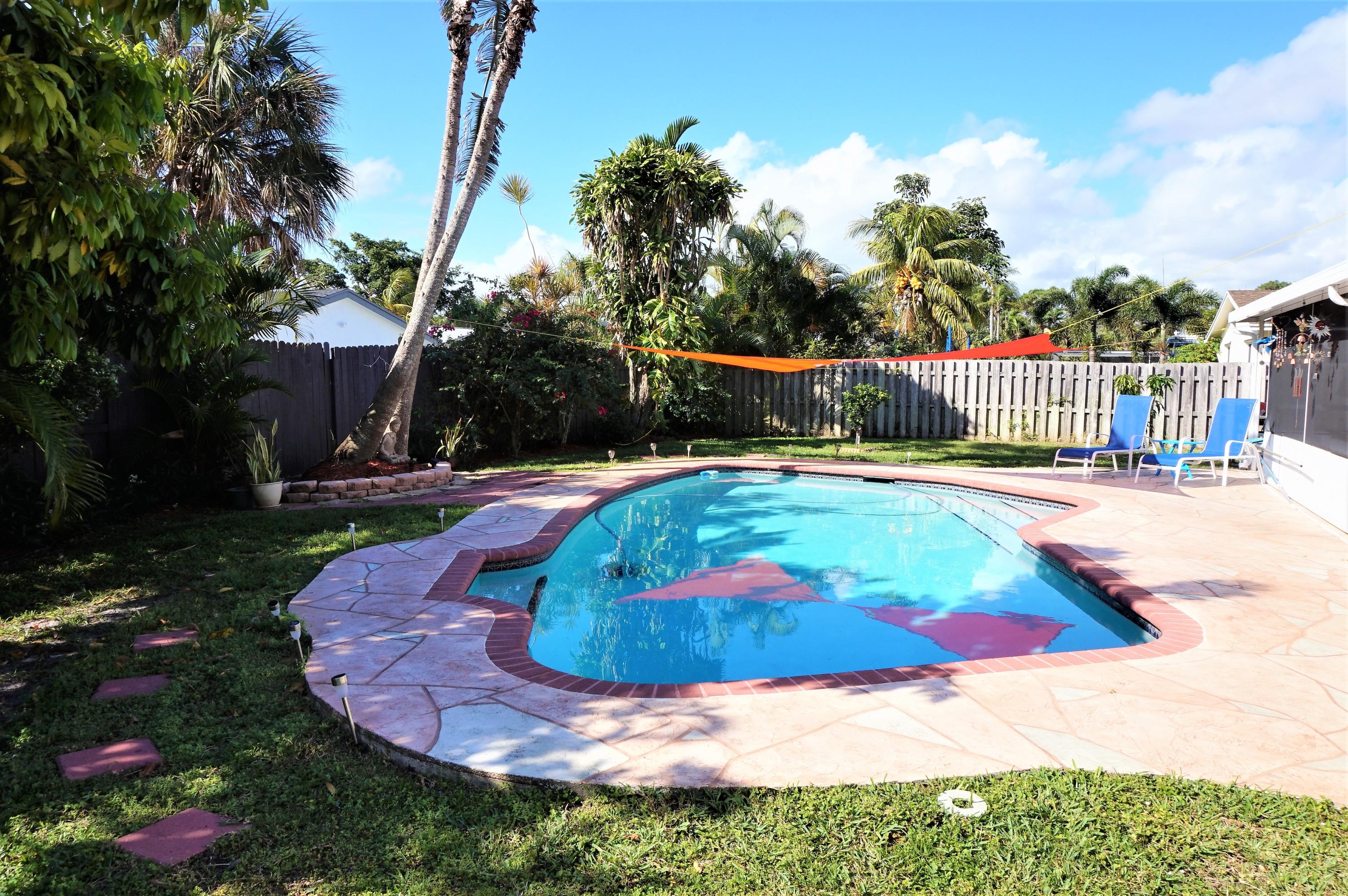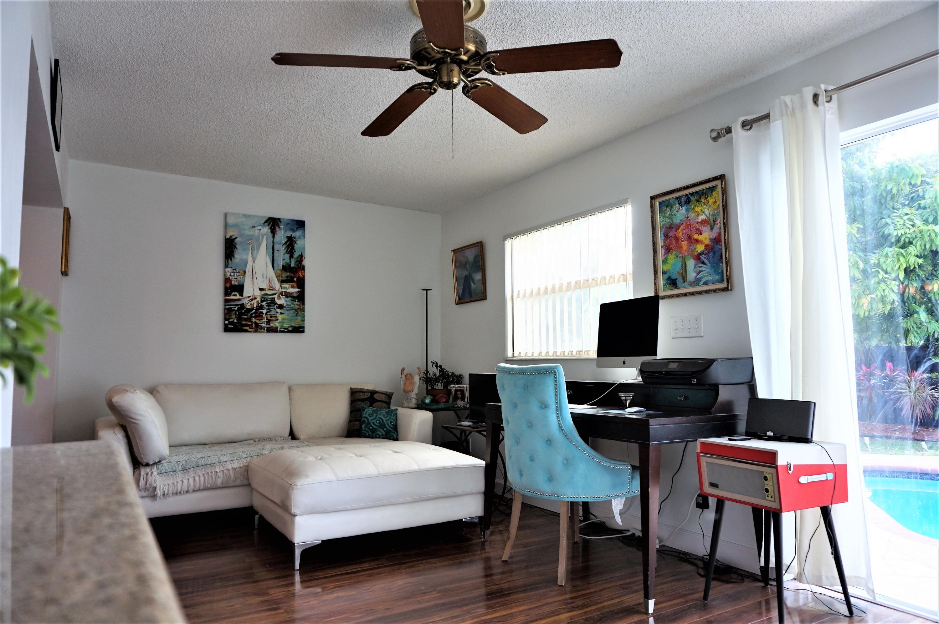 Prime East Boca Raton CBS pool home with split floor plan, vaulted ceilings and laminate floors. Family room with built in shelves. Kitchen with newer cabinets, granite counters, tile back splash and stainless steel appliances. Dining room off kitchen and living area currently used as office. Master suite with walk in closet. Over sized two car garage with washer and dryer hook up. Other features include outdoor shower, fenced yard, hurricane front door and tile floors under laminate. All measurements approximate.