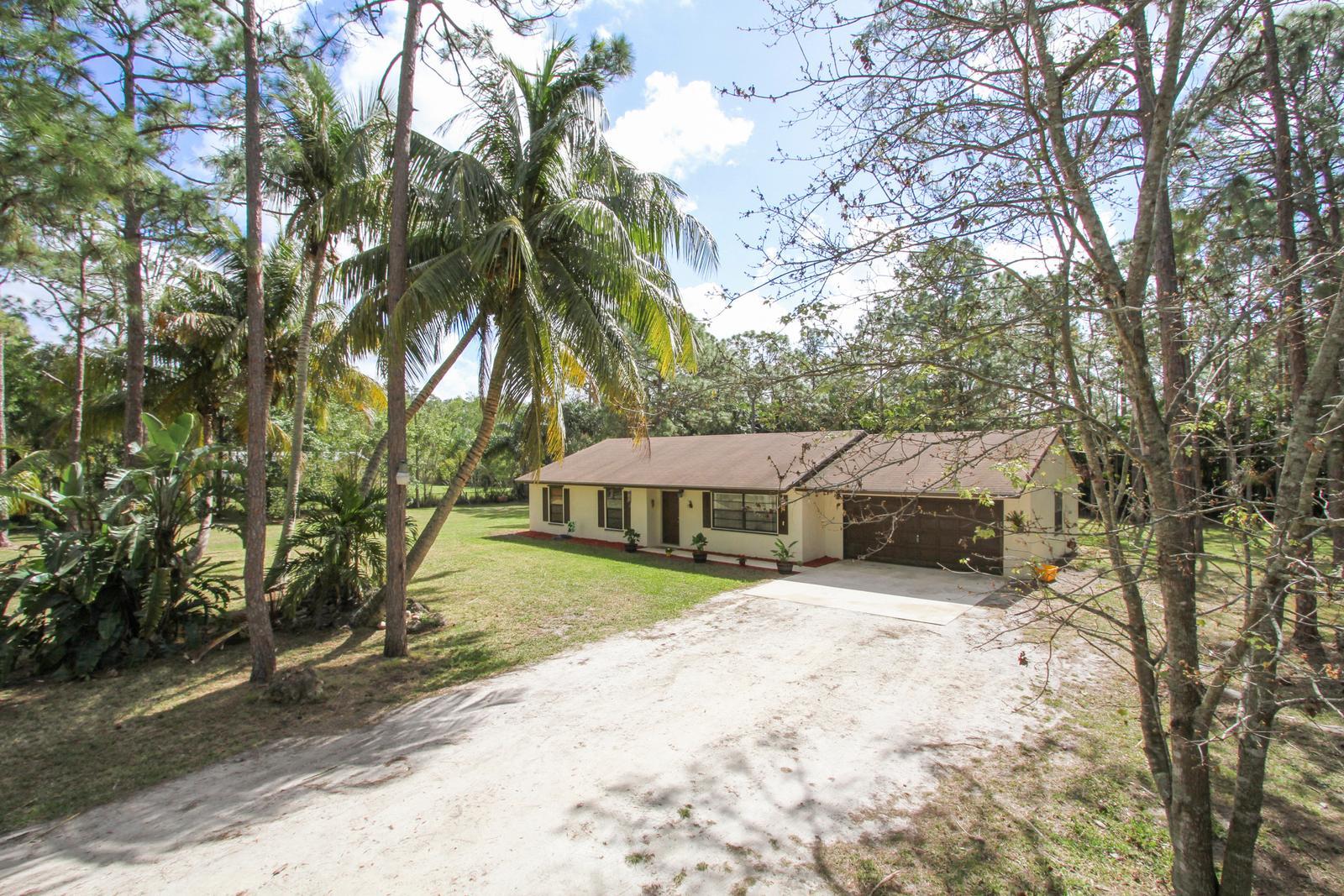 What a great property! De-stress from the hectic city life to serene country living. You will love this ranch style home set in the heart of The Acreage. Lush large lot with beautiful pine and palm trees . 1.15 acre lot is fenced and private. A great floor plan with 3 bedrooms, 2 baths, 2 car garage home plus shed with new water softener and stainless steel appliances. Features an enormous 42x14 roofed, screened patio and backyard fire pit. High demand Acreage area. Within walking distance to Acreage Pines Elem. school, area is one of the most unique and treasured areas in Palm Beach County. Excellent schools, no restrictions, mall & major shopping only a few miles away.