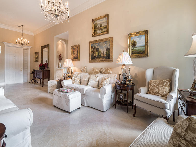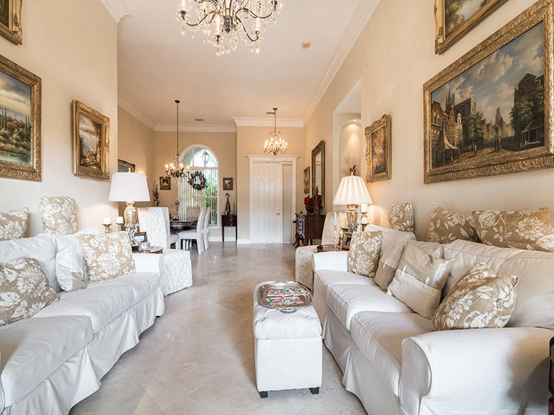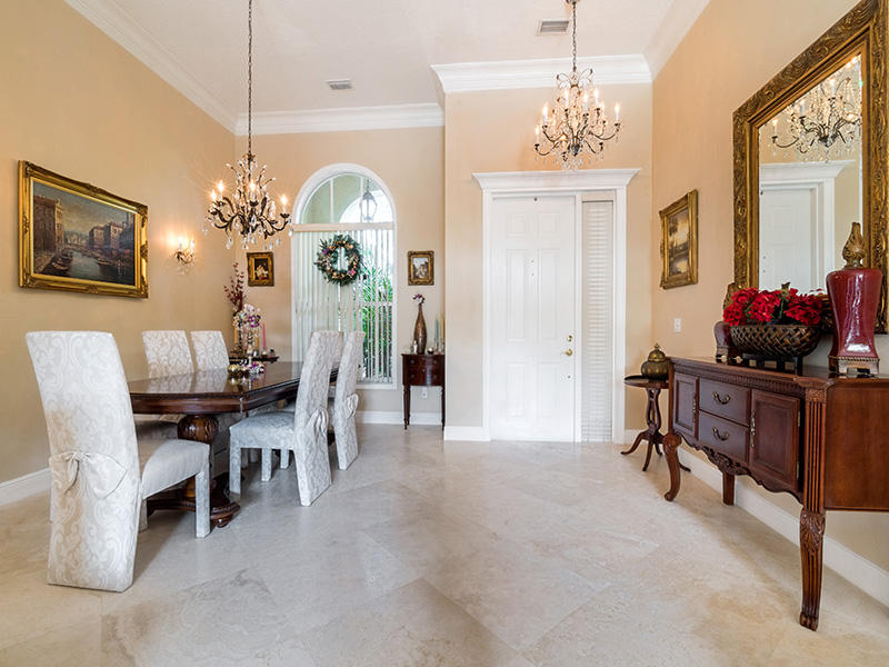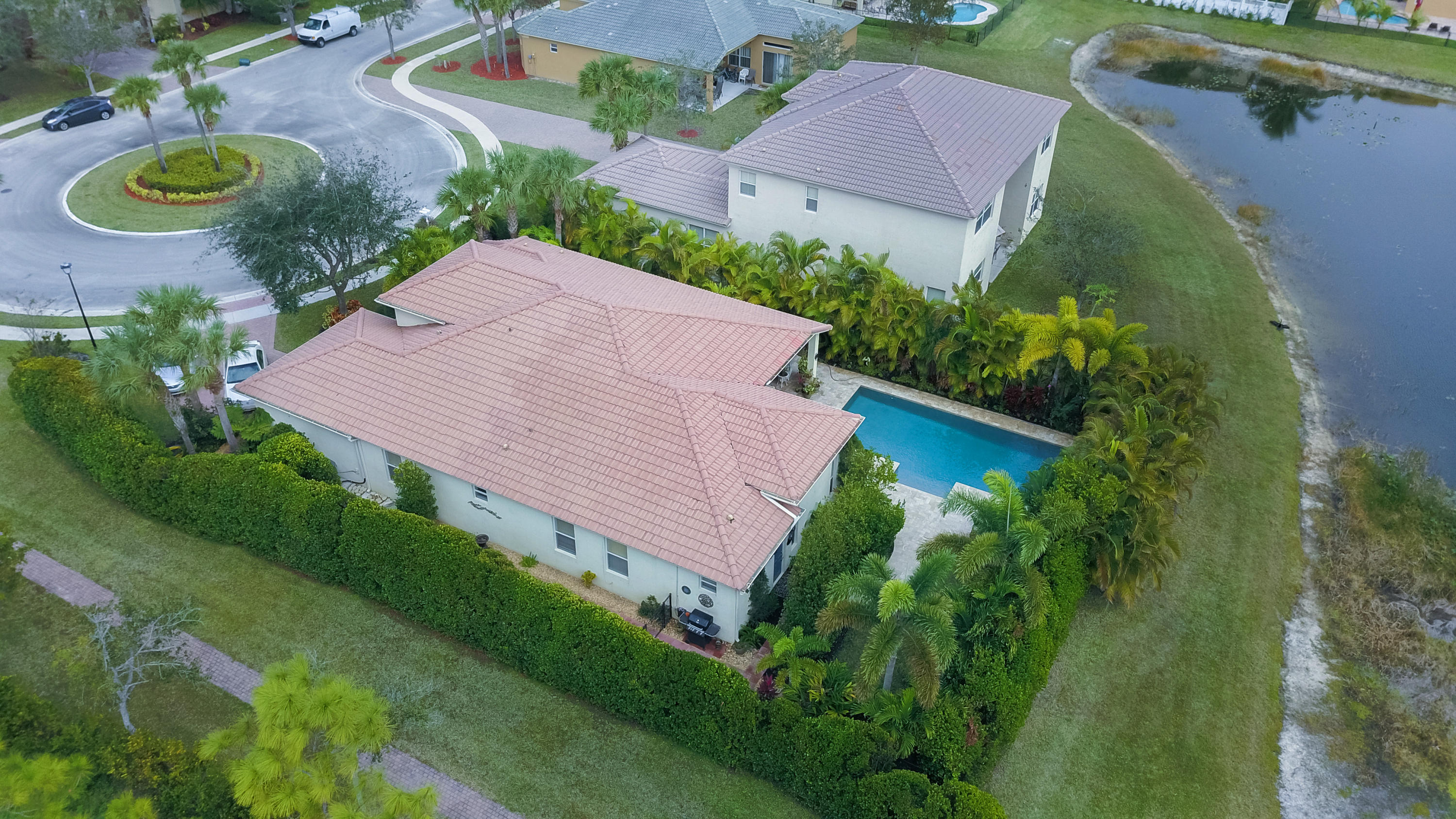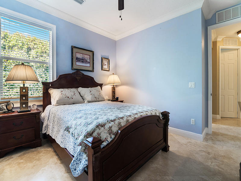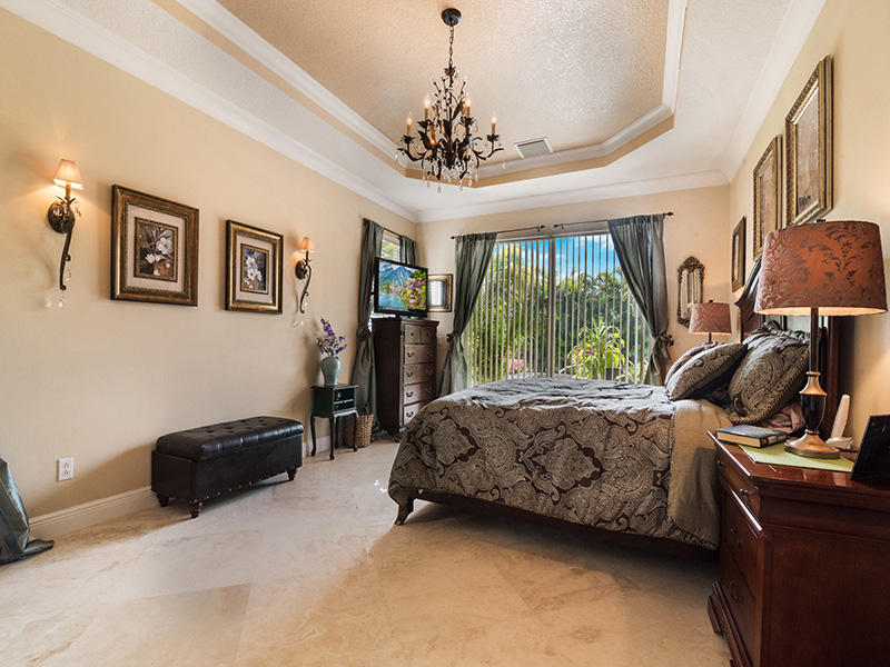 Gorgeous pool home in Palisades! An exclusive, gated community in central, West Palm Beach location! This home is situated on the most desirable end lot on a cul de sac with a lake view. Only one neighbor! Come inside and be wowed by soaring ceilings, spacious living areas, marble flooring throughout and 5.25 inch baseboards. The bedrooms are spacious as well and the master suite is complete with a luxurious master bathroom which offers a relaxing spa tub and separate shower enclosure. This home offers a 3-way bedroom split floor plan! The inviting kitchen boasts granite counter tops, crown molding and stainless steel appliances. Step outside and into a gorgeous patio where you can enjoy a heated, saltwater, 6ft deep pool with 4-way ARC fountains. The low HOA in this beautiful community