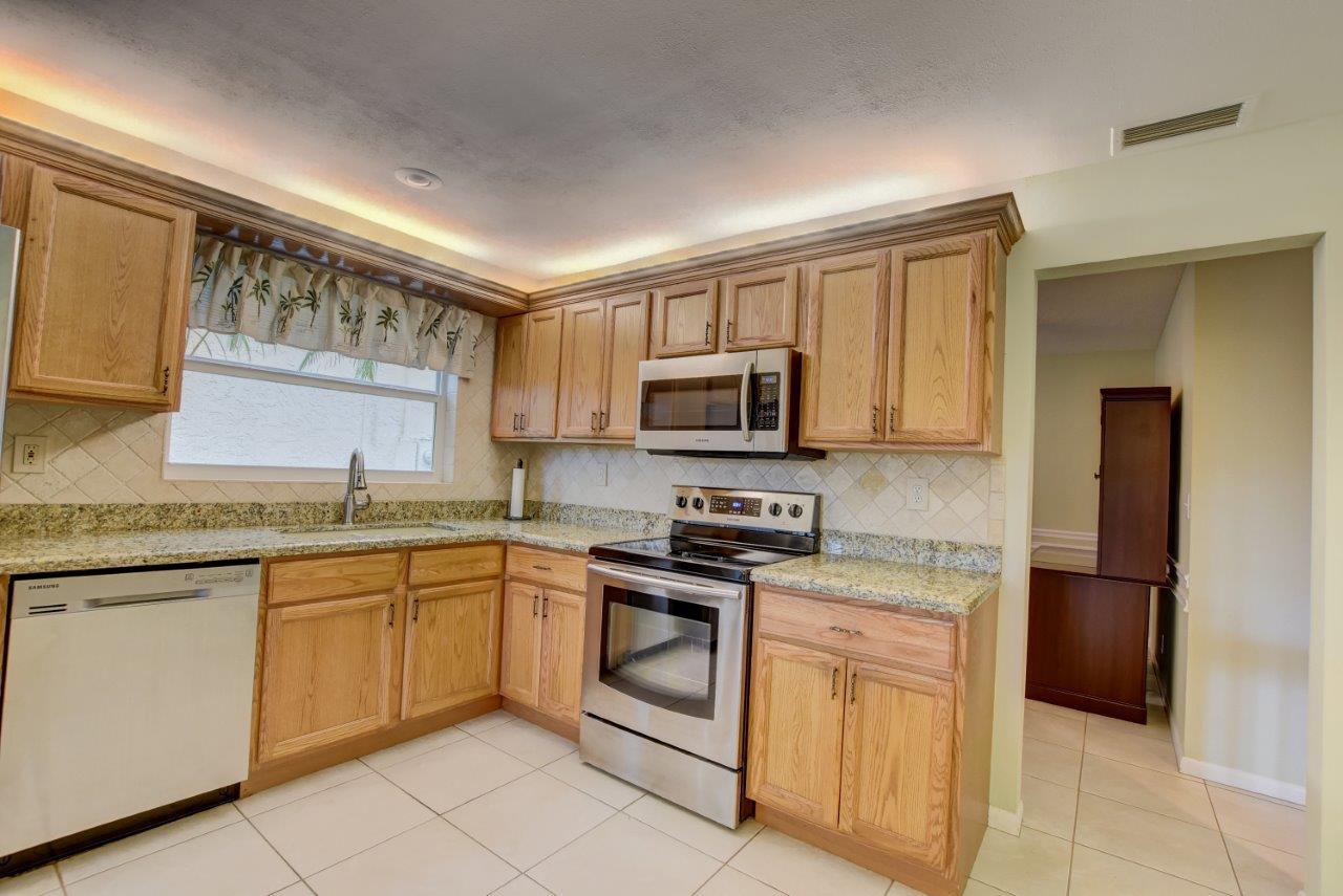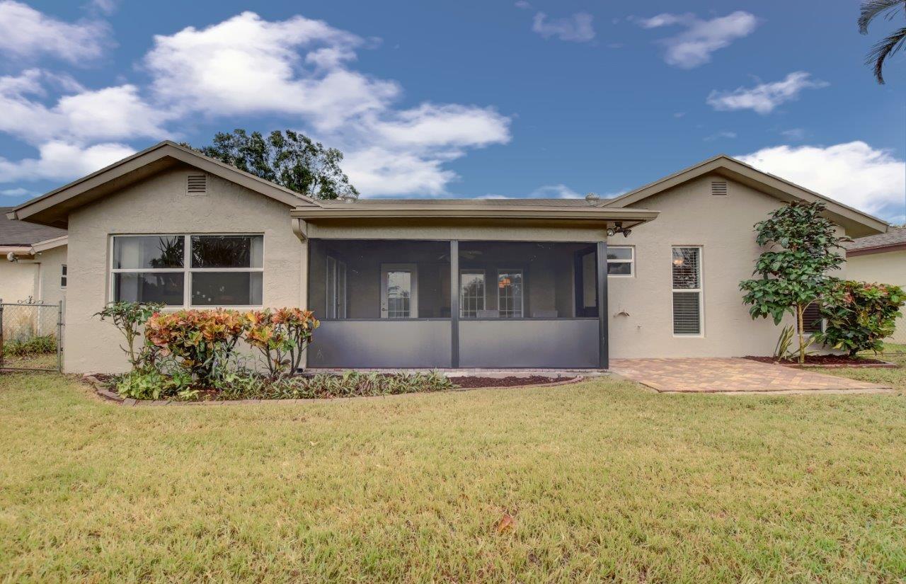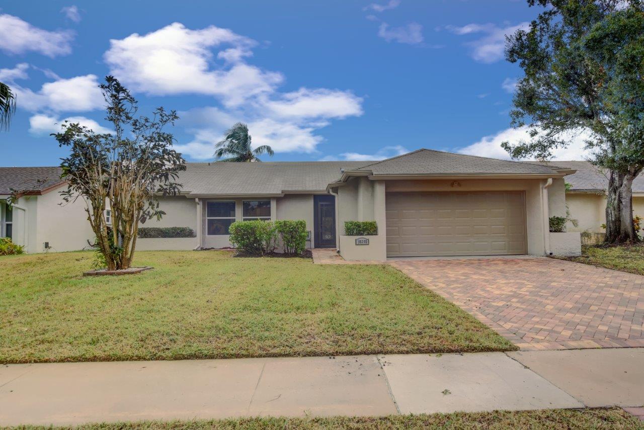 Don't miss this beautiful 3 bedroom, 2 bath, plus Den/office home located on a canal view lot. Upgrades include, remodeled kitchen & bathrooms with granite counters, laminate flooring in family room, hurricane impact windows & doors, crown moulding in master bedroom, chair-rails in dining room & den, brick pavers on driveway, walkway & covered back patio. Backyard is completely fenced with privacy hedges. Newer water heater, AC replaced 2013, Samsung kit appliances 2015 & newer Maytag washer/dryer. The exterior painting was just completed September 2017. Community offers a clubhouse with a pool, library, pool table, kitchen, BBQ pit, tennis courts and fishing ponds. 55+ community located in a very desirable area of West Boca & allows up to 2 dogs. Pet restrictions apply for certain breeds.