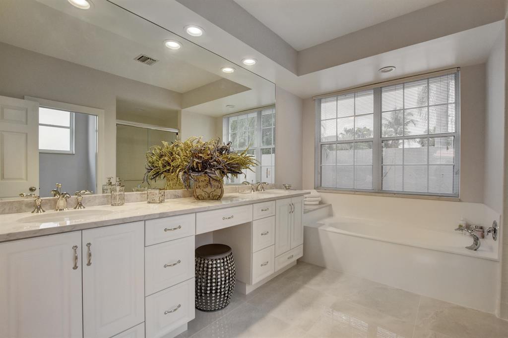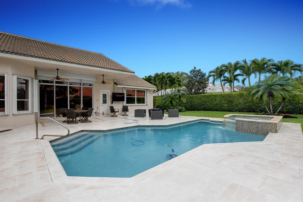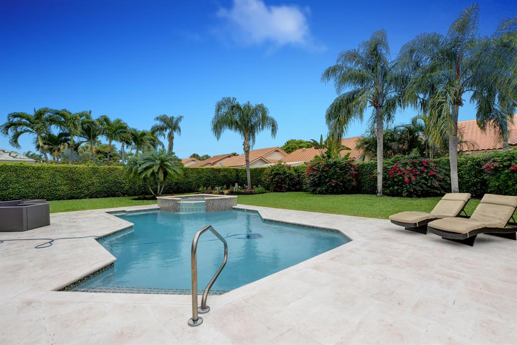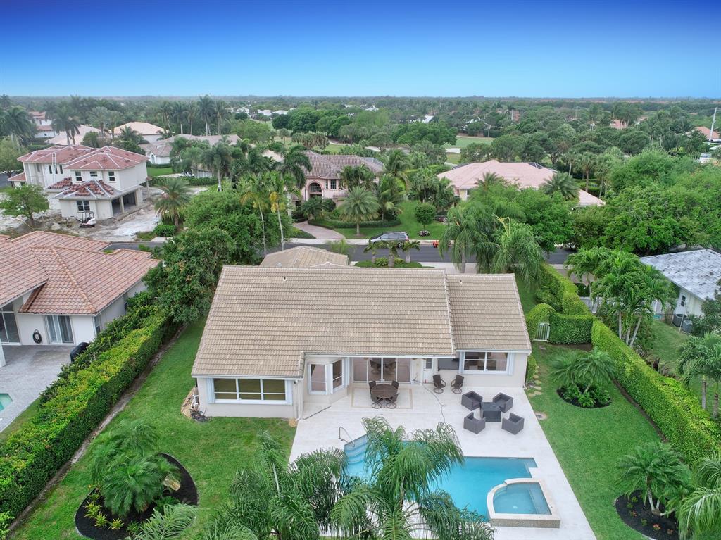 Beautifully renovated home in prestigious Bear Lakes Estates! Private location with oversized pool and spa situated on lush, tropically landscaped lot (over .36 acre). The roof was replaced in 2017 as well as both AC units and all other mechanicals.Perfectly maintained home features 3 bedrooms + den/office, 3 baths, 2 car garage with large circular driveway. Tons of natural light embrace you as you enter - interior completely remodeled with all new 24'' porcelain tile floors, custom crown molding, all new fans & fixtures, and freshly painted throughout.Fully equipped gourmet kitchen with GE Profile stainless steel appliances, double oven & cooktop, soft close shaker style cabinets, granite countertops and backsplash. Generous master suite features 2 walk-in closets overlooking
