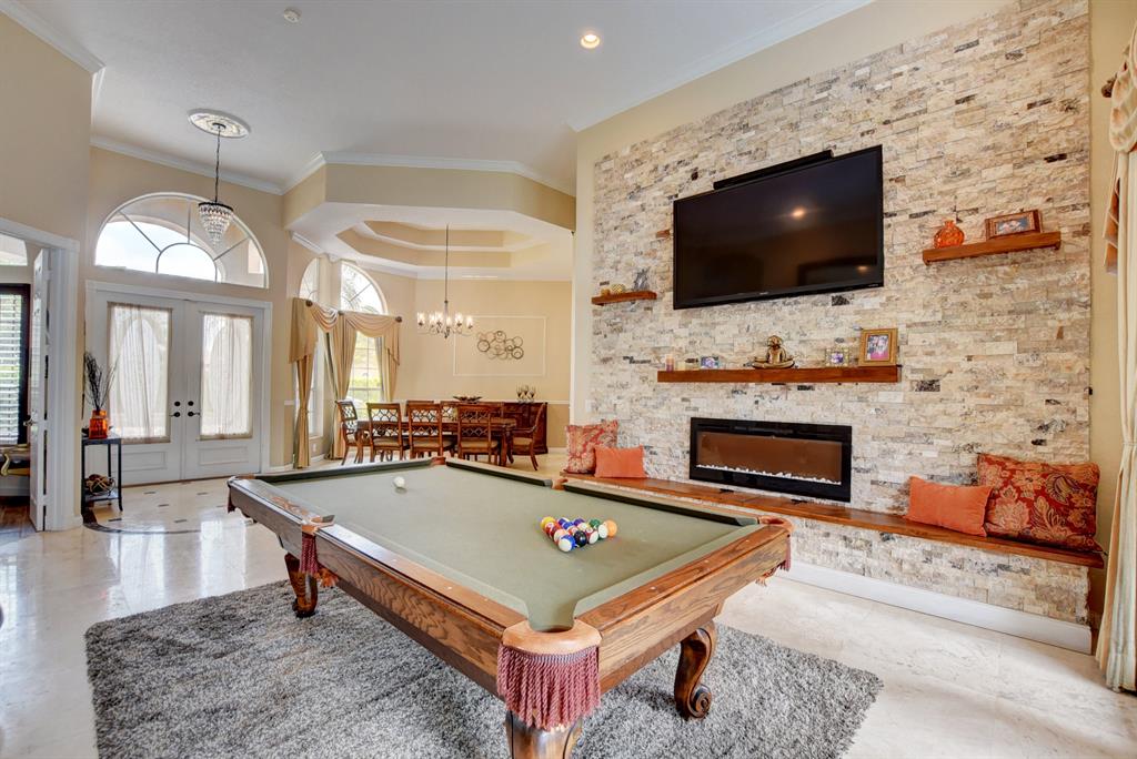 Magnificent light and bright southern exposure one story with over sized lakefront lot. 5 full bedrooms plus office/6th bedroom. Gourmet chefs kitchen with new appliances. New AC and water heaters, central vac. Marble floors, electric fireplace, tropical pool with new diamond Bright and tiles, and privacy from every angle.