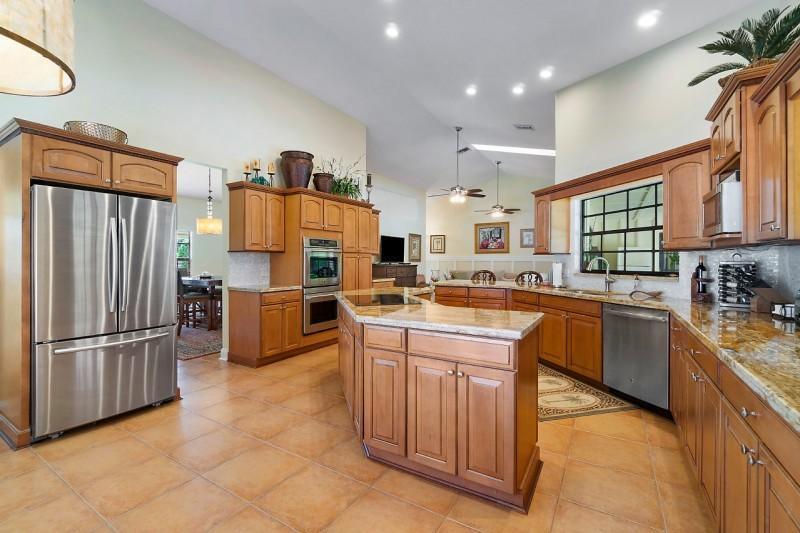Beautiful 4 bedroom, 2 bath split plan home on 1.25 acres in the quiet gated community of Whippoorwill Lakes. This wonderful community has a very low HOA fee and is the perfect location for those looking for privacy and the joy of nature while still being only minutes from shopping, the Florida Turnpike, Palm Beach International Airport and equestrian activities. Youll love entertaining in the updated, open & spacious kitchen with its vaulted ceilings, gorgeous granite countertops and stainless steel appliances. After dinner, relax on the large screened in patio and take in the lovely waterfront and sunset views. Dont forget to hop in the pool! This property has one of the nicest lots in the neighborhood. A must see!!