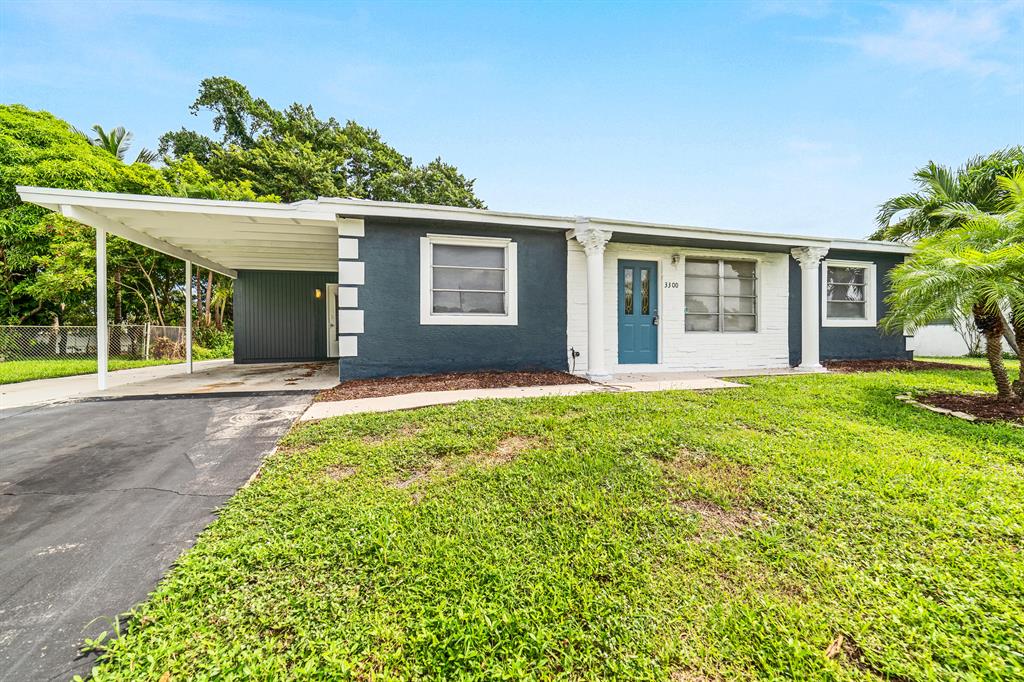 Updated canal front 3 bedroom, 2 bath home centrally located in West Palm Beach. NEW A/C and hot water heater. Kitchen features a new electric range and microwave. New carpet in bedrooms and tile flooring throughout living areas. Freshly painted interior and exterior.Spacious front and back yard. One car carport for covered parking. Great rental potential.
