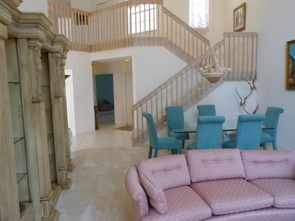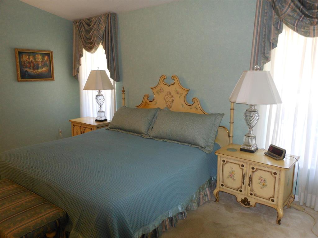 This spacious 3-bedroom 2.5-bathroom home is waiting for you. The master bedroom is on the first floor. There is an open kitchen with a breakfast area which overlooks the huge family room. The back end of the house was extended so that gives you lots of extra space and an even larger living room. The patio is screened in. There are high vaulted ceilings with knock-down textures. The master bedroom has two walk-in closets. The master bathroom has a separate tub and shower and two vanities with a separate make-up vanity as well. Because the window in the bathroom has block glass it is bright and sunny all the time. The laundry room is separate on the main floor. Upstairs there is a sitting area (or library area for relaxing if you choose) plus two bedrooms and a Jack and Jill bathroom.