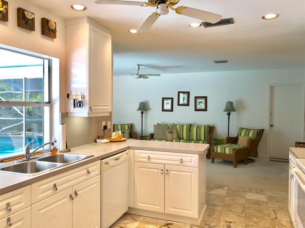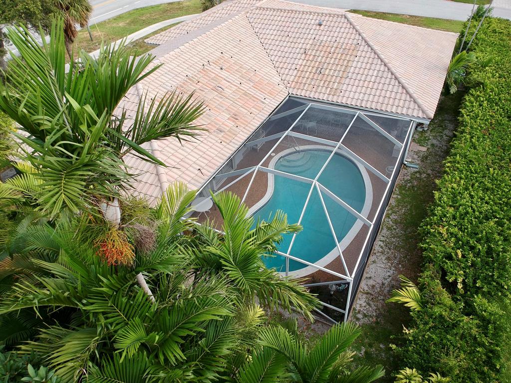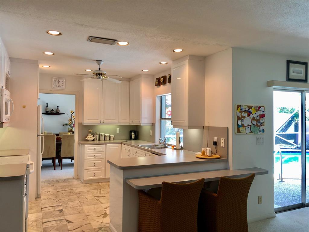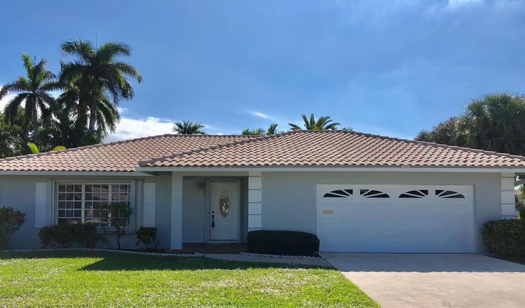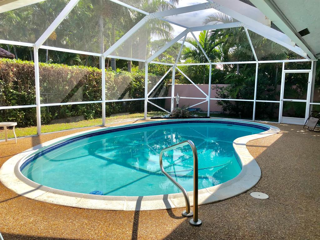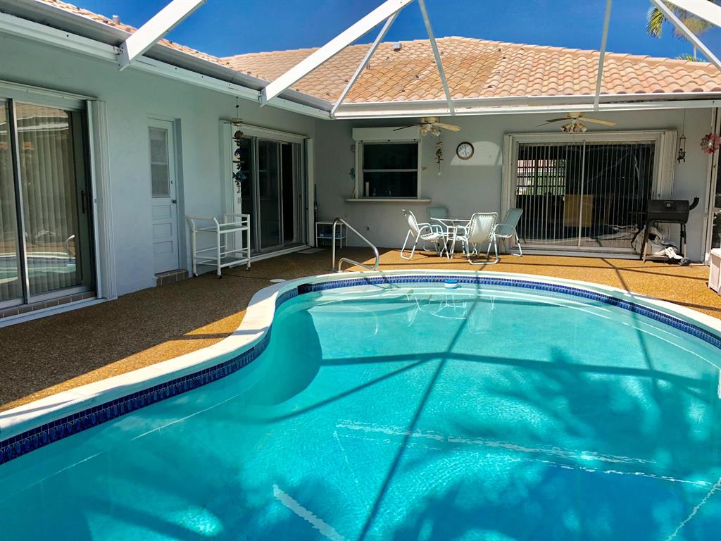 Very well maintained 3/3 pool home in highly sought after Golden Harbour neighborhood. Very private pool & yard that backs to a large Estate. Large corner lot, 2 car garage, large interior laundry/storage room. White modern kitchen, full accordion shutters. Spacious bedrooms and 3 full baths. Lowest price in Golden Harbour. Furniture negotiable