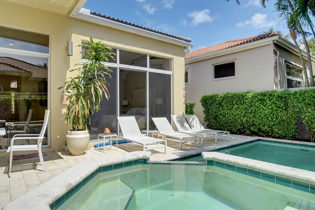 This contemporary one story remodeled home is nestled on a private interior lot boasting three bedrooms & three full baths. The home features volume ceilings with all updated LED high hats which adds extra light to an abundance of natural sunlight. The new kitchen features white lacquer cabinets with quartz tops and new stainless steel appliances. The new roof was installed in 2018. The updated marble master bathroom and the custom closet design are beautiful additions to the master suite. The Home has a central vacuum system, newer washer and dryer and the A/C units are 2011 & 2012. The private south facing open patio has a heated pool and spa. This home may be purchased completely furnished if you choose to move in and are ready to start enjoying the Woodfield Country Club lifestyle.