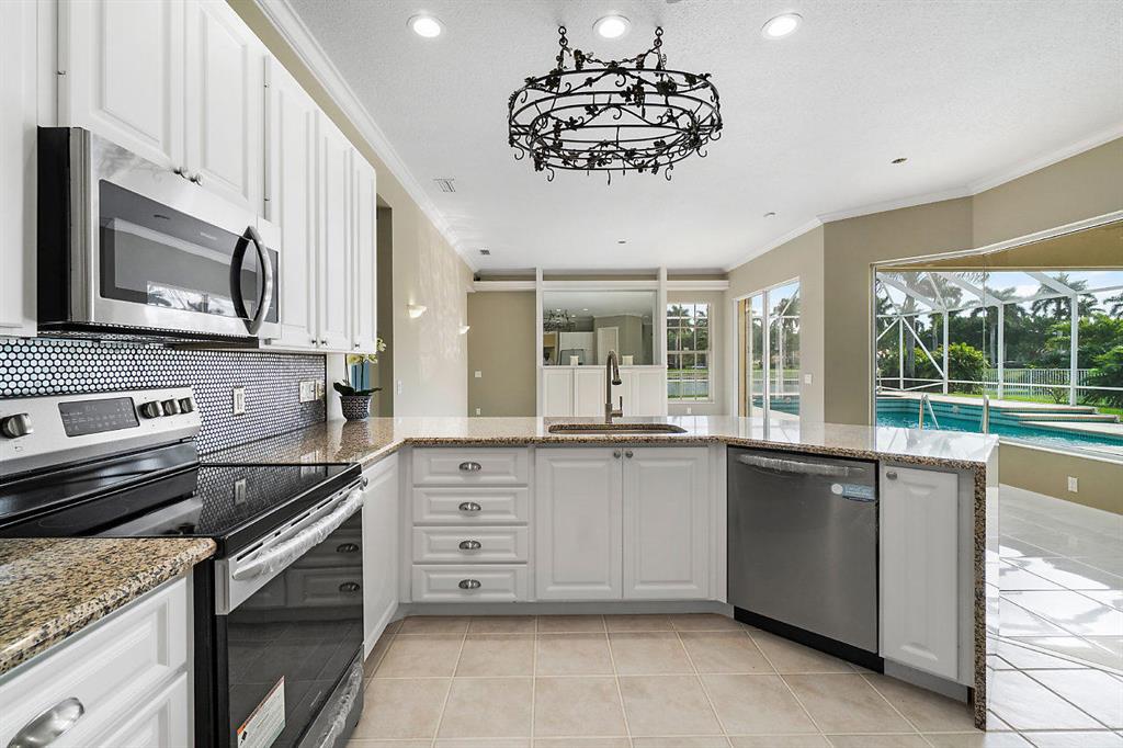 The Windsor Model by Divosta is a rarely available and sought after home in Riverwalk. Located on a cul-de-sac with unobstructed view of the water in the back this beautiful home was completely undated in 2019. New Stainless steal appliances, New granite counter in the kitchen and all bathrooms, freshly painted, new carpet in bedrooms, crown molding throughout, screened propane heated pool and spa with all new equipment and smart controller. Whole house generator with 2X250 gallon in ground propane tanks, accordion shutters, 2 ensuites, alar with 2 cameras, AC new in 2016, this house has everything and more!! Master closet is 12X12 all with cabinets. This is resort living at it's finest with post office, 3 pools, tennis, gym, playground, bocce ball all kinds of good stuff!!