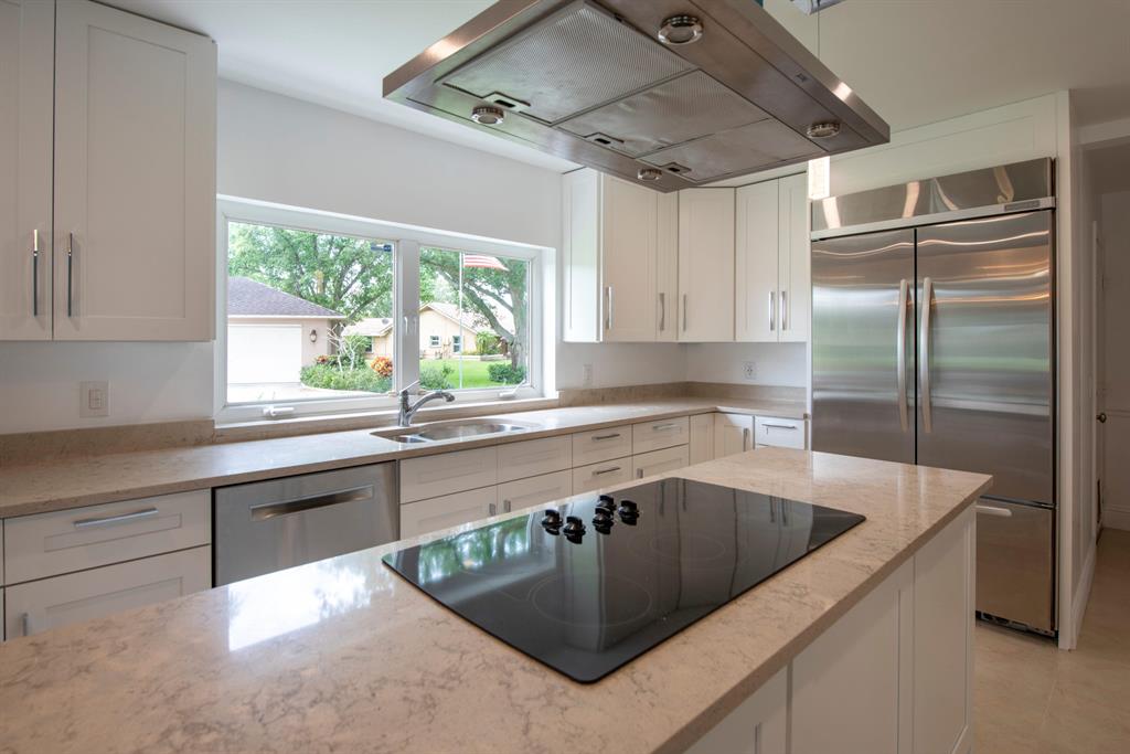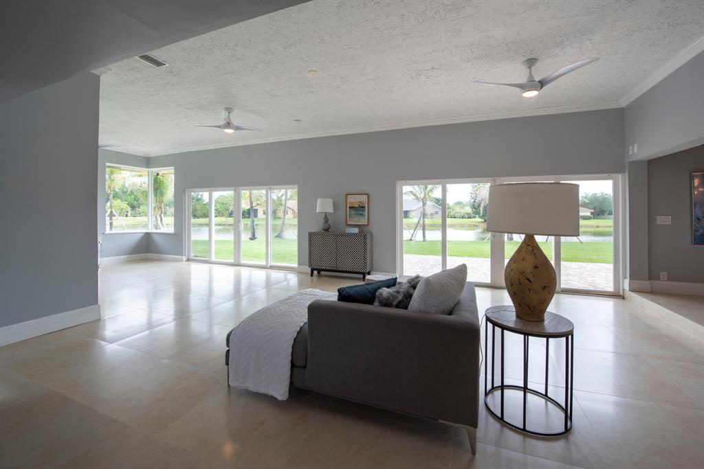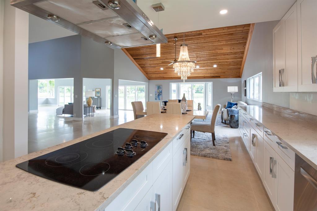 This Beautiful Home is Back on the market since the original contract fell through. One of a kind modern two story newly renovated home with tropical landscape on the water is located on a private cul de sac in Whispering Pines on builders acre. Overlooking a canal & privately wooded park & horse trail. Next to walking/bike path, near Flamingo Gardens. The new kitchen is a chef's dream with new high end appliances including 42'' refrigerator, cook top/vent on the island, and double oven. The new master bathroom is modern and luxurious. The indoor open living area with high cedar cathedral ceilings is wired for an indoor and outdoor sound system,. The office/in-law suite/baby/nanny room has full bathroom. great neighborhood and neighbors. New Roof, Floors, Impact Windows, Kitchen/Baths.