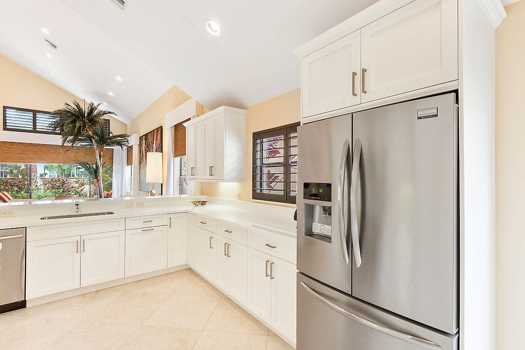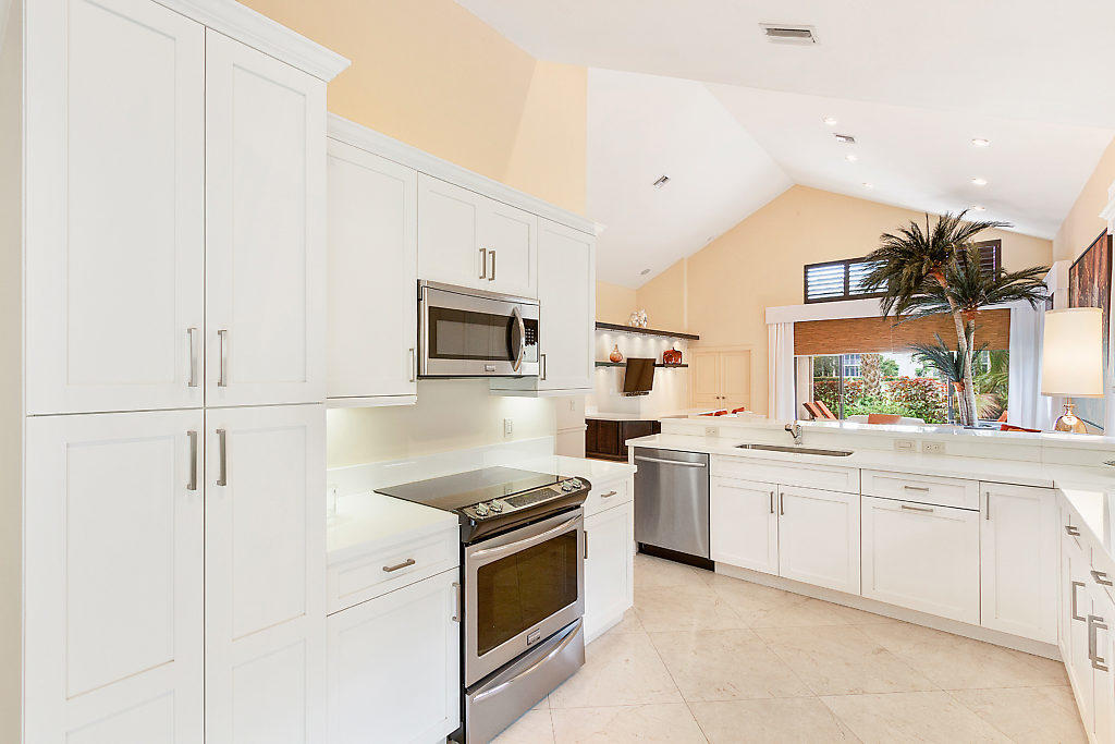 ESTATE SALE!Recently remodeled LIGHT,BRIGHT & AIRY 3 Bed 2.5 Bath designer showstopper. ROOF REPLACED IN 2014. From the marble floors to the vaulted ceilings this is the one! The HUGE open concept great room w/EAT IN KITCHEN features classic white Shaker style cabinets,white quartz counters w/Bfast bar & SS appliances.The dramatically elegant Living Room has a quartz topped bar and opens onto a covered lanai for relaxed outdoor entertaining w/yard &/room for a pool overlooking the golf course. SPLIT BEDROOM PLAN offers maximum privacy. Double door Master Suite also opens onto the lanai and has 2 gigantic closets. Plantation Shutters,drapes,2 car garage & central vac completes this exciting offering. There is no other listing at Polo Club that is remodeled in this prices range.