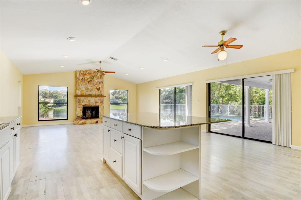 Spacious 4 bed 2.5 bath pool home featuring wood laminate flooring in the living areas, vaulted ceilings, an open updated kitchen with an island and pantry, a charming fireplace, an interior laundry room, an updated half bath, patio access from the master suite, dual sinks and a soaking tub in the master bath, dual sinks in the guest bath and an open pool and patio area overlooking the lake. Millpond features tennis, basketball, a playground, parks and walking trails and is close to A-rated schools, major roads, shopping and dining.