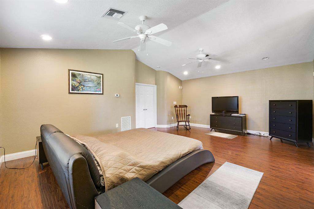 Shhh...It's our little secret! Quiet neighborhood with large lot. No HOA! Single story ranch with pond. 4 BR's plus library/den. Covered screened front porch, covered back patio and 25ft x 16ft deck overlooking private pond on .80 acres. Room for RV parking. Oversized 3 car garage plus tool room. Welcome the in-laws! Guest suite w/private bath & walk-in closet. Impact windows. Storm panels for triangular windows & exterior doors. Beautiful kitchen w/stainless steel appls., granite counters, pull out drawers, double wall ovens, warming drawer. Interior has been recently repainted. Smooth vaulted ceilings. Interior Laundry Room. Plantation shutters on most windows. Large jacuzzi in master. Decorative pavers on driveway, porch and patio. Sprinkler pulls from pond- Saves $$.