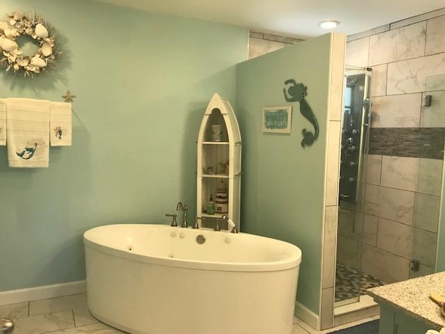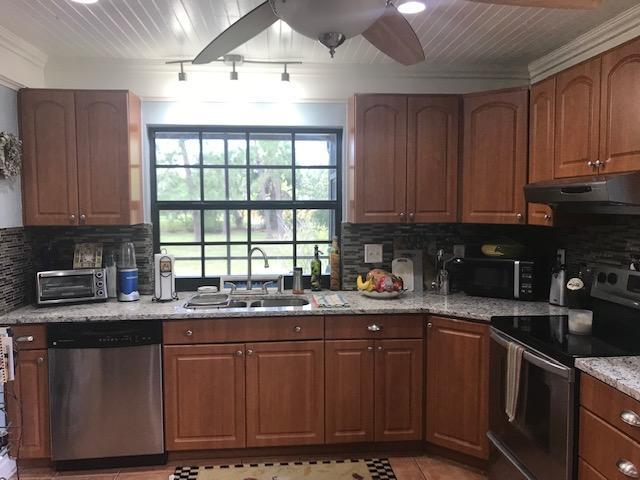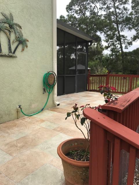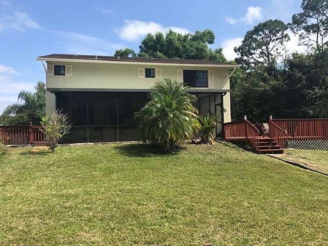 Bring the family and the toys to this spacious 2 story (3 /2 1/2) home in the acreage. No HOA. Impact windows and doors. Two separate decks and a screened in patio overlook a fenced in private backyard. Upstairs there is a huge master suite with a remodeled ''spa'' bathroom which includes 8 jet shower panel system and rainfall shower head, free standing whirlpool bath tub and dual vanity sinks. Tile flooring downstairs and laminate wood flooring upstairs. Long paved driveway provides plenty of space to park or kids to ride their bikes.