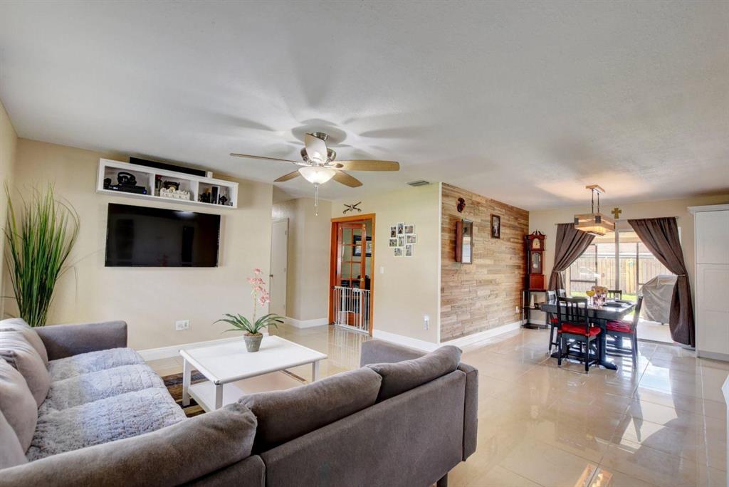 Welcome home to this amazing 4 bedroom, 2 bath property. Enter your living room and notice the beautiful tile floors and baseboards through out! Your open floor plan has room to roam for the family. Entertaining is a breeze in your spacious kitchen with stainless steel appliances, granite counters and pretty glass backsplash. Your dining room has a stunning accent wall and lovely lighting fixture. The living areas have knock down finish. Large master suite features crown molding and a frameless shower w/ inlay. Bright and cheery guest bedrooms with ceiling fans. Guest bath redone to perfection! Enjoy a cool drink on your oversized screened patio that faces south. Massive fully fenced back yard is perfect for the kids and pets. 1 CG w/ hurricane door. GREAT BOCA SHOOLS! Extra driveway