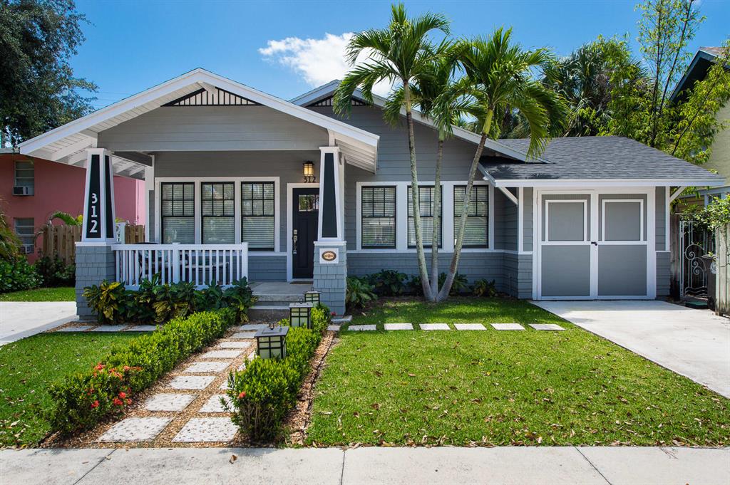 Renovated historic 2/2 Craftsman bungalow located in Mango Promenade, just one mile south of downtown WPB. New roof, new A/C, new appliances, freshly painted inside and out, new landscaping and irrigation, new lighting and fixtures throughout. This home has been redone to include a new covered front porch and new driveways with off-street parking for two cars. One block from the intracoastal.