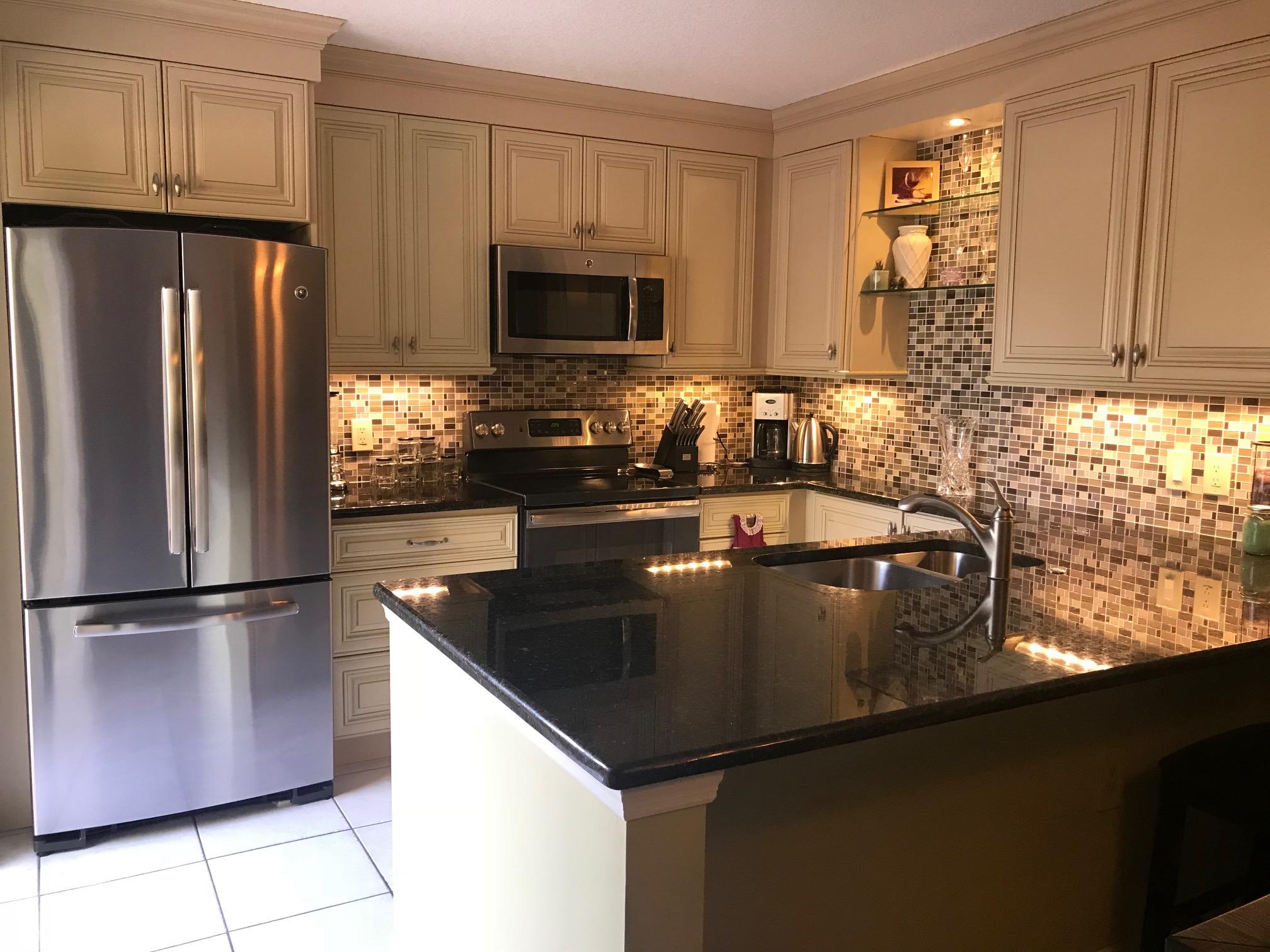 Amazing water views with a tranquil location! Close to everything WPB, this 2 bed, 2 1/2 bath townhouse checks all the boxes. Upgraded kitchen with wrap around cabinets, soft-close drawers, glass tile backsplash and stainless steel appliances. Upgraded lighting and master closet. Situated perfectly with an ideal southern waterfront exposure. Low HOA that includes cable, water, lawn, roof, and many amenities.Townhome comes with two assigned parking spaces.